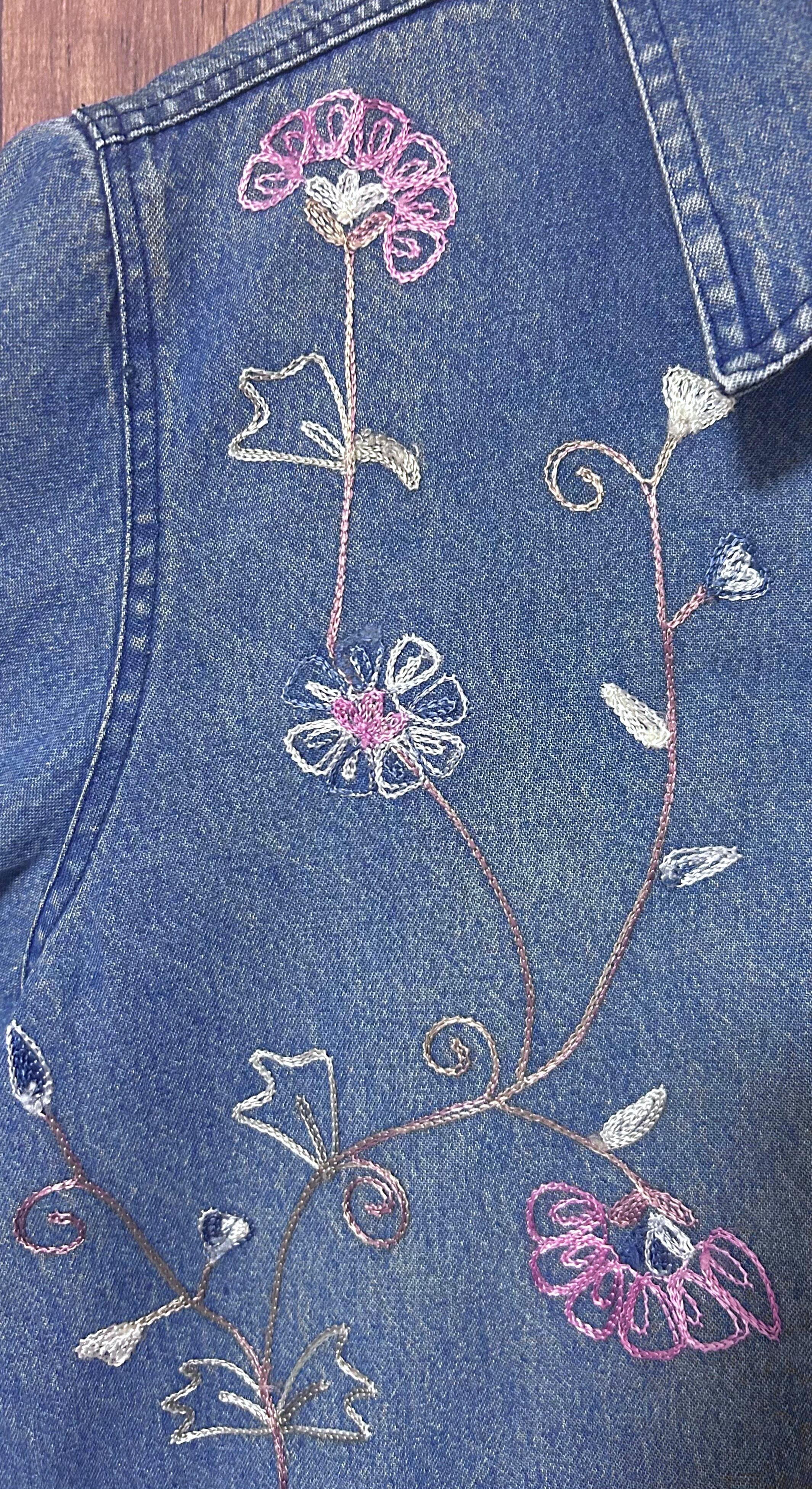 刺繍 デニム ジャケット 花 ピンク レトロ ガーリー カジュアル 個性的 おしゃれ かわいい USA ヴィンテージ used vintage 古着/club723 クラブ723(N633)