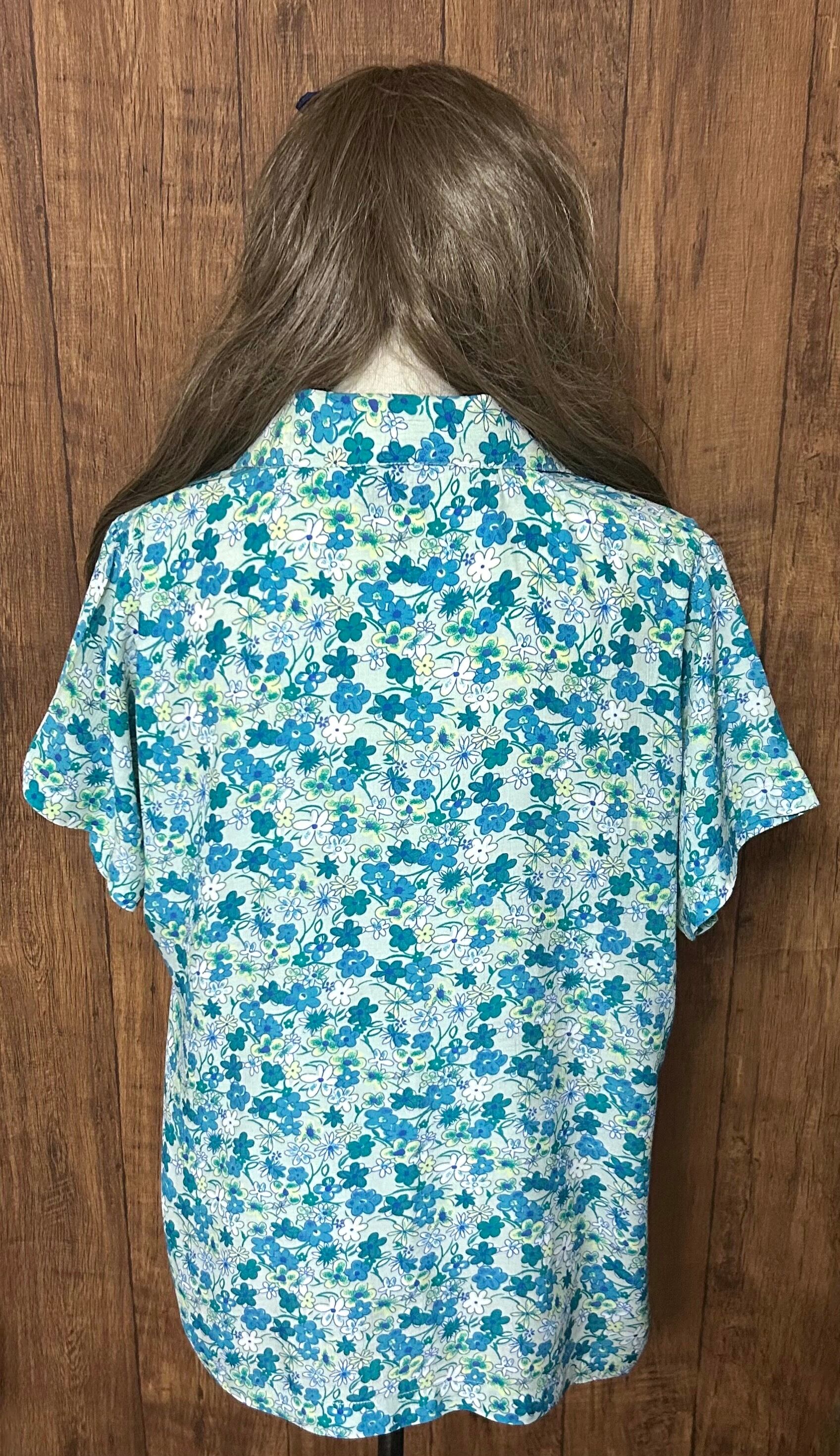 花柄 小花柄 シャツ 半袖 レーヨン グリーン 緑 白 黄色 レトロ カントリー おしゃれ 個性的 かわいい かっこいい USA ヴィンテージ used vintage 古着/club723 クラブ723(N669)