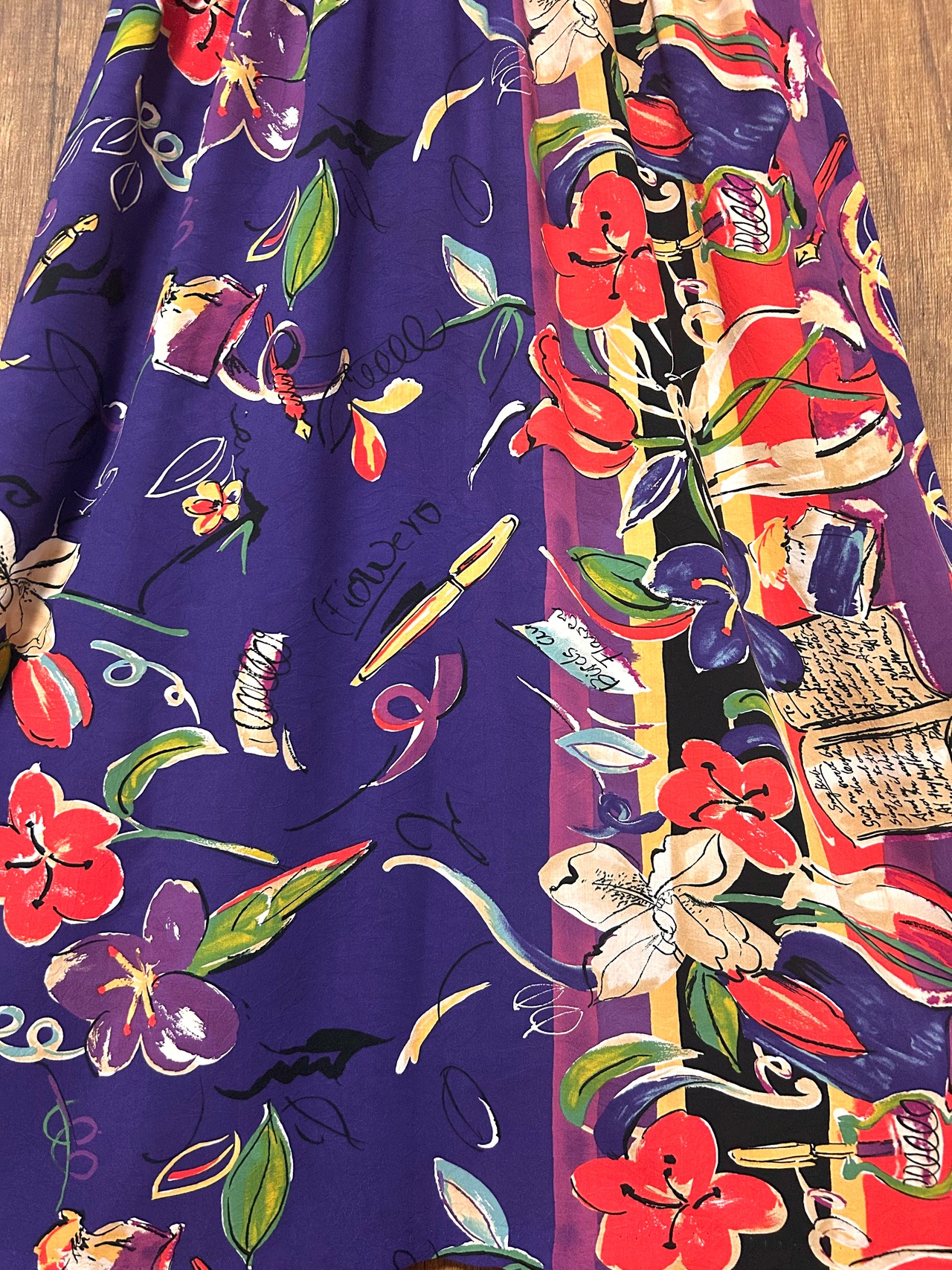 ロング ワンピース カラフル 柄 フレンチスリーブ ポケット エスニック ヴィンテージ レトロ 個性的 おしゃれ かわいい USA vintage used 古着/club723 クラブ723(N670)