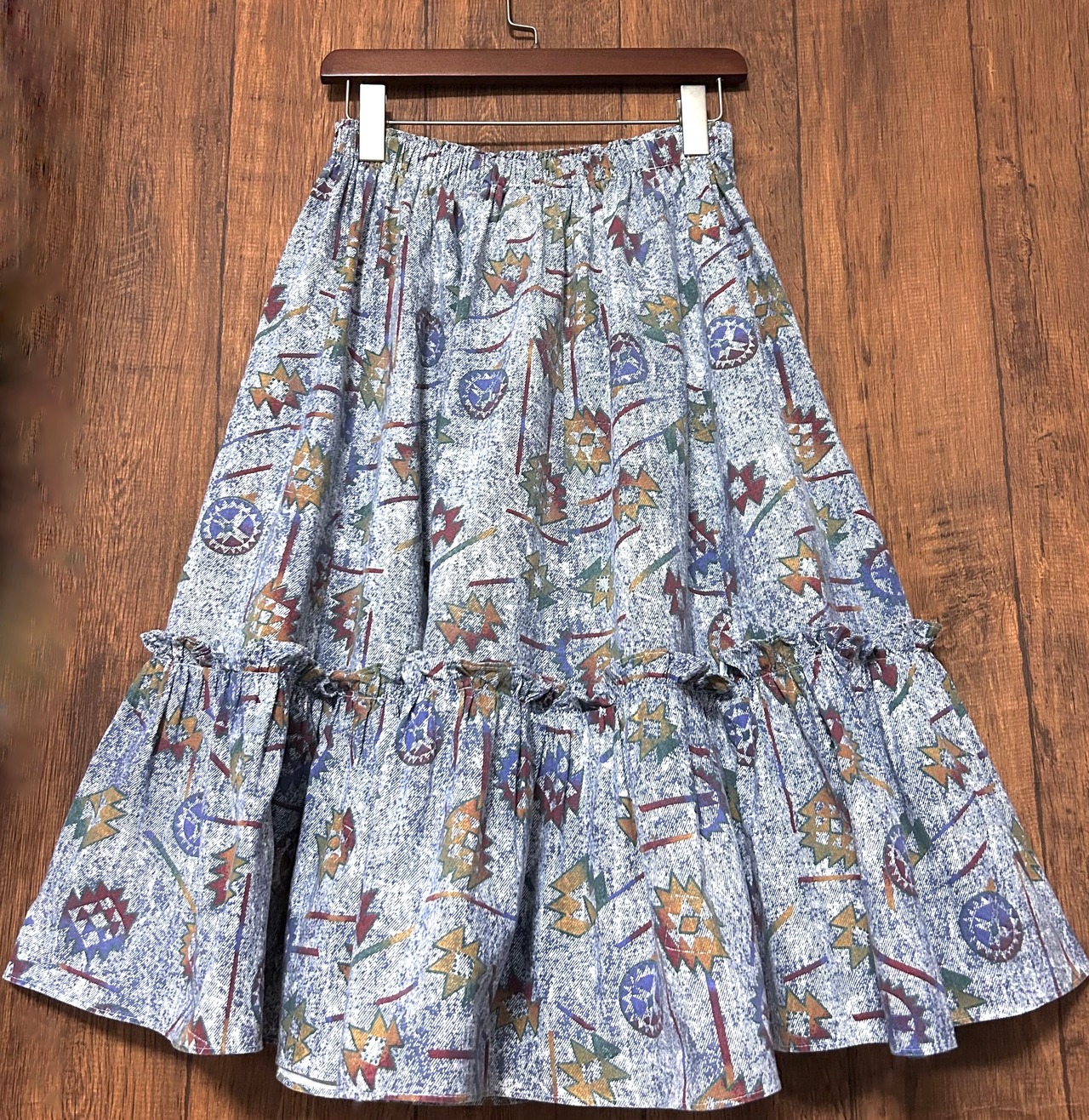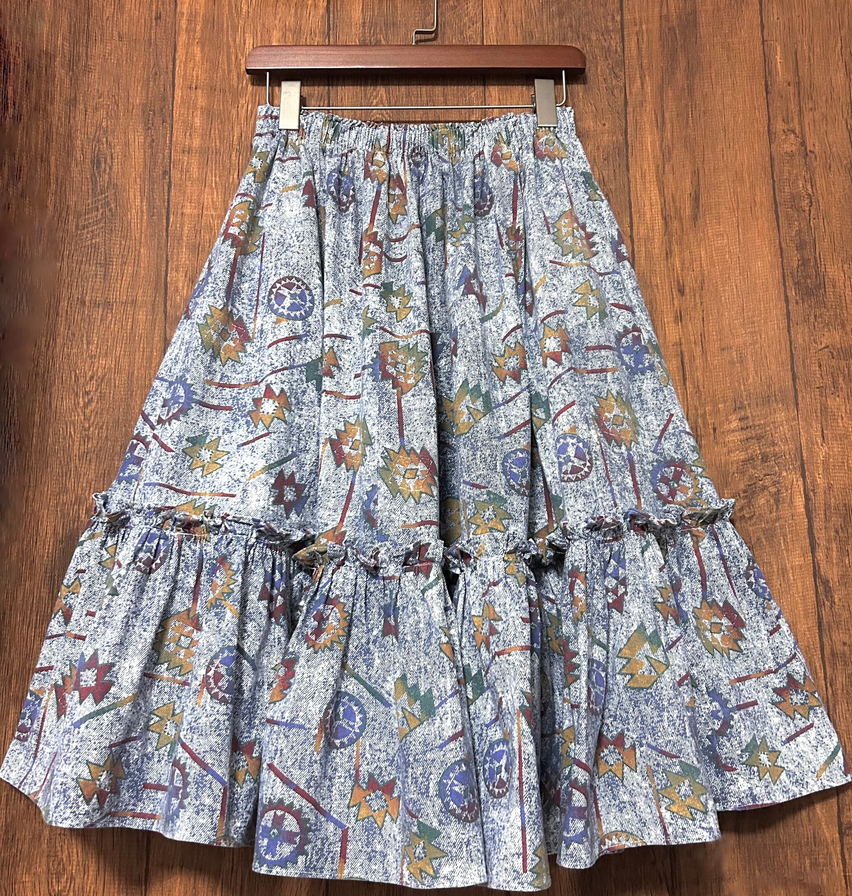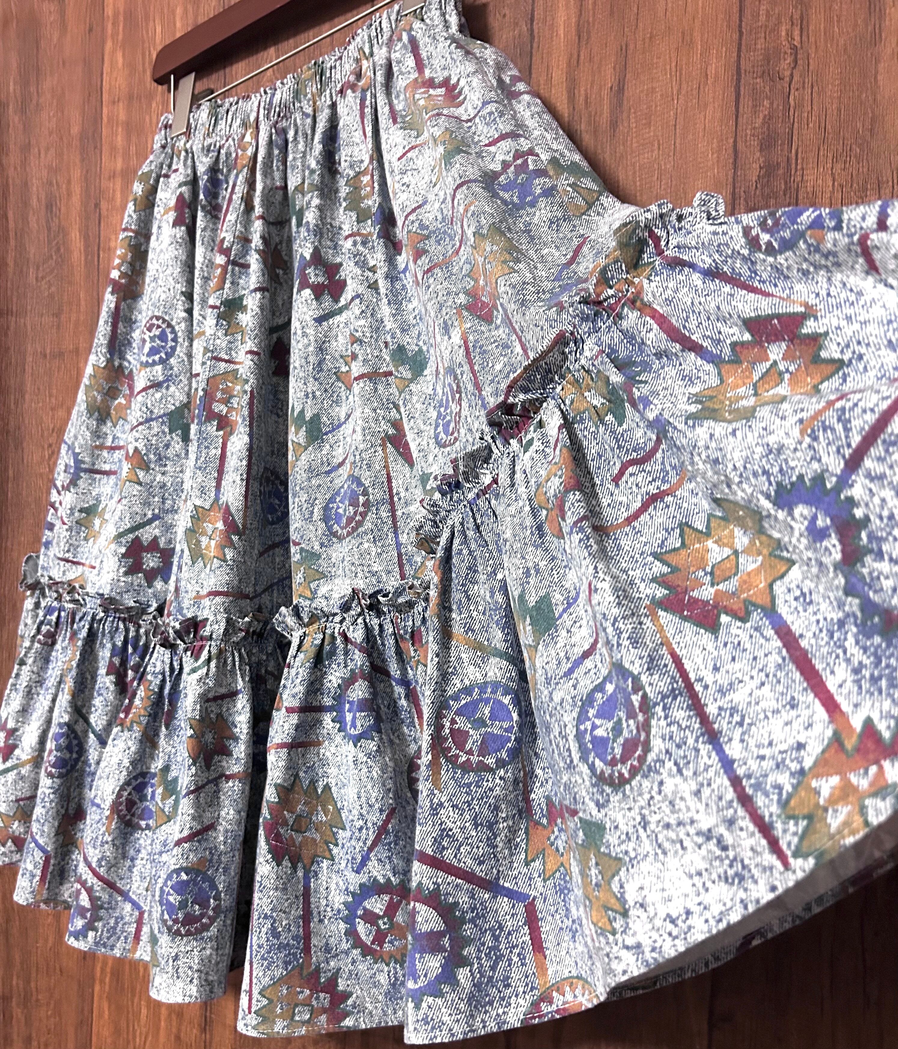 ボリューム サーキュラー フレア スカート ネイティブ アメリカン おしゃれ かわいい 個性的 フォーク スクエア ダンス ヴィンテージ USA 古着/club723 クラブ723(N675)
