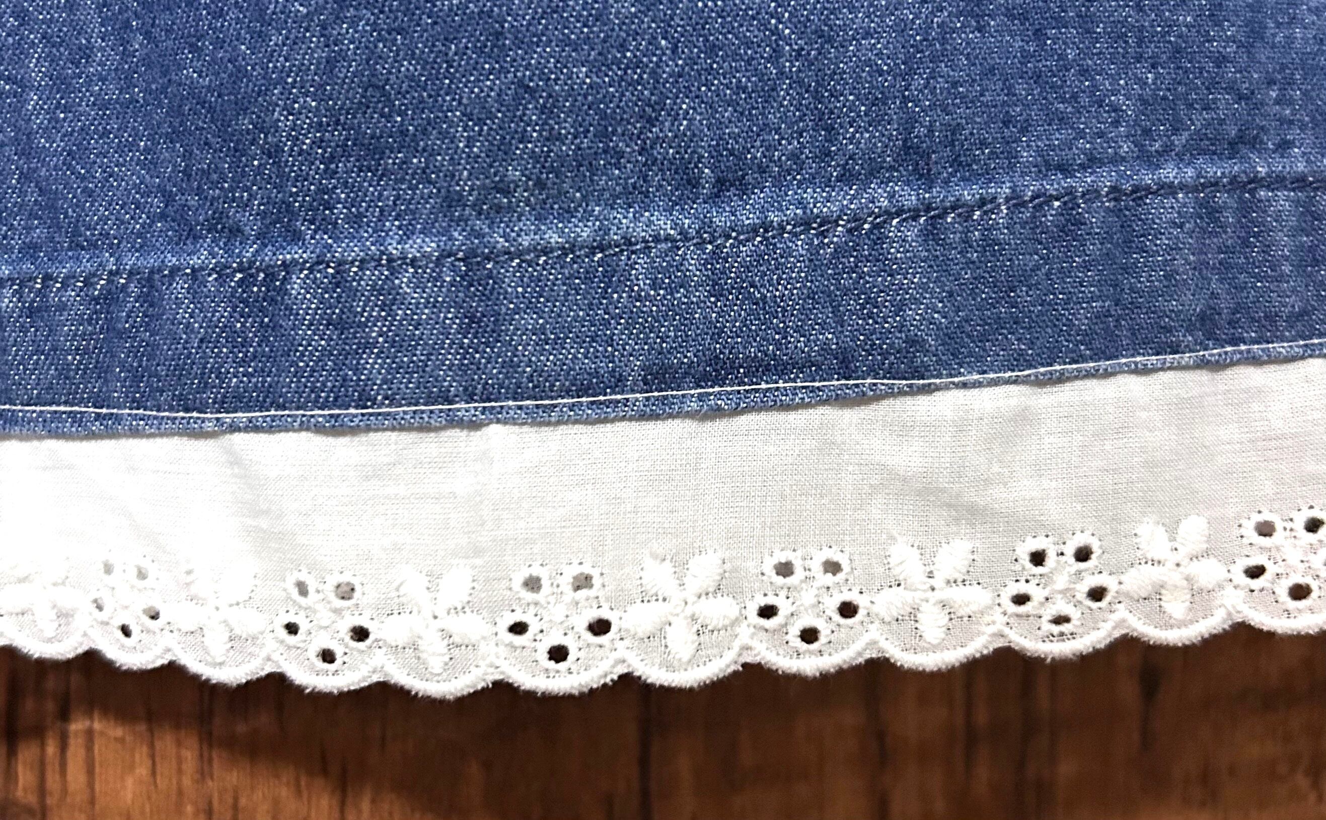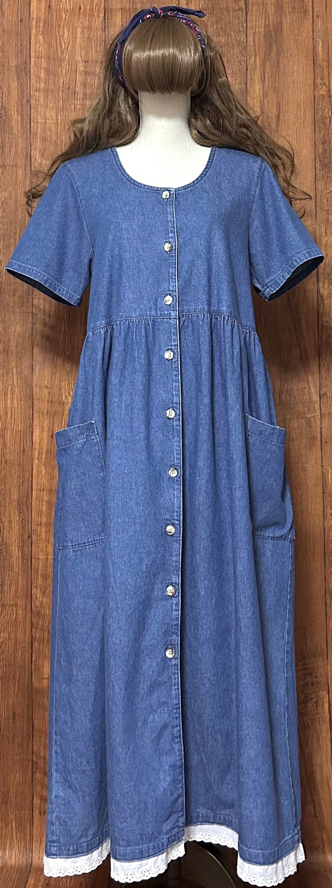 デニム ロング マキシ ワンピース レース 半袖 ヴィンテージ レトロ カントリー ガーリー おしゃれ かわいい USA vintage used 古着/club723 クラブ723(N679)