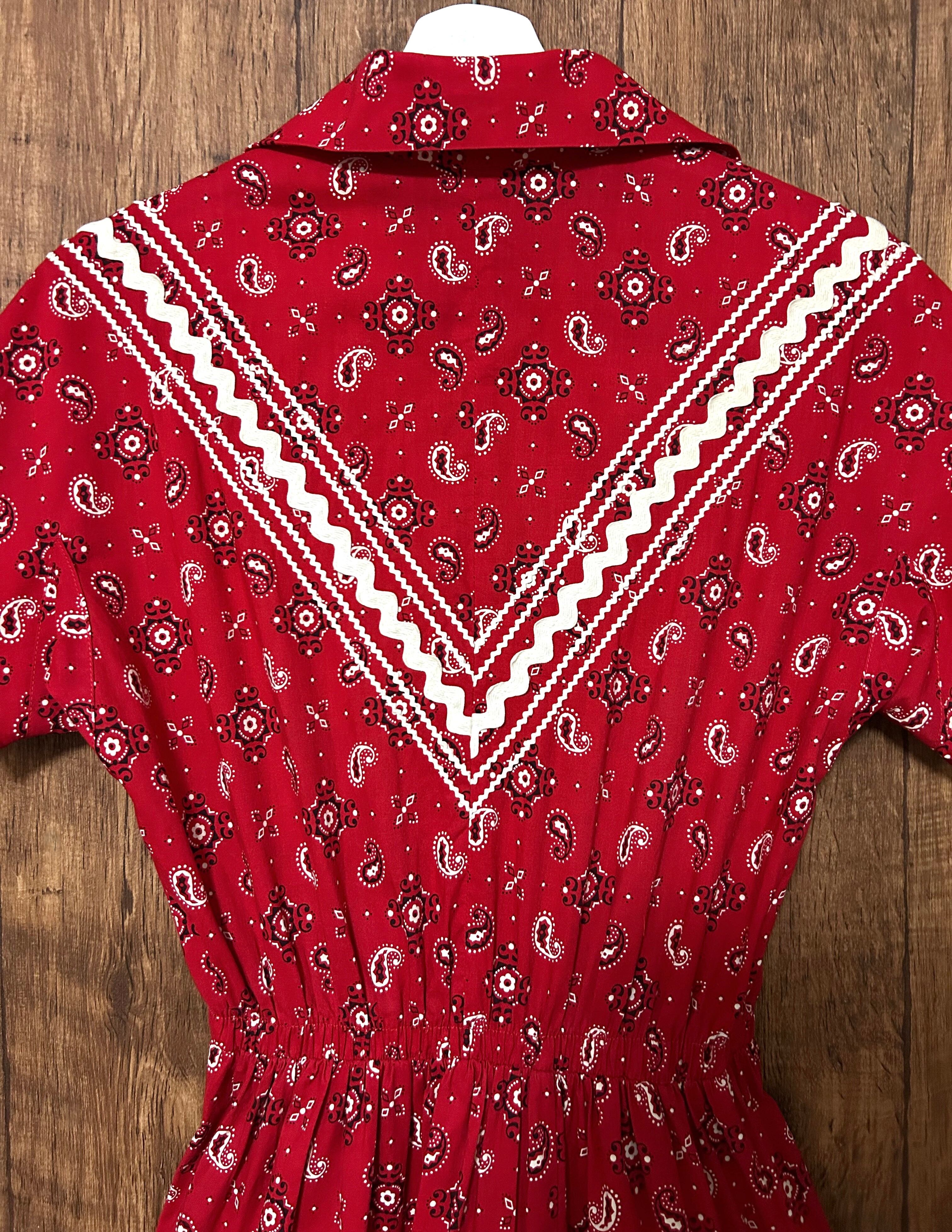 ヴィンテージ ワンピース ペイズリー バンダナ柄 赤 ウエスタン カントリー レトロ ガーリー ダンス おしゃれ かわいい 個性的 USA vintage used 古着/club723 クラブ723(N680)
