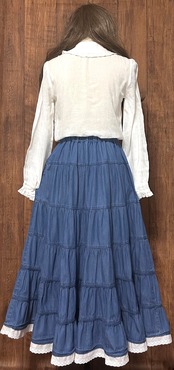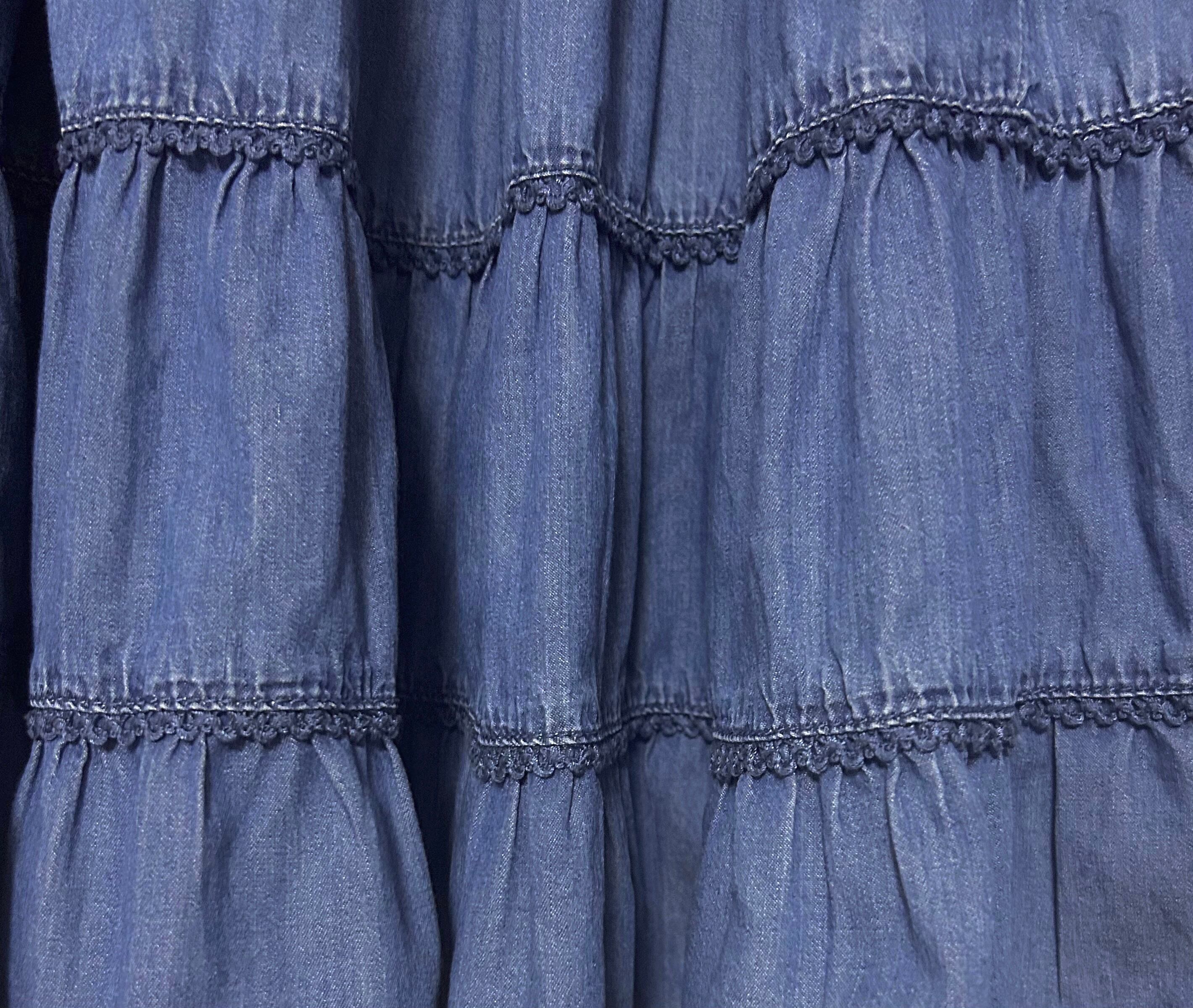 デニム ロング ティアード ボリューム スカート レース レトロ カントリー ガーリー ウエスタン おしゃれ かわいい 個性的 ヴィンテージ USA vintage used 古着/club723 クラブ723(N685)