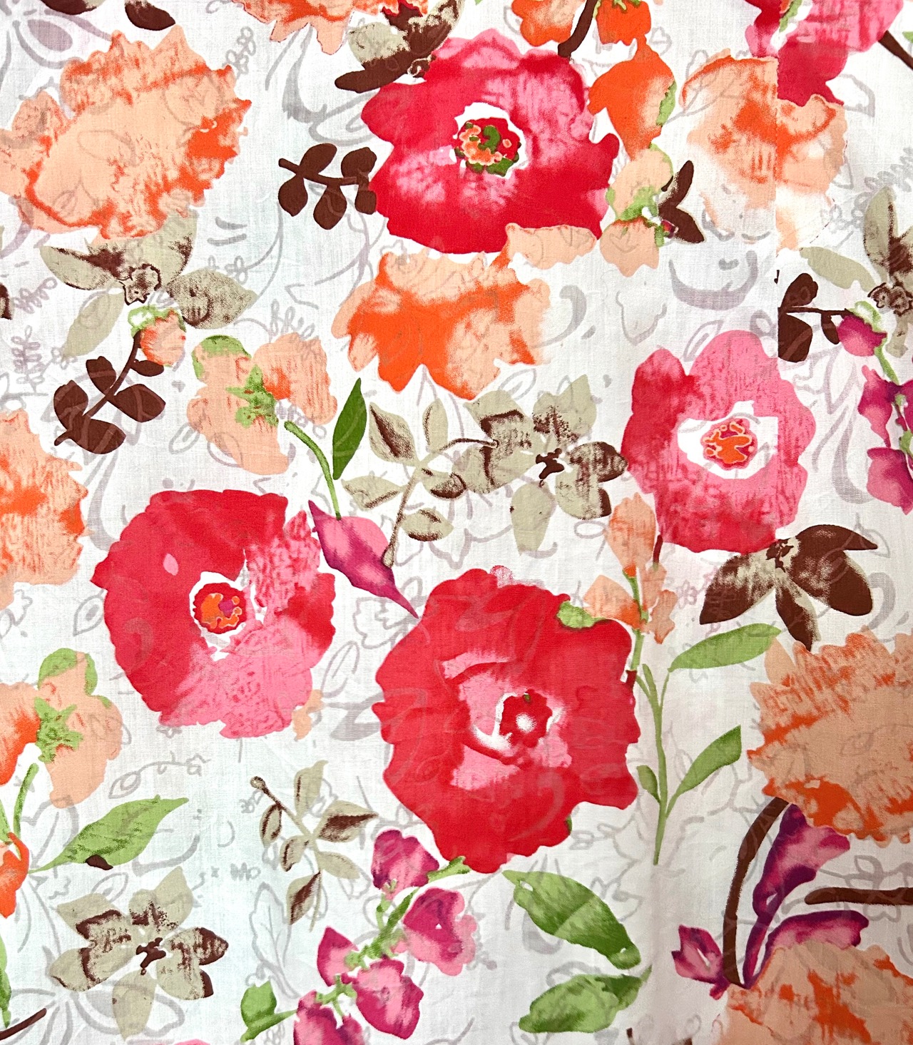 カラフルな色合い、大胆なお花柄が