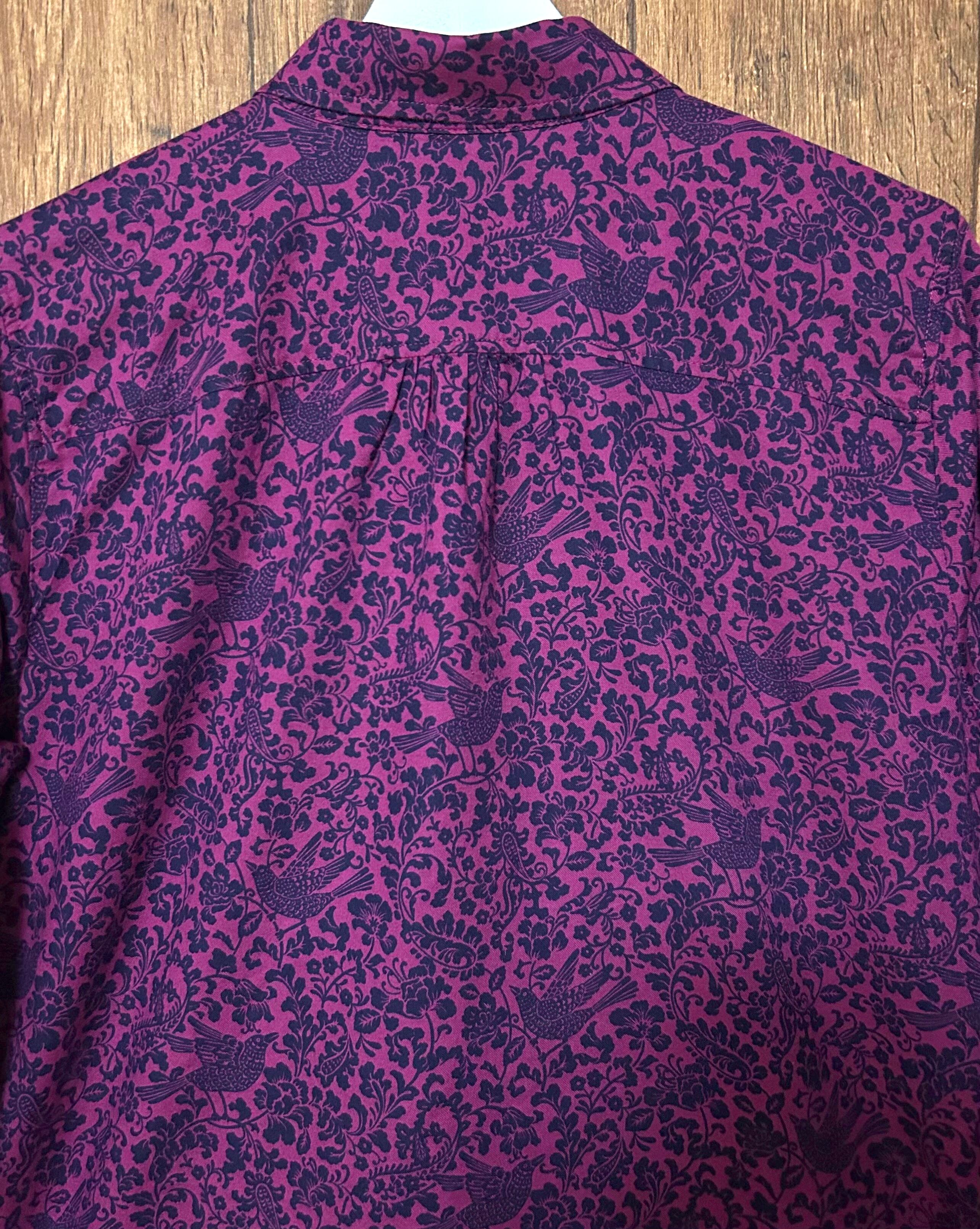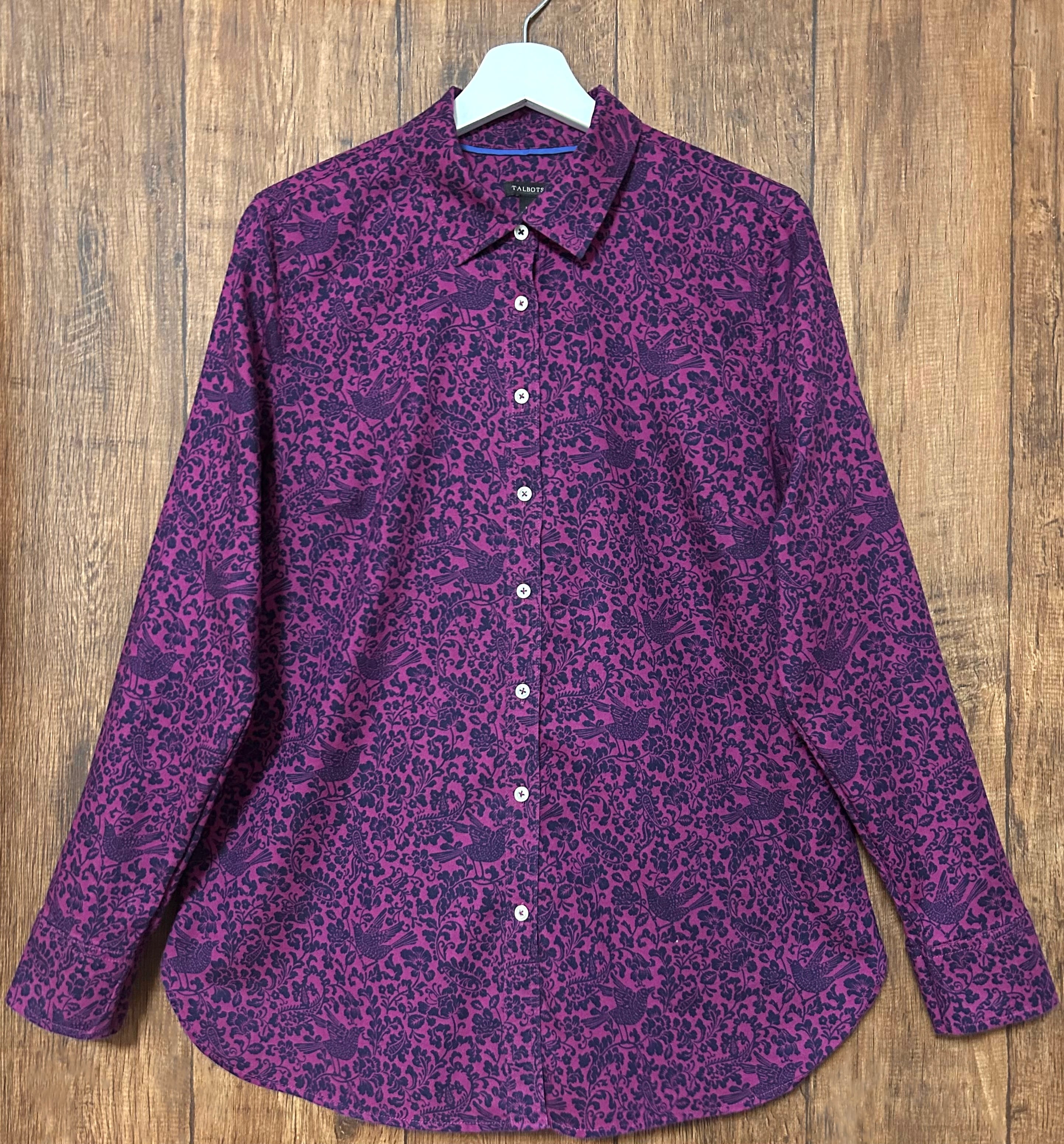 TALBOTS タルボット 花 鳥 柄シャツ 長袖 パープル 紫 レトロ 個性的 おしゃれ かわいい かっこいい ヴィンテージ used vintage USA 古着/club723 クラブ723(N701)