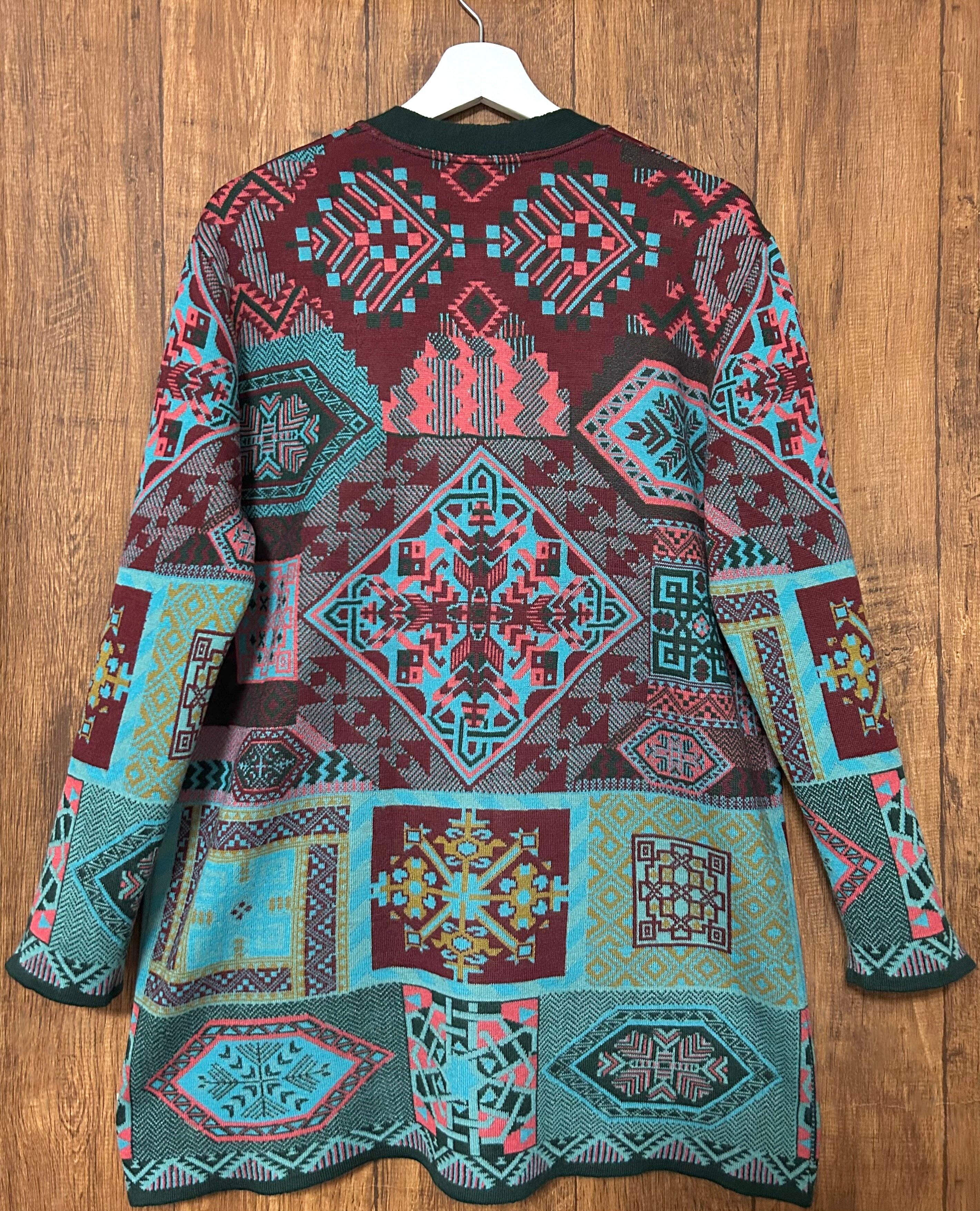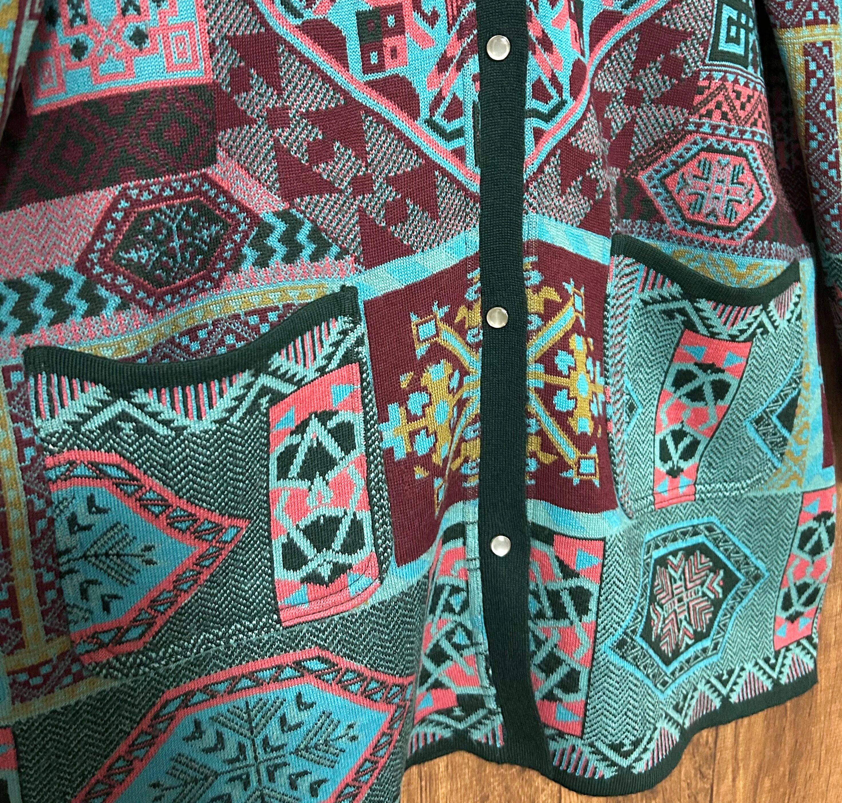 ニット カーディガン カーデ 長袖 ネイティブ柄 エスニック ポケット カラフル レトロ カントリー 個性的 おしゃれ ヴィンテージ vintage used 古着/club723 クラブ723(N706)
