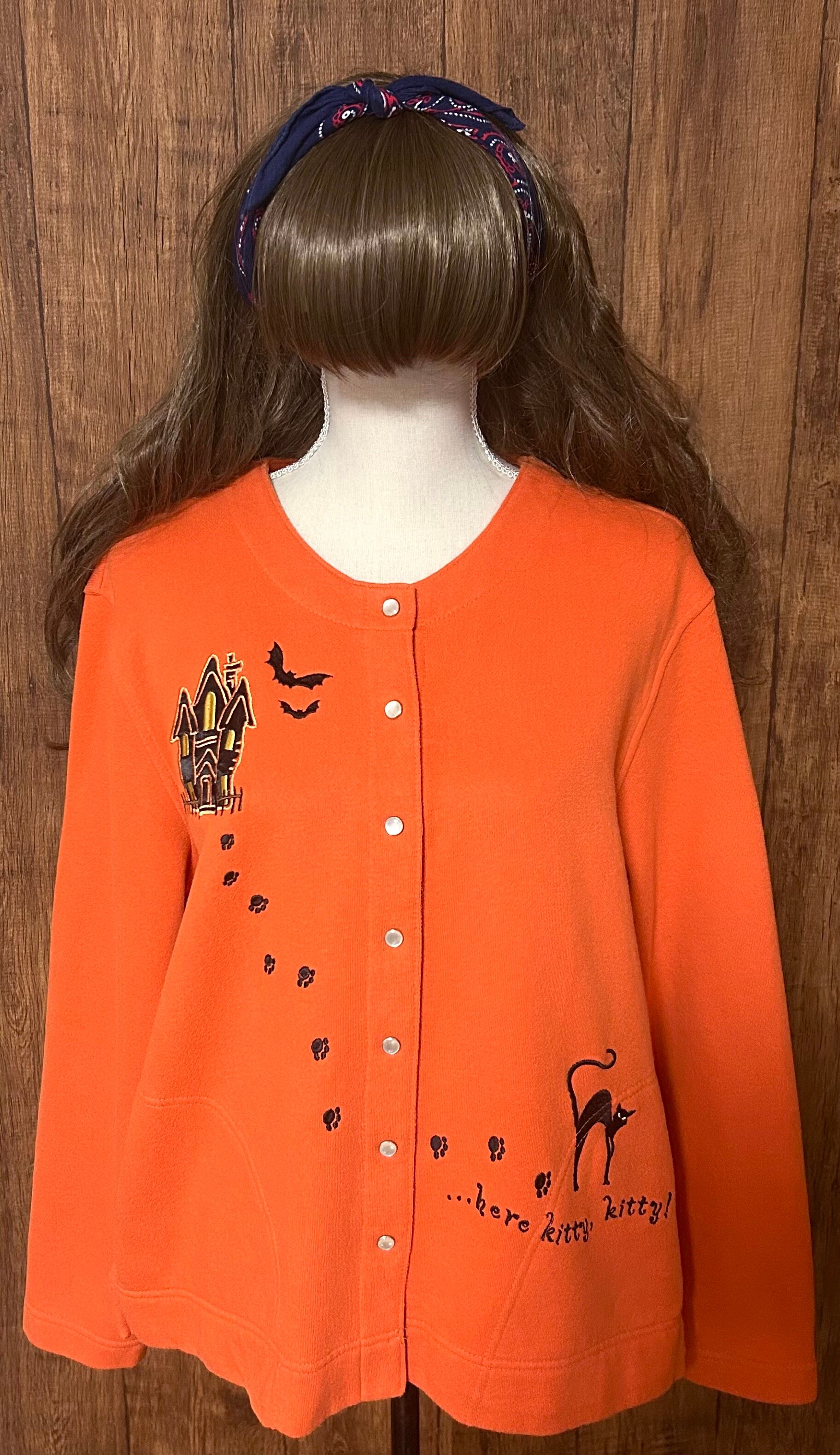 スウェット スエット カーディガン カーデ ハロウィン ハロウィーン オレンジ 猫 ネコ ポケット レトロ カントリー 個性的 かわいい USA ヴィンテージ vintage used 古着/club723 クラブ723(N713)