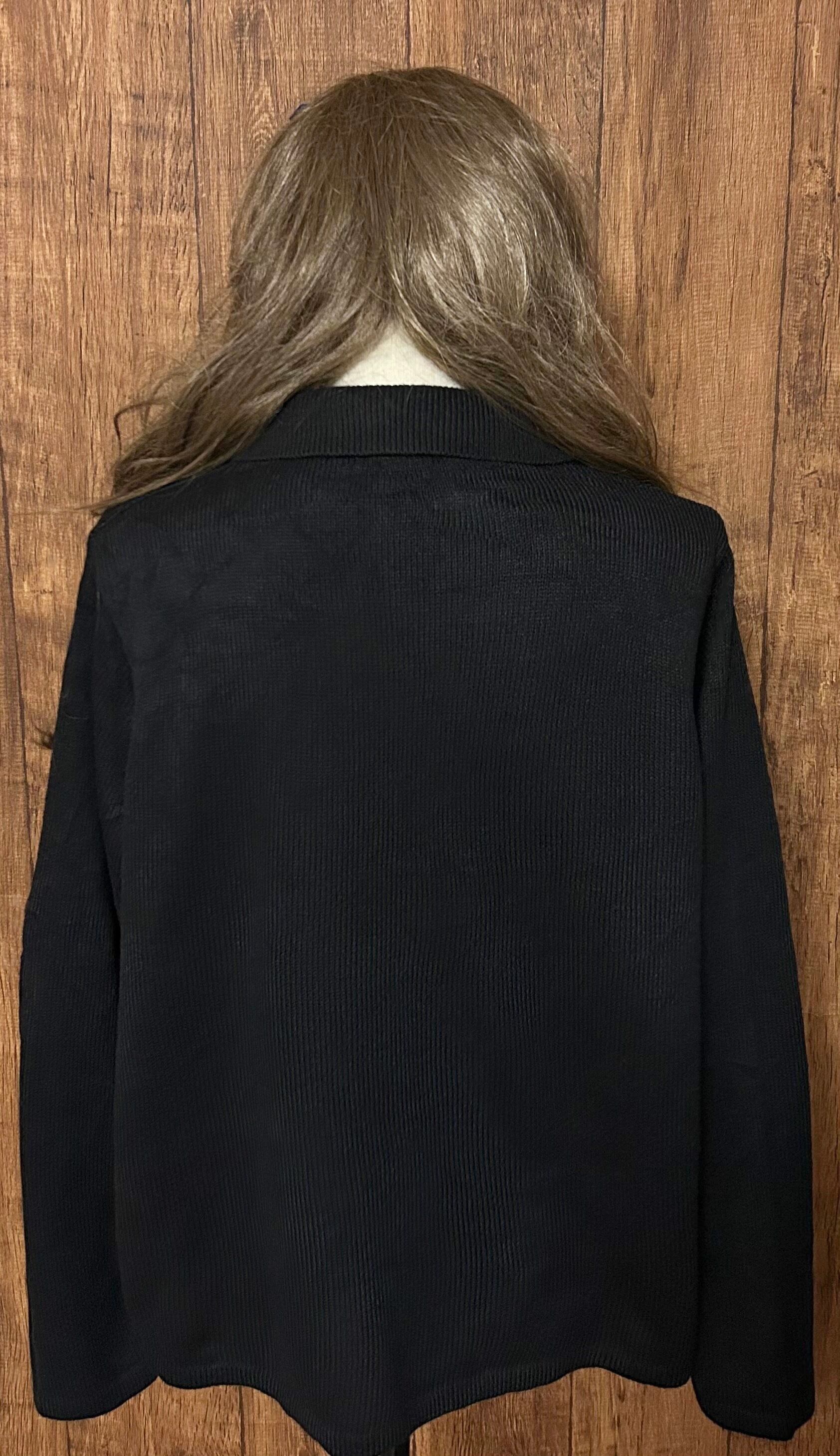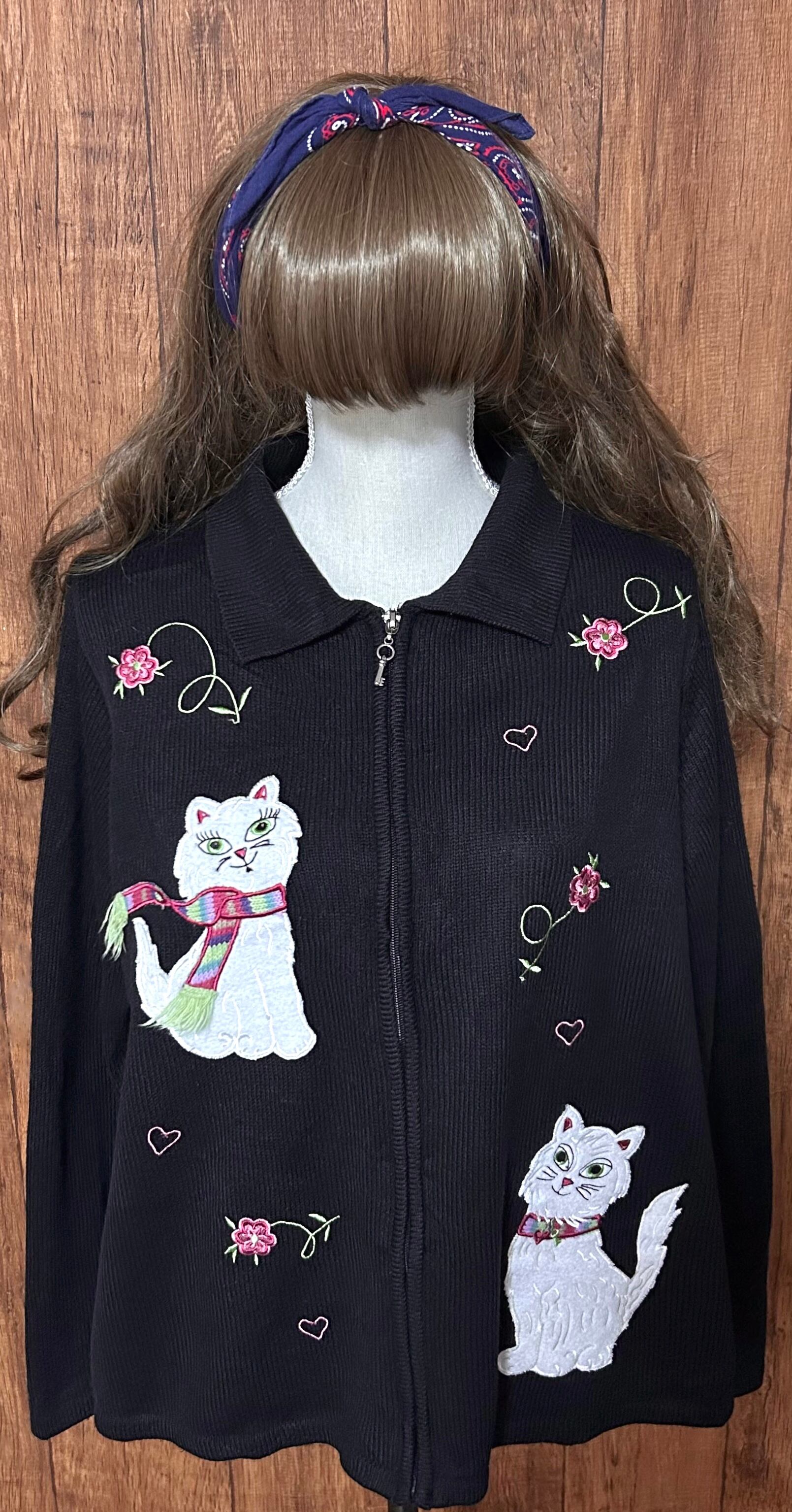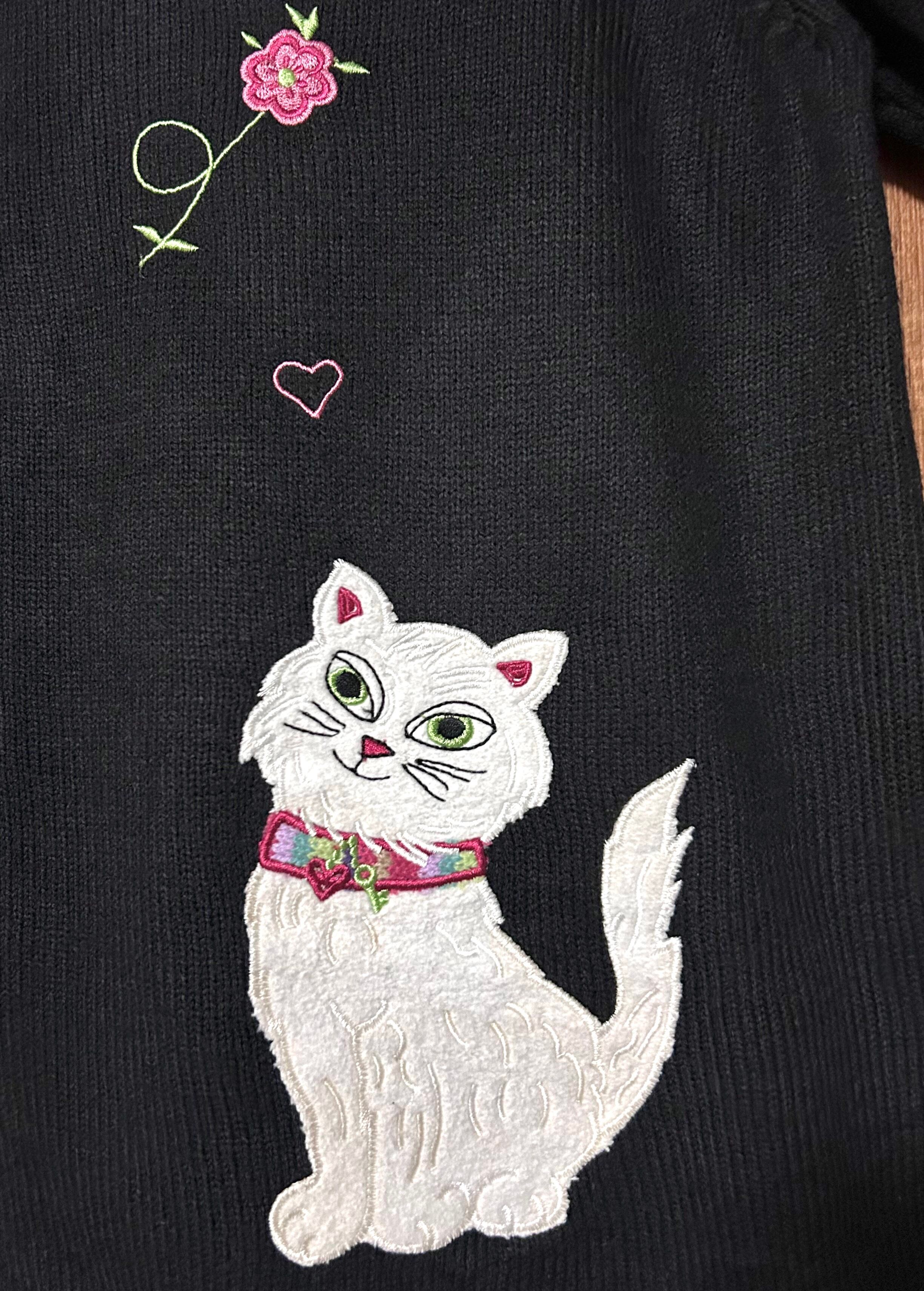 ねこ ネコ 動物 ニット カーディガン カーデ 黒 刺繍 装飾 花 ヴィンテージ カントリー レトロ ファンシー 個性的 おしゃれ かわいい vintage used 古着/club723 クラブ723(N721)