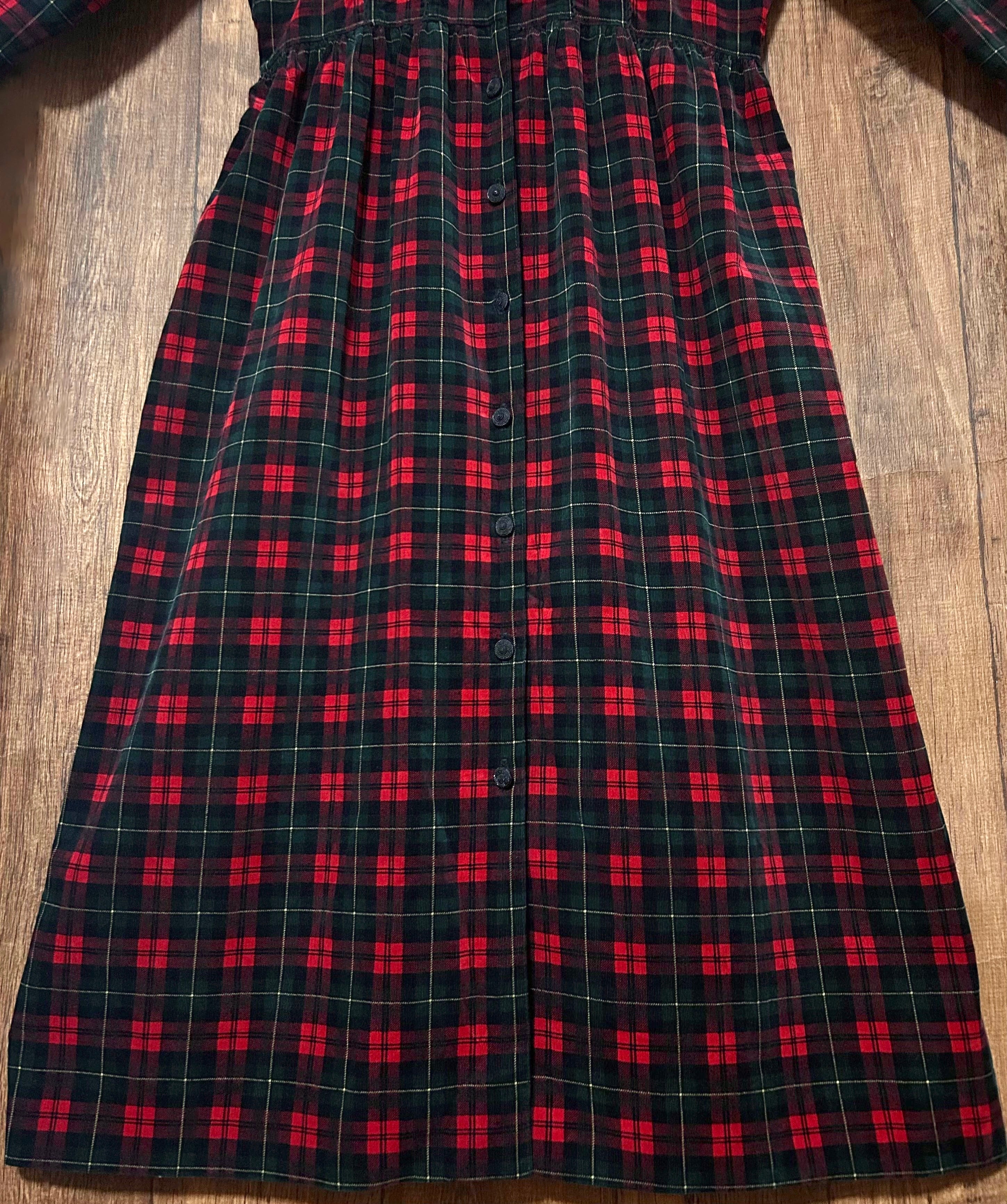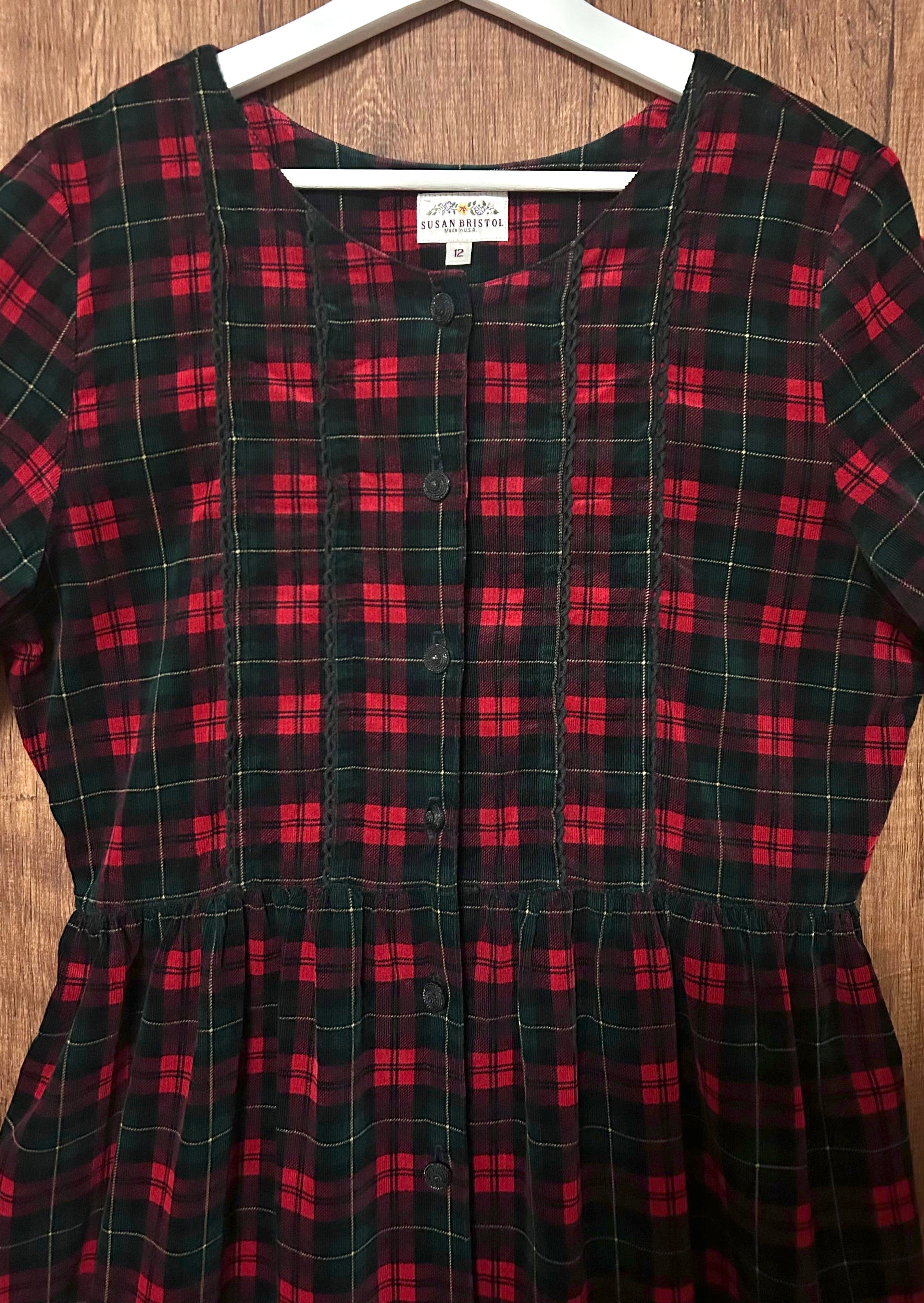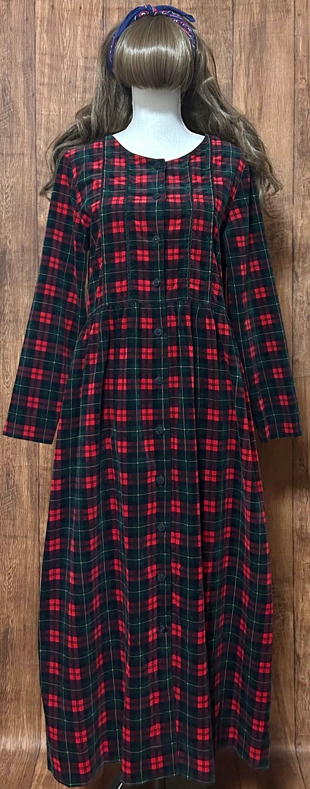 コーデュロイ チェック 柄 ロング ワンピース 長袖 ヴィンテージ レトロ カントリー おしゃれ かわいい 個性的 USA 古着/club723 クラブ723(N728)