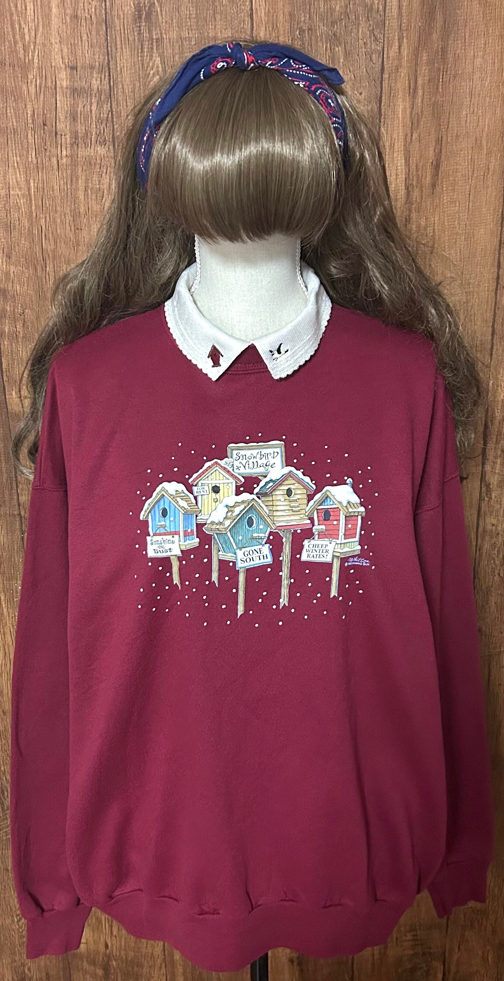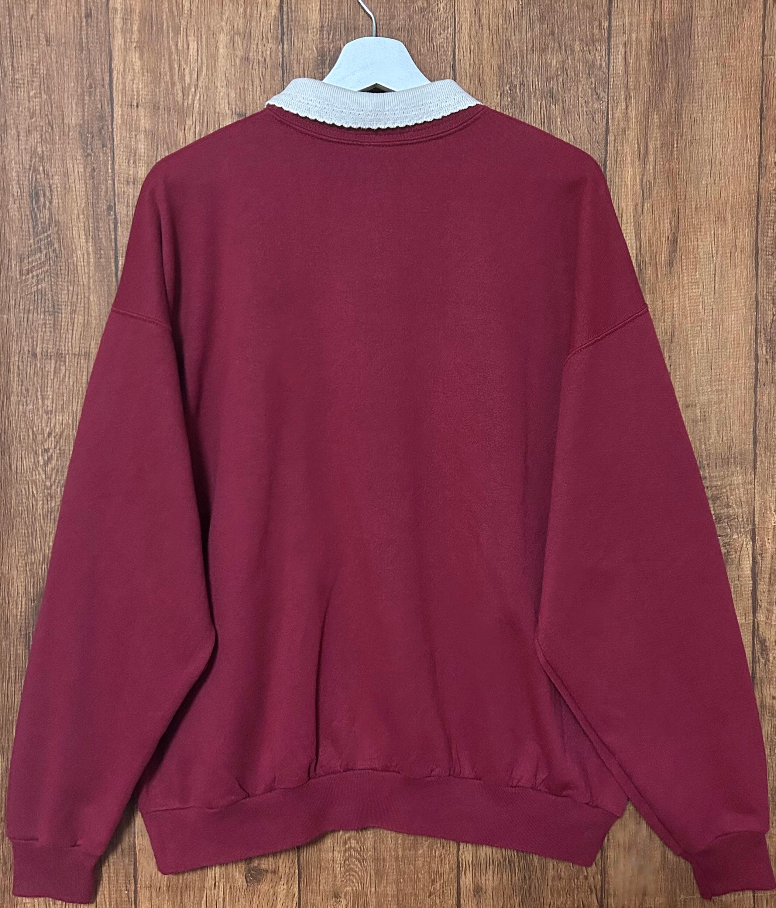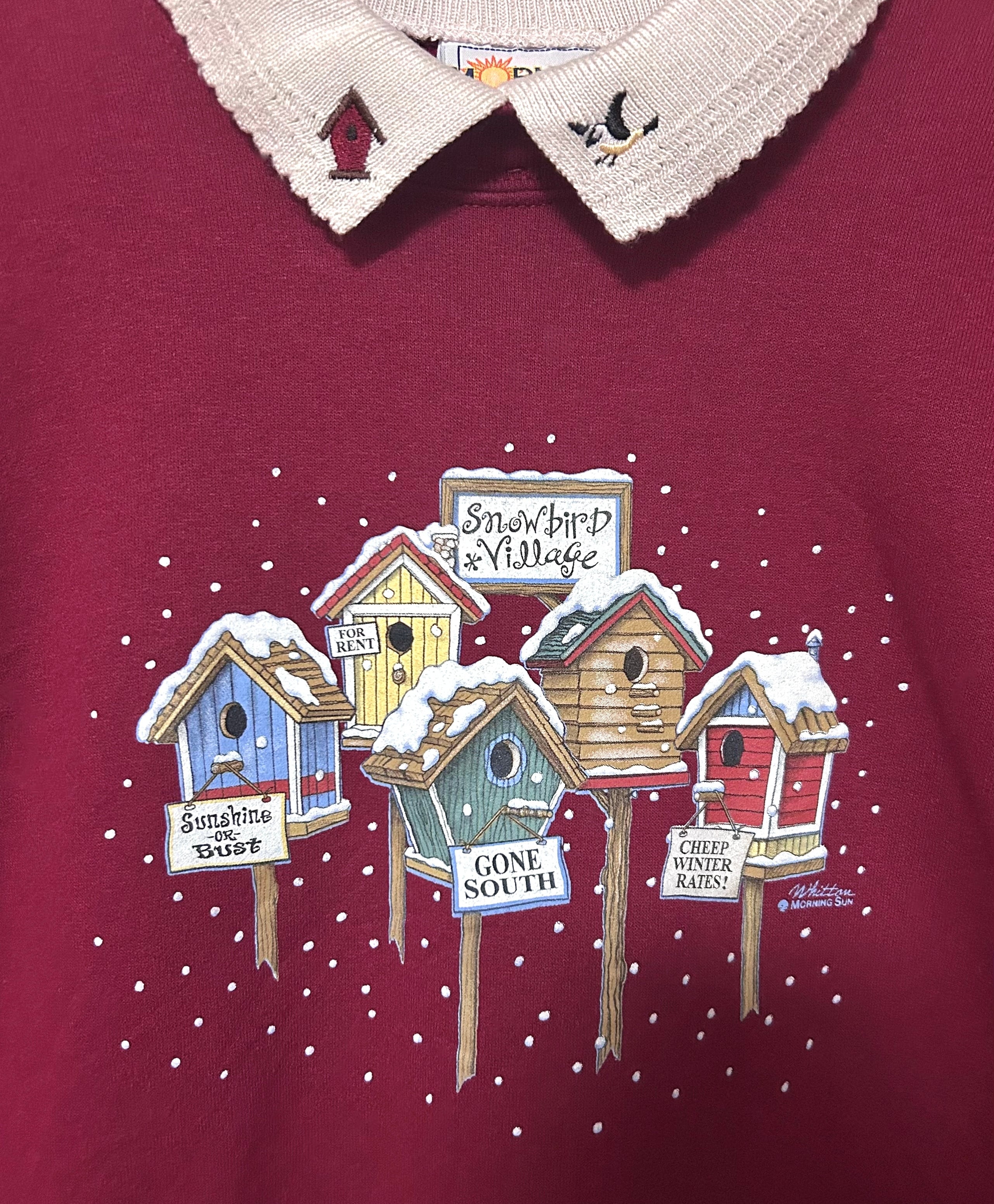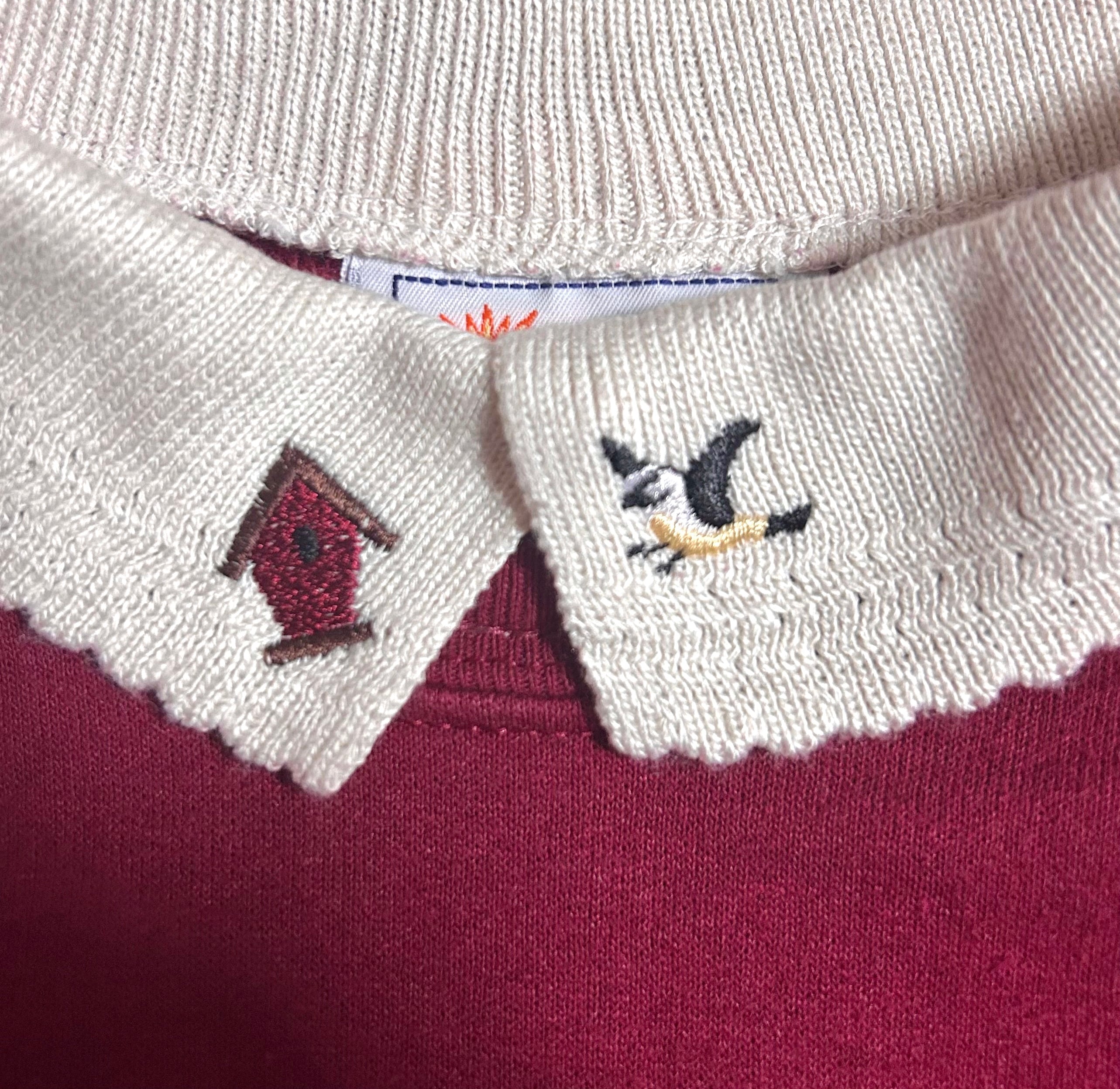 スウェット スエット トレーナー 刺繍 鳥 襟付き エンジ レトロ カントリー ファンシー おしゃれ 個性的 かわいい USA ヴィンテージ vintage used 古着/club723 クラブ723(N729)
