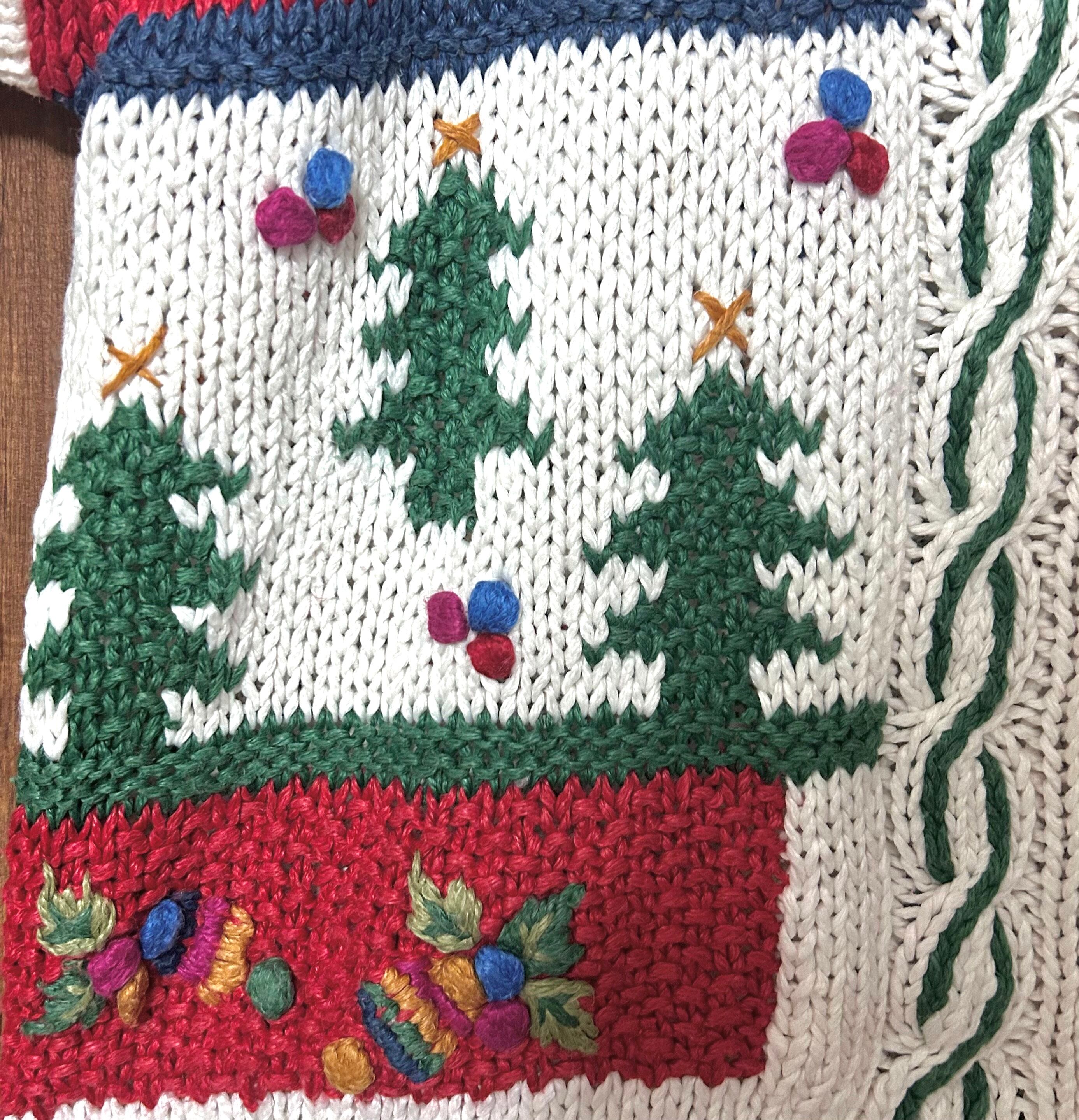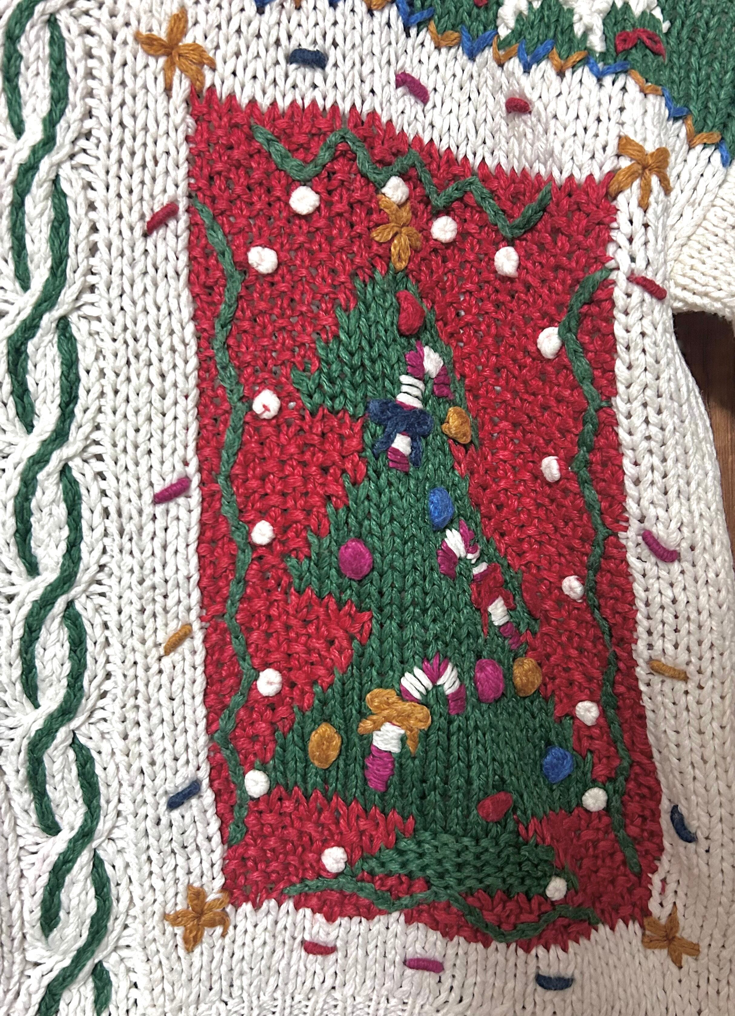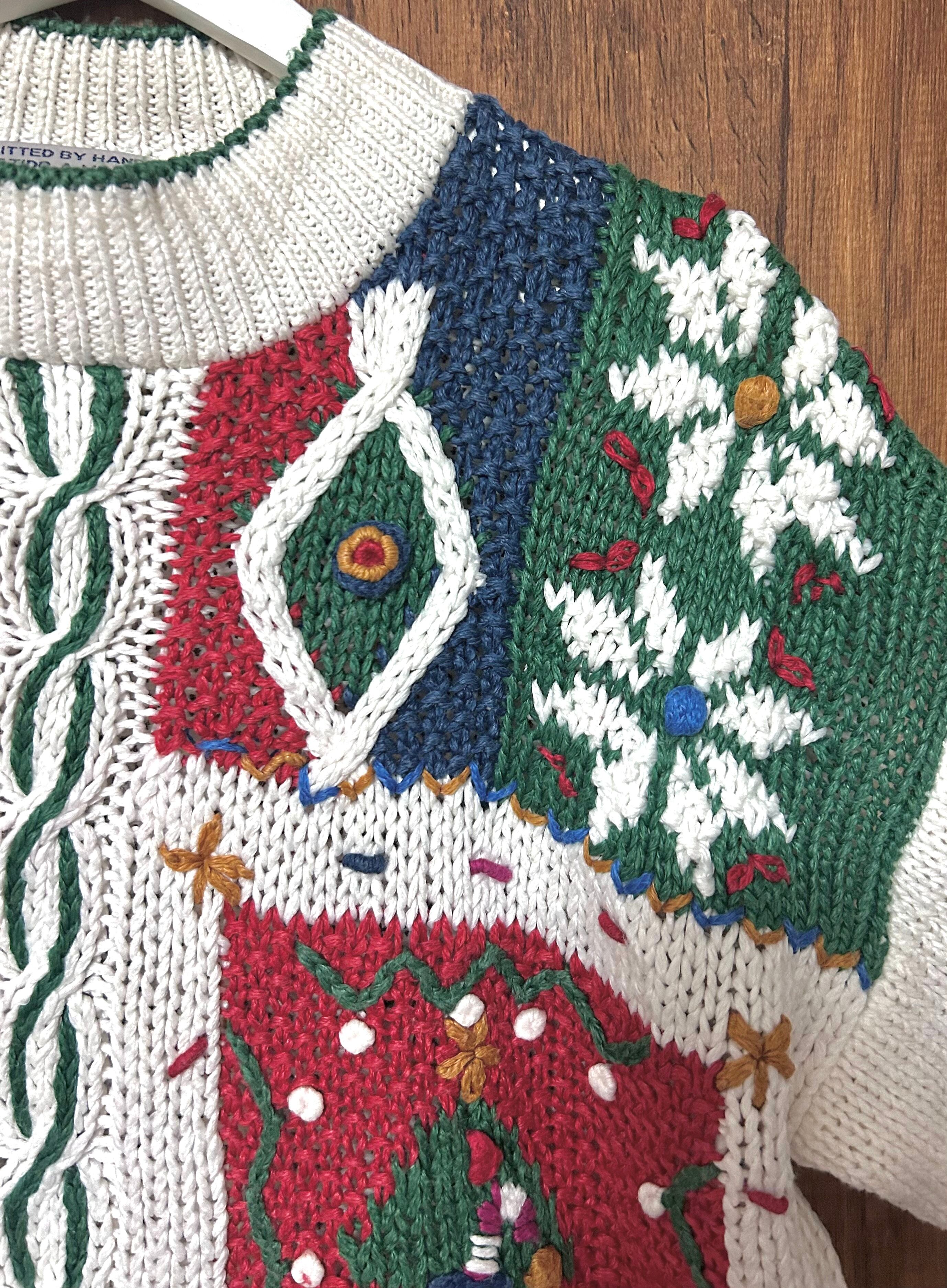 クリスマス アグリー セーター ニット 白 装飾 ツリー リース 雪 冬 レトロ カントリー ファンシー かわいい 個性的 ヴィンテージ USA vintage used 古着/club723 クラブ723(N731)