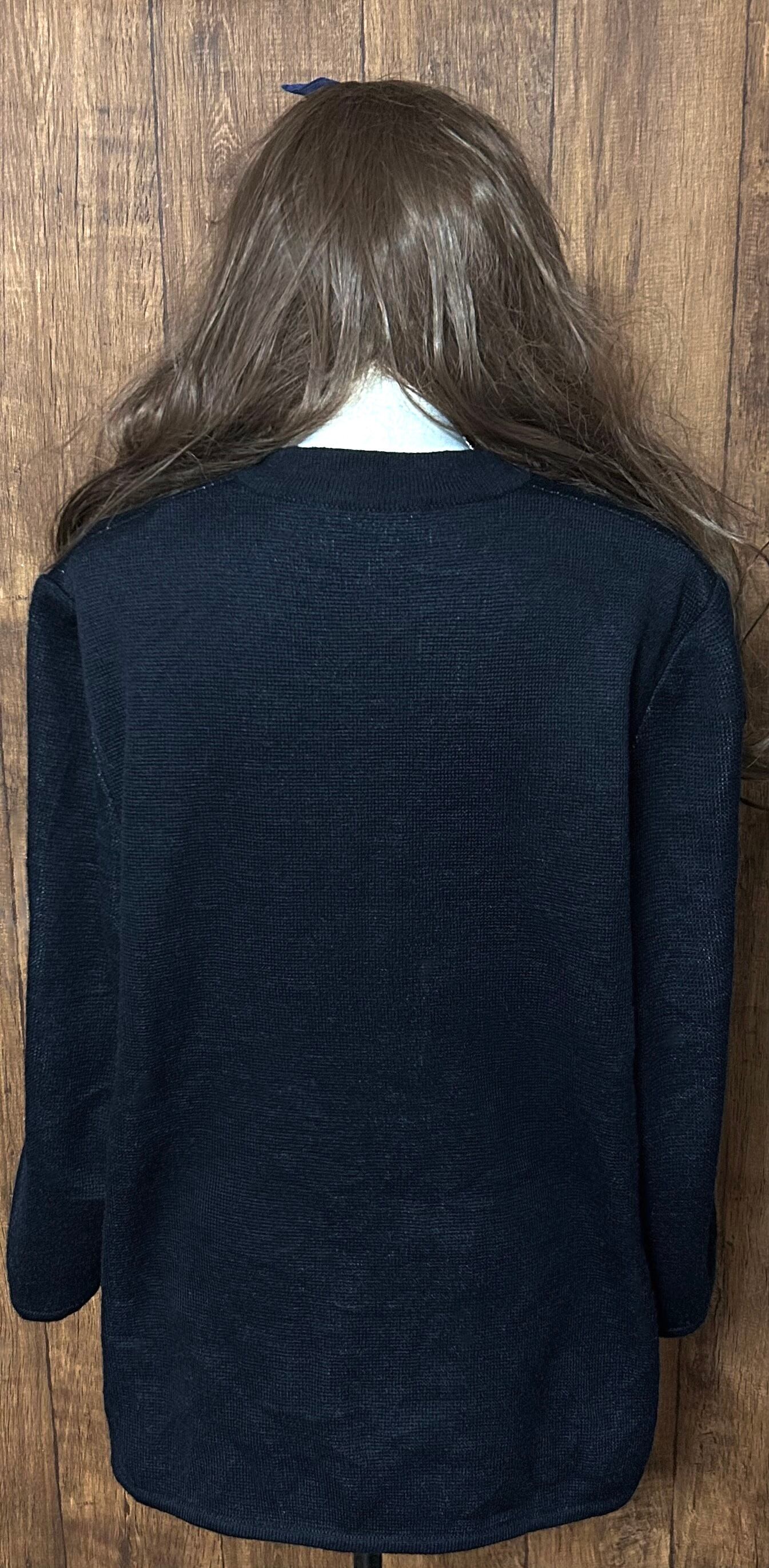 ニット カーディガン カーデ 長袖 柄 紺 ネイビー 水色 Vネック ポケット ヴィンテージ レトロ カントリー 個性的 おしゃれ かわいい vintage used 古着/club723 クラブ723(N757)