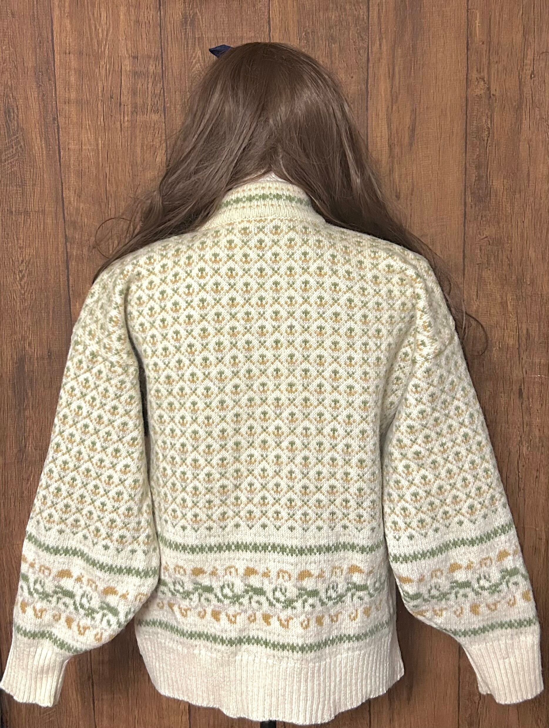 ウール ニット カーディガン カーデ 長袖 花 柄 レトロ カントリー ガーリー おしゃれ かわいい 個性的 ヴィンテージ vintage used 古着/club723 クラブ723(N764)