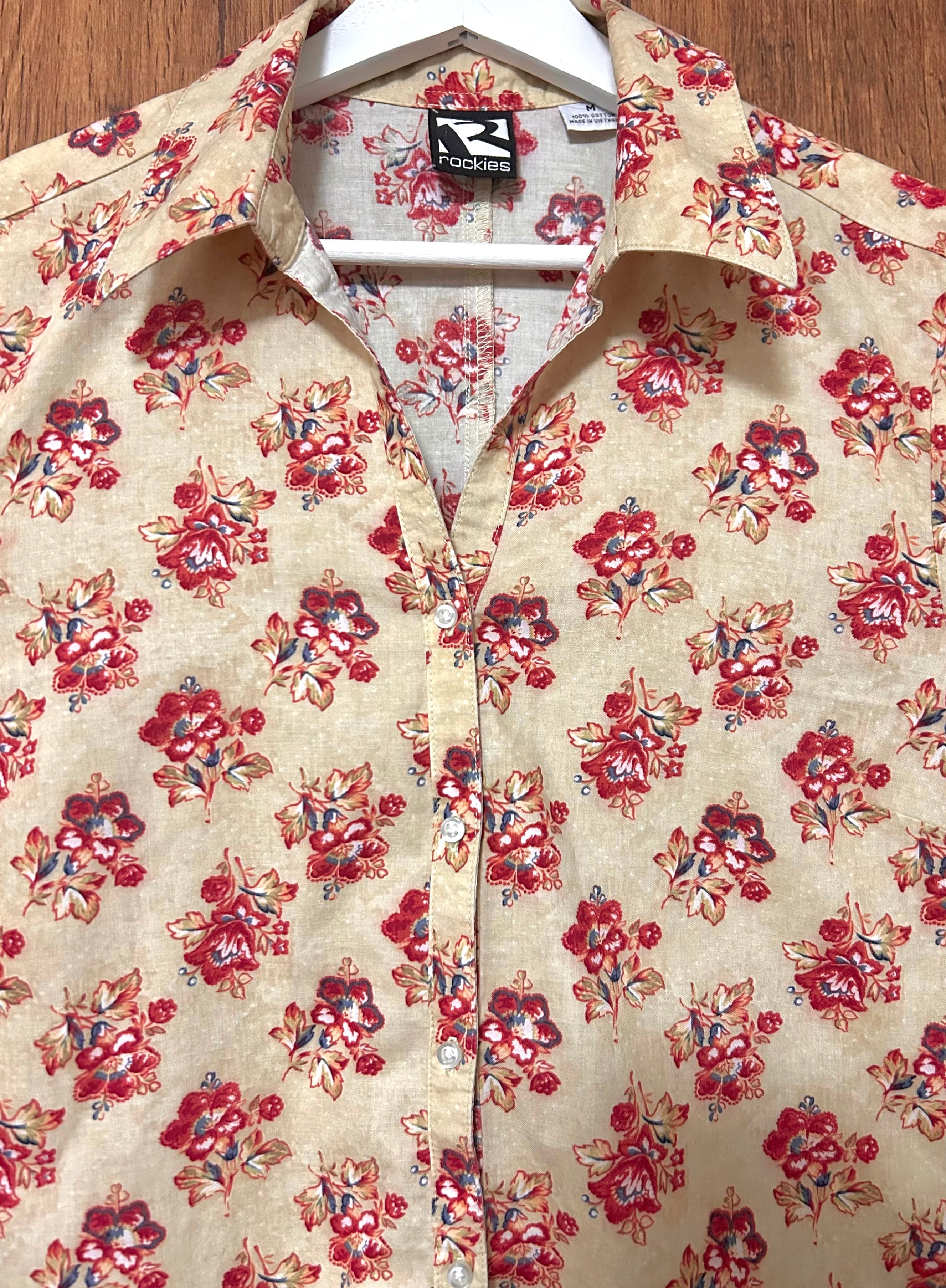 花柄 総柄 シャツ 長袖 ベージュ ウエスタン レトロ カントリー ガーリー おしゃれ かわいい 個性的 ヴィンテージ used vintage USA 古着/club723 クラブ723(N767)