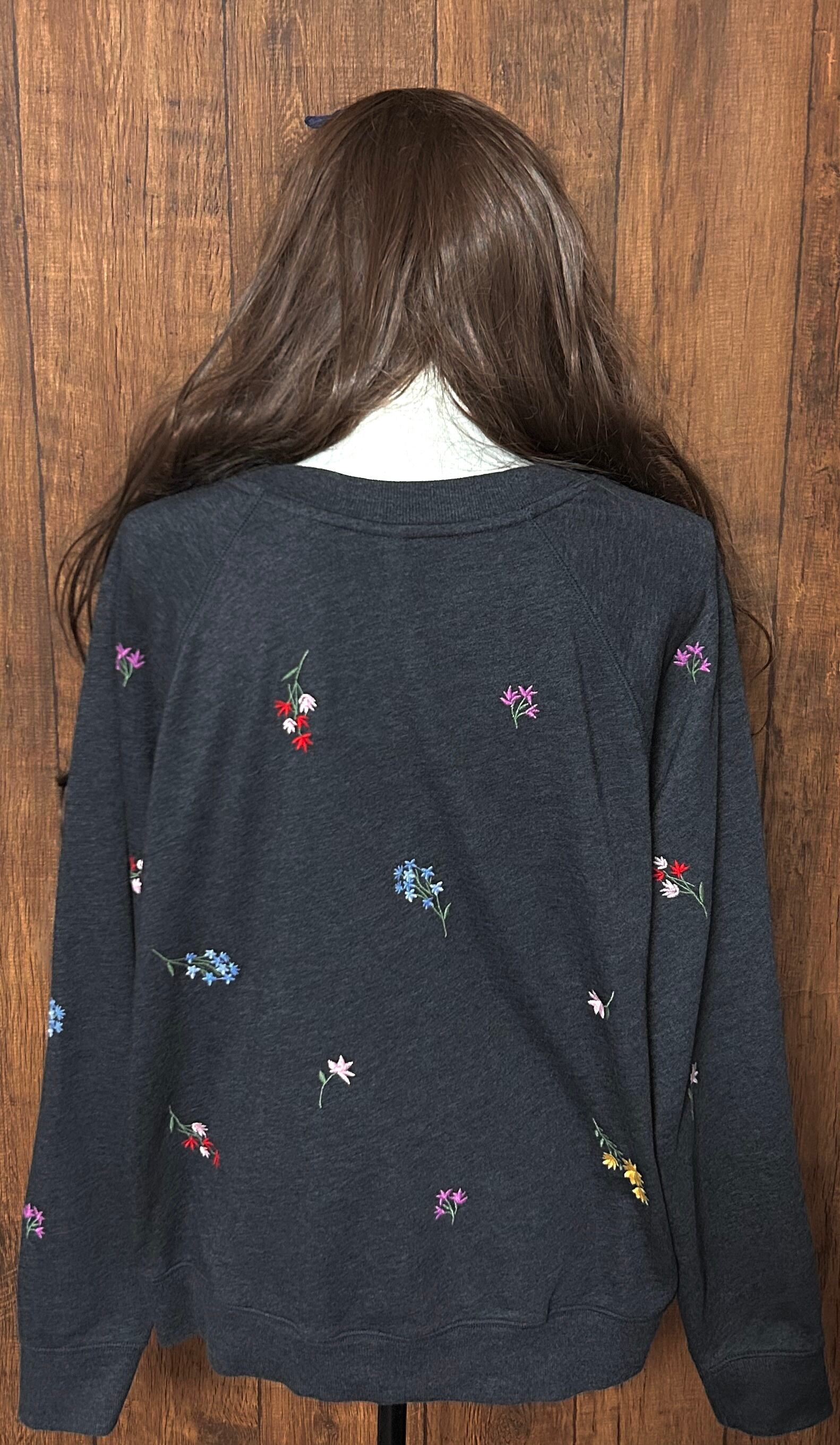 スウェット スエット トレーナー 刺繍 花 フラワー グレー 濃グレー カラフル レトロ カントリー ファンシー おしゃれ かわいい 個性的 ヴィンテージ vintage used 古着/club723 クラブ723(N770)