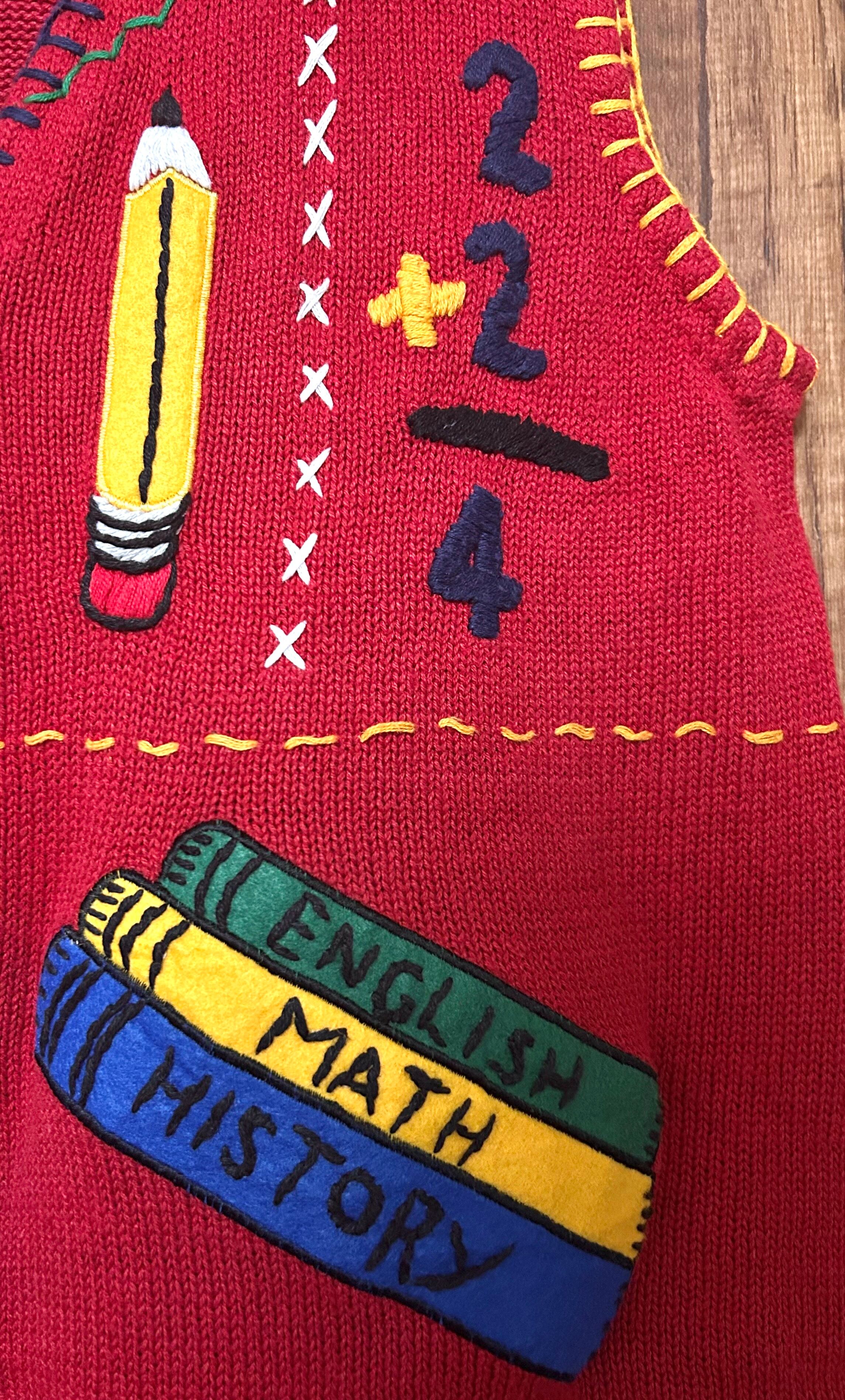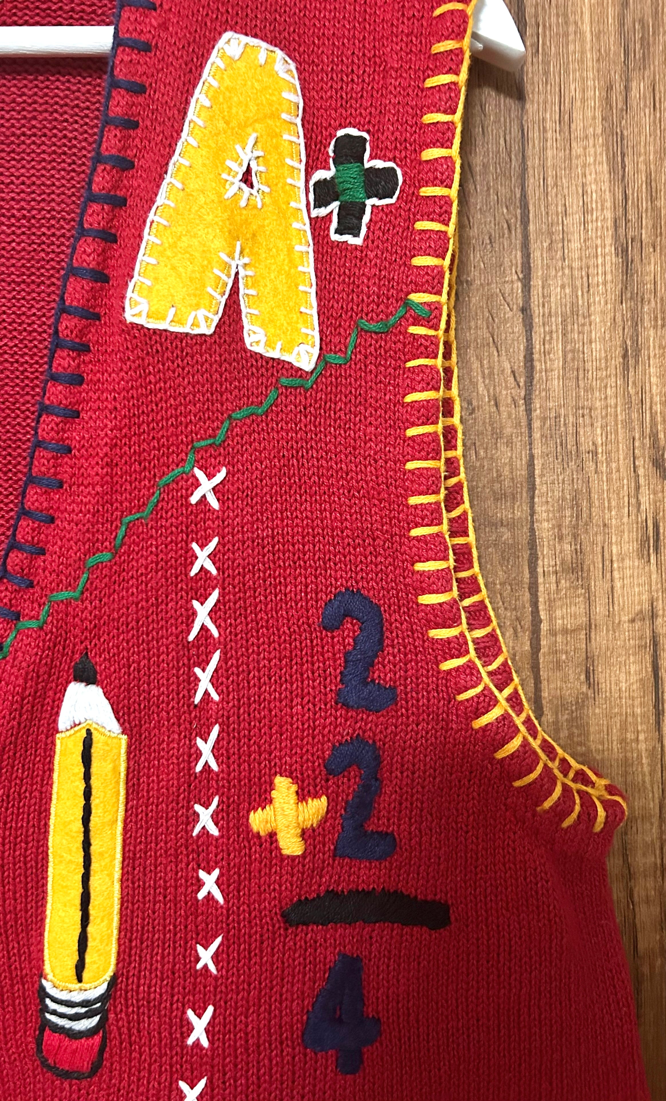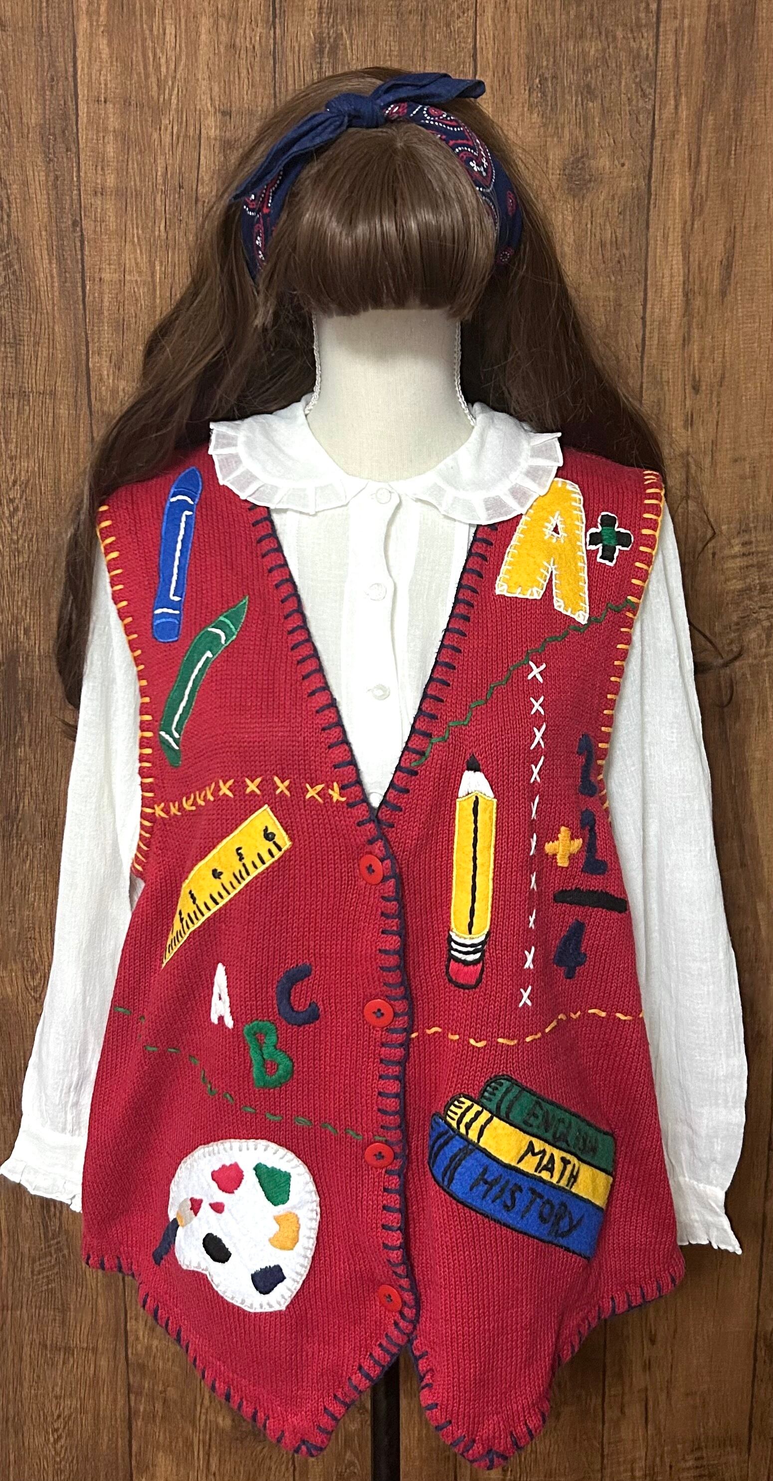 ニットベスト 赤 刺繍 手刺繍 スクール 学校 アメリカン カントリー ファンシー レトロ かわいい おしゃれ 個性的 ヴィンテージ USA vintage used 古着/club723 クラブ723(N772)