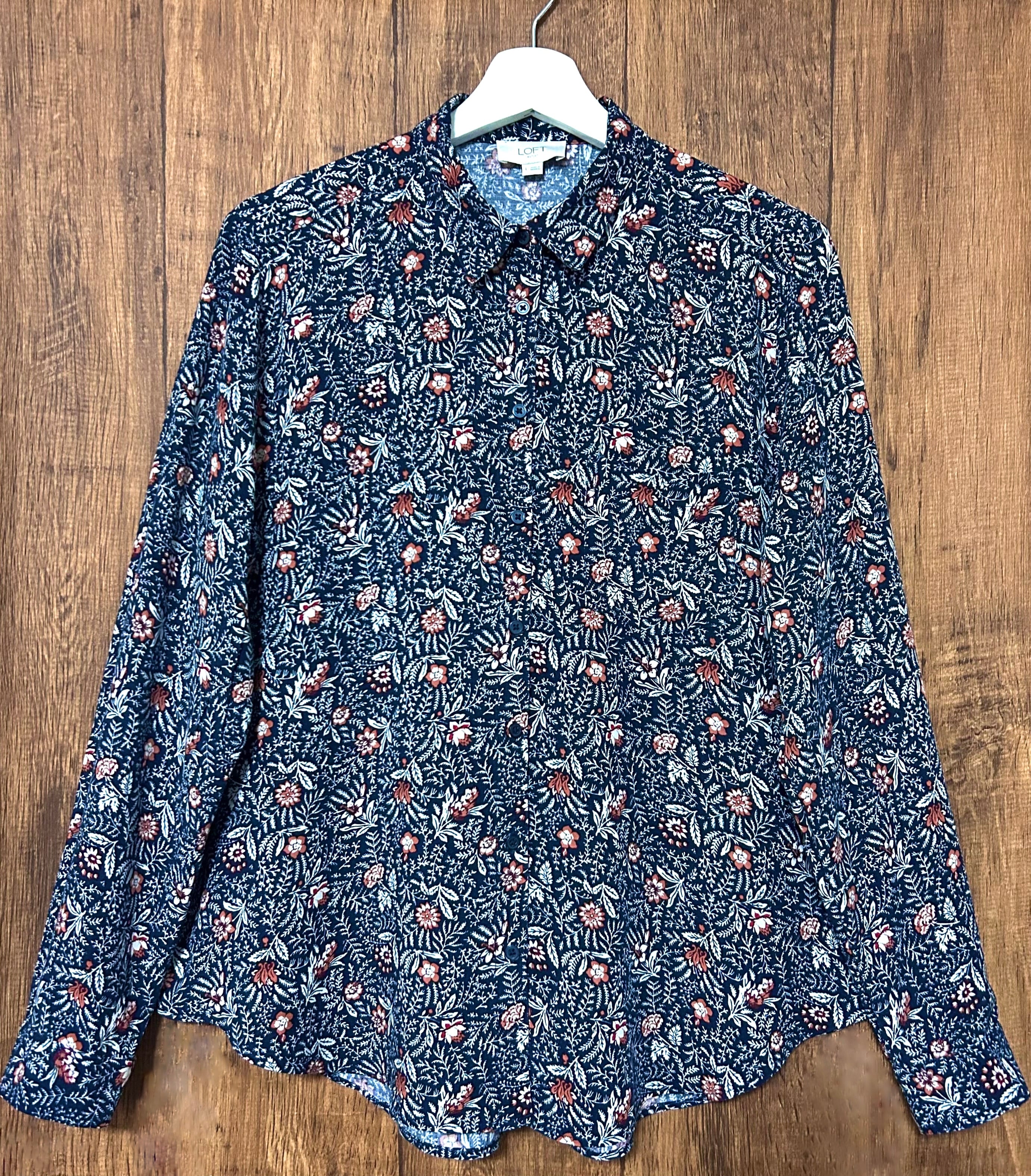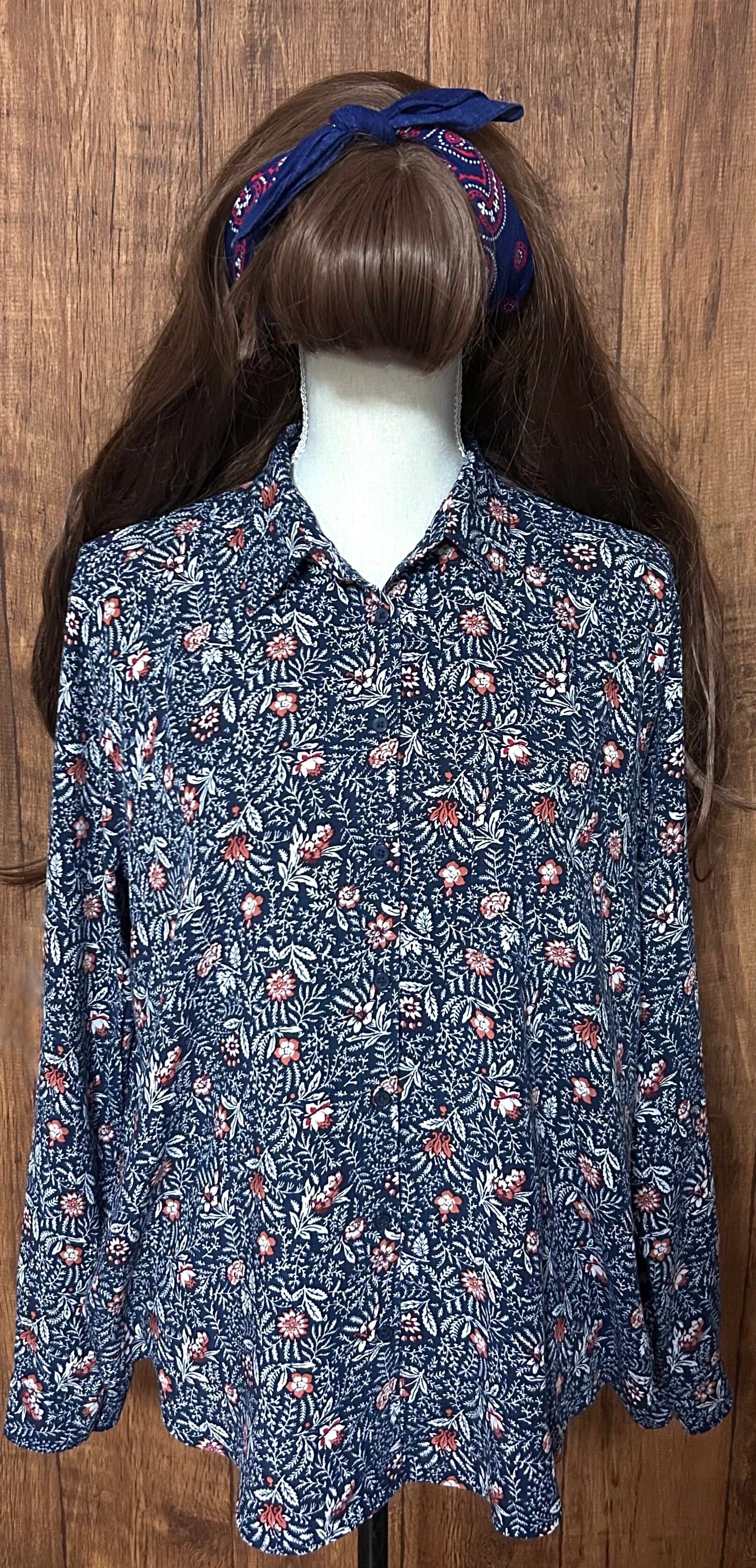 花柄 総柄 シャツ 長袖 胸ポケット 紺 ネイビー ボタニカル レトロ クラシカル カントリー おしゃれ かわいい 個性的 ヴィンテージ used vintage 古着/club723 クラブ723(N775)