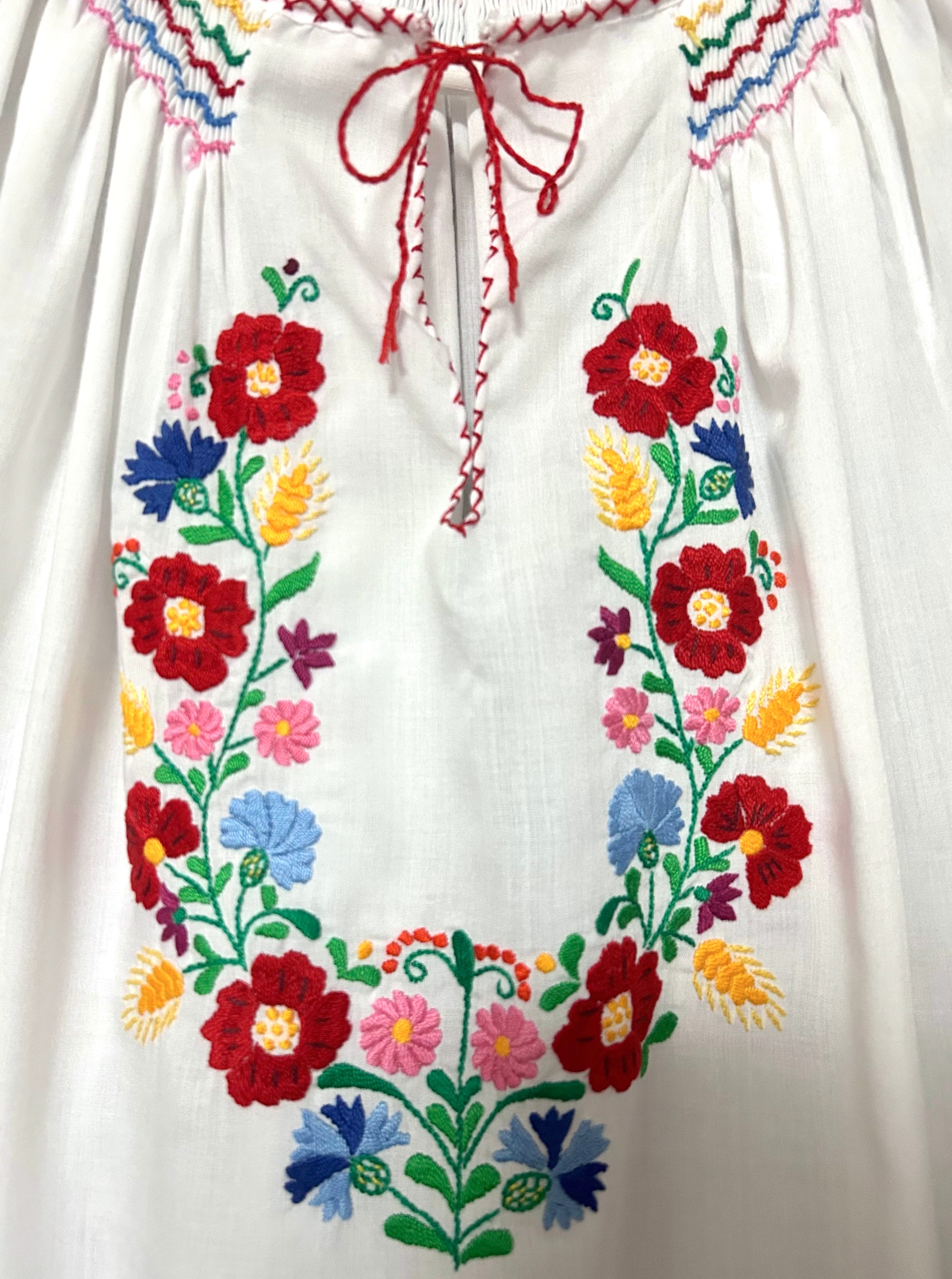 カロチャ刺繍と呼ばれる刺繍が施されたブラウス。