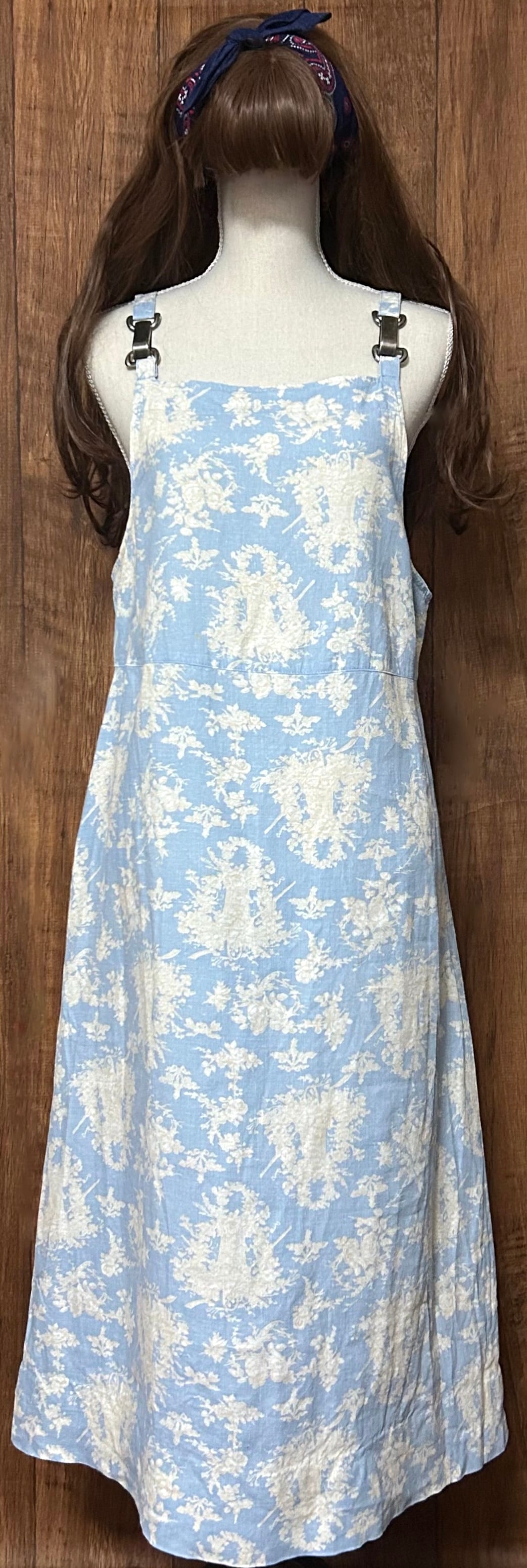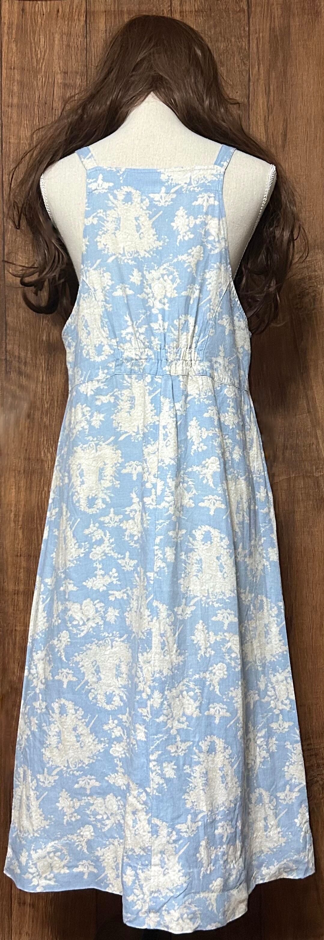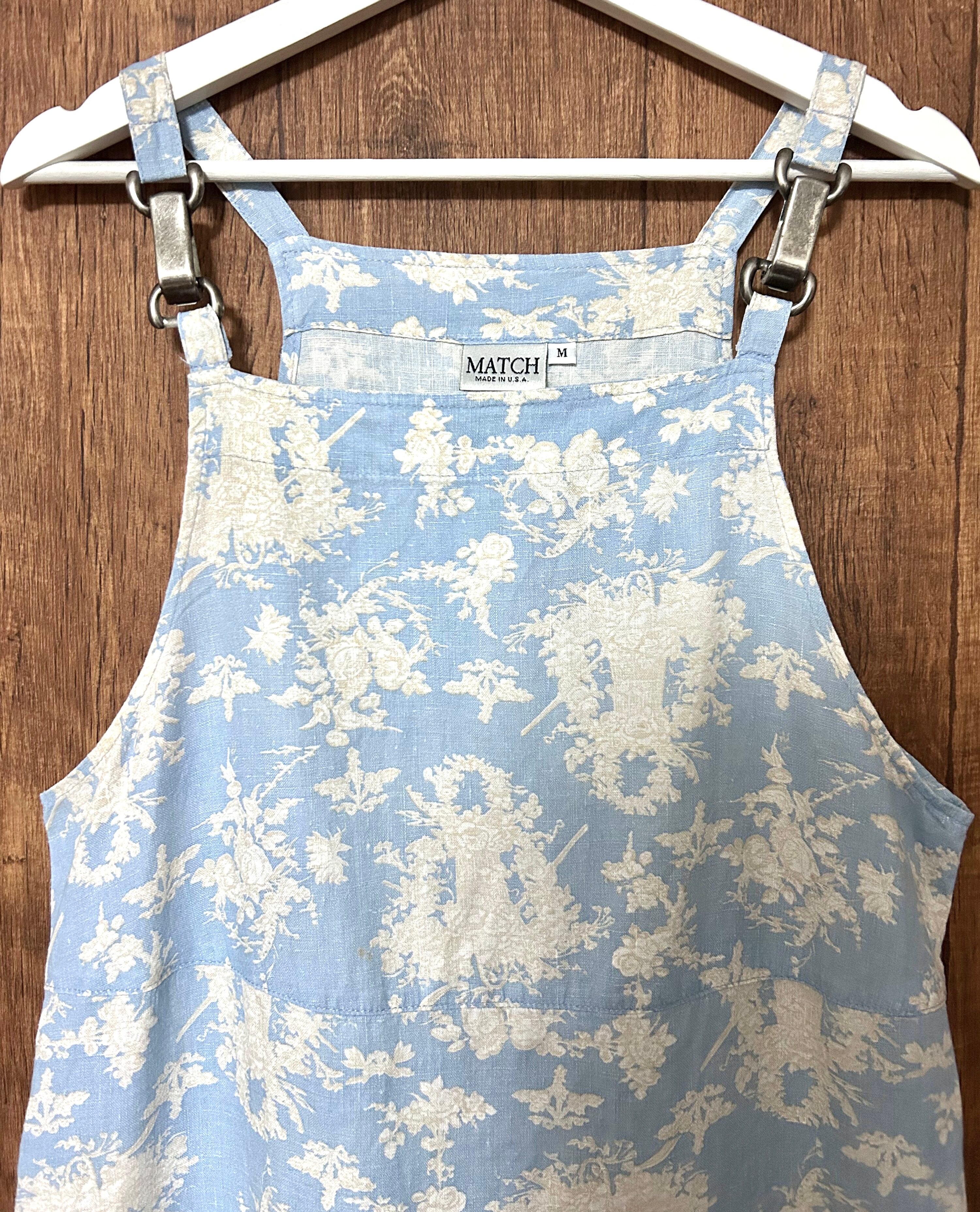 ヴィンテージ リネン ロング ワンピース ジャンパースカート 花 風景 カントリー レトロ おしゃれ かわいい 個性的 USA vintage used 古着/club723 クラブ723(N781)