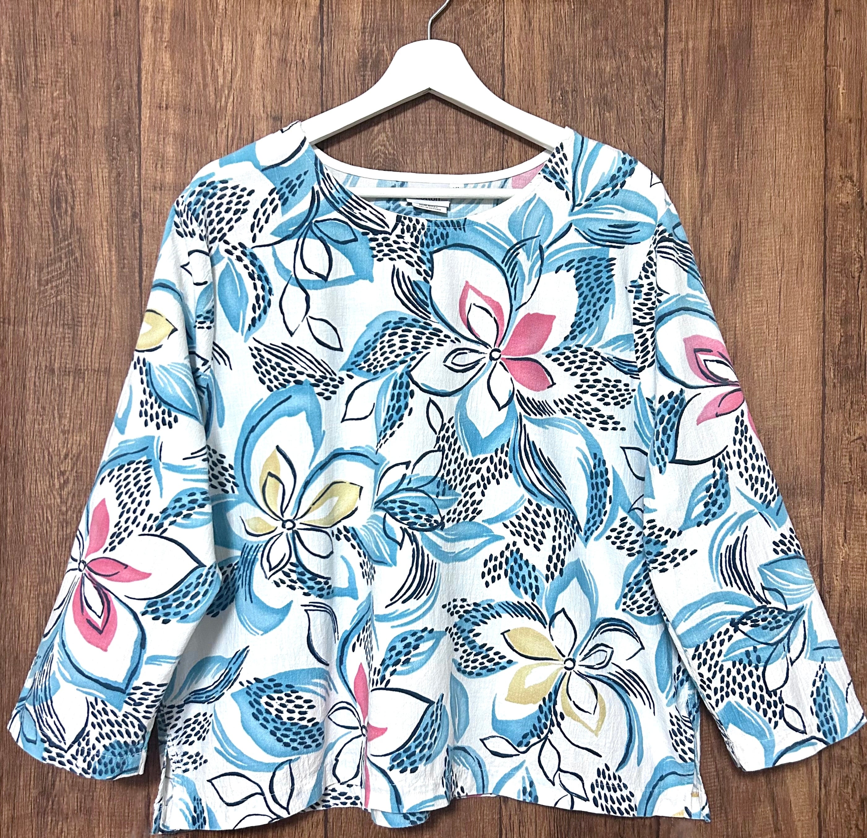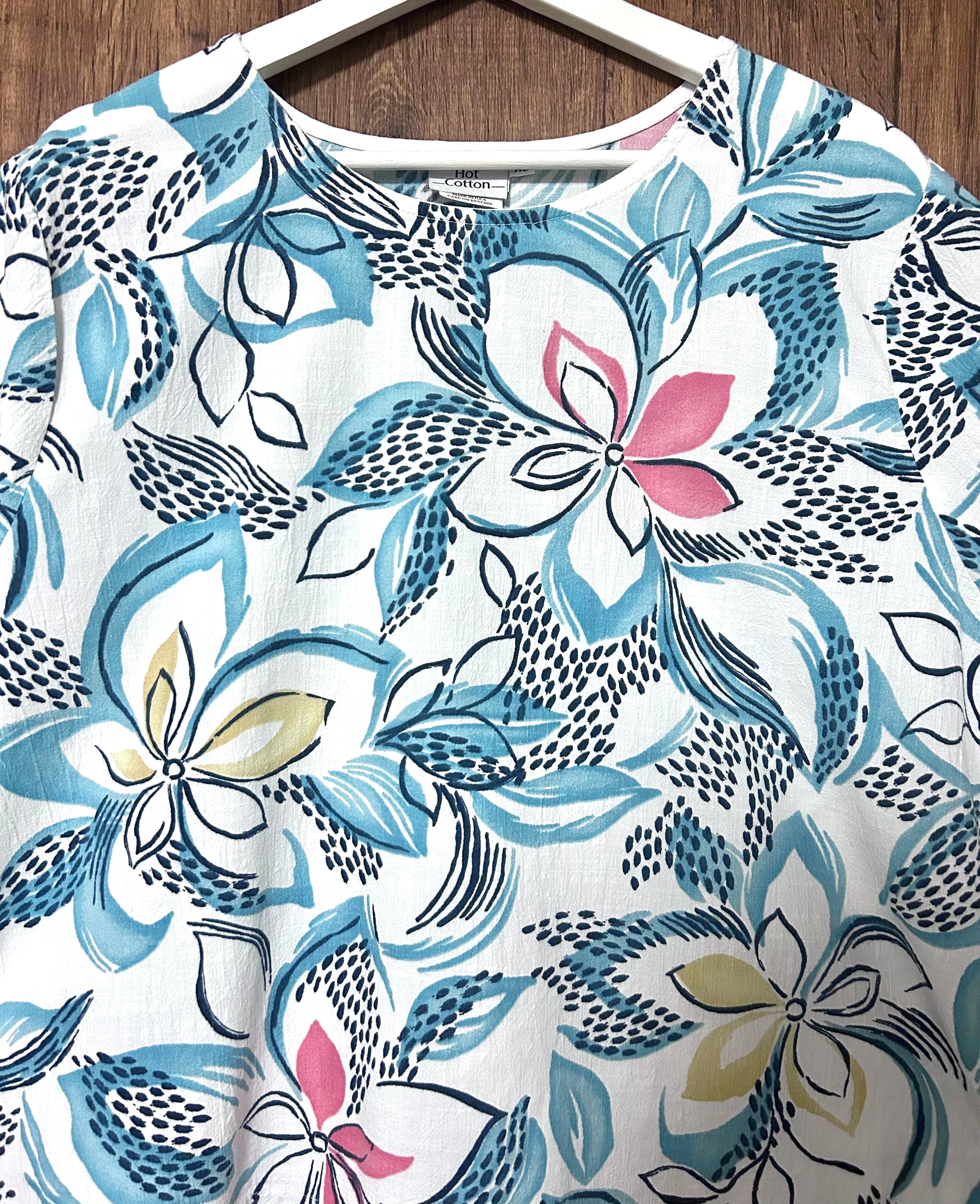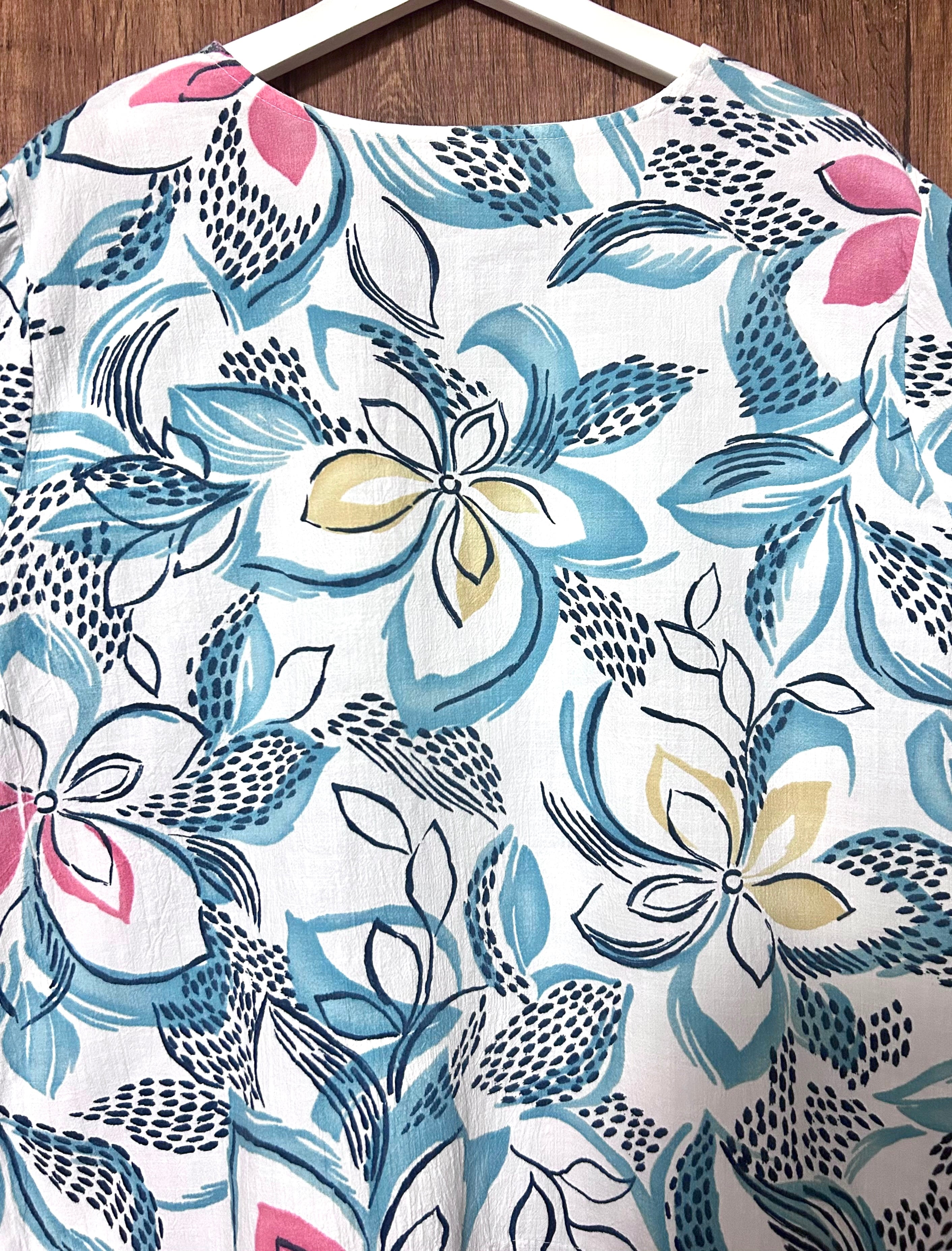 花柄 トップス チュニック 七分袖 七分 ヴィンテージ レトロ カラフル おしゃれ かわいい 個性的 USA used vintage 古着/club723 クラブ723(N785)