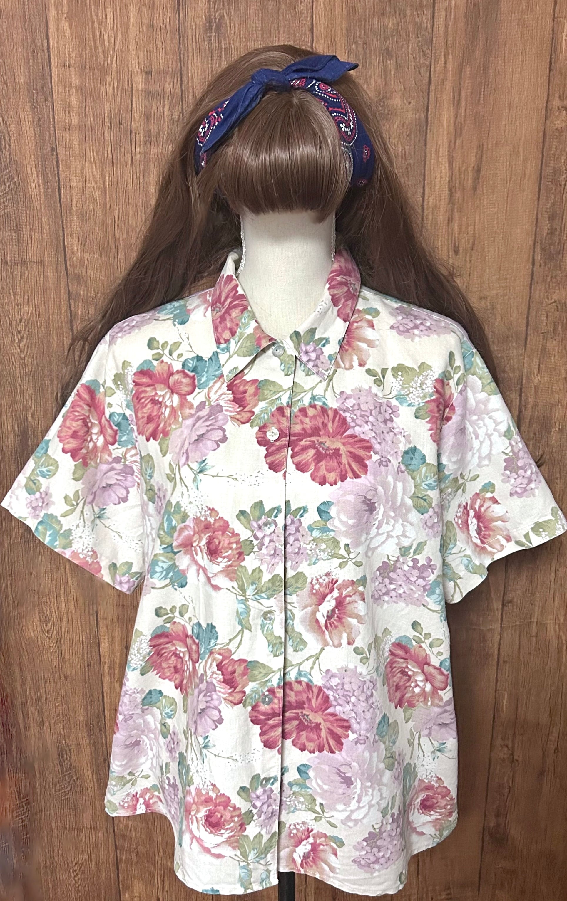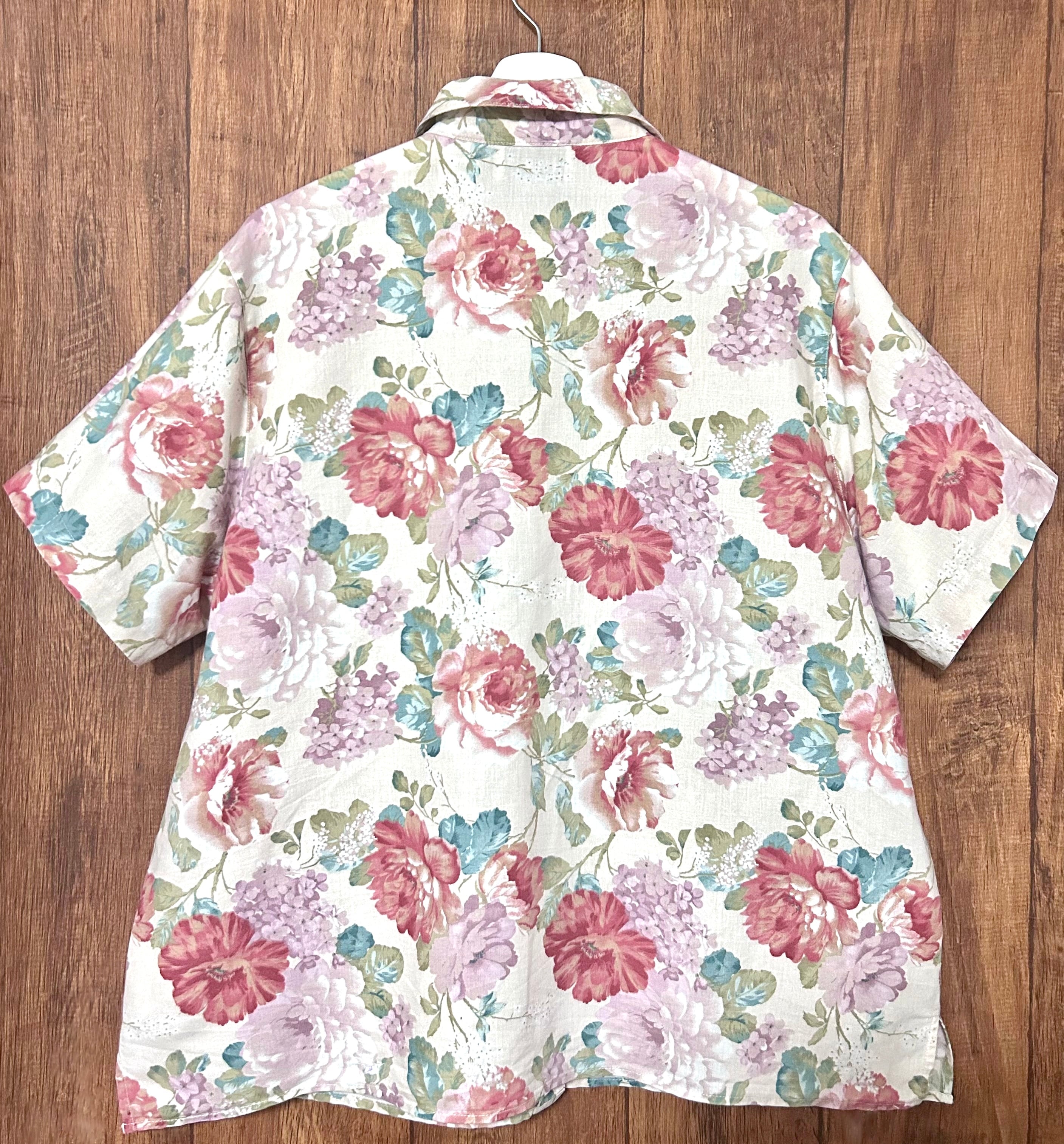 花柄 シャツ 半袖 カラフル レトロ カントリー ガーリー 個性的 おしゃれ かわいい USA ヴィンテージ used vintage 古着/club723 クラブ723(N786)