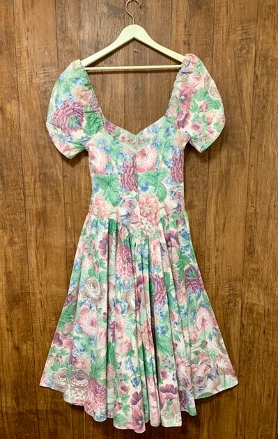レトロ 花柄 ロング USA ワンピース vintage ヴィンテージ 古着 ドレス パーティー 舞台 ダンス 衣装 パーティー カントリー ガーリー/club723 (N36)