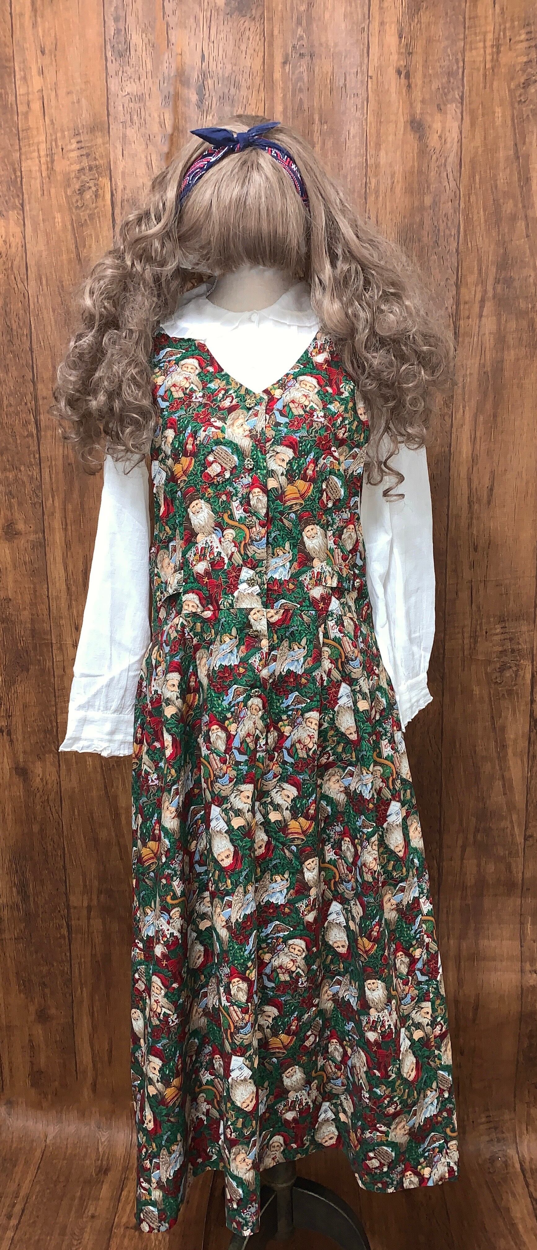 ヴィンテージ ロング ワンピース クリスマス サンタ 総柄 カントリー アンティーク レトロ 袖なし ジャンパースカート vintage USA アメリカ 古着/club723(N128)