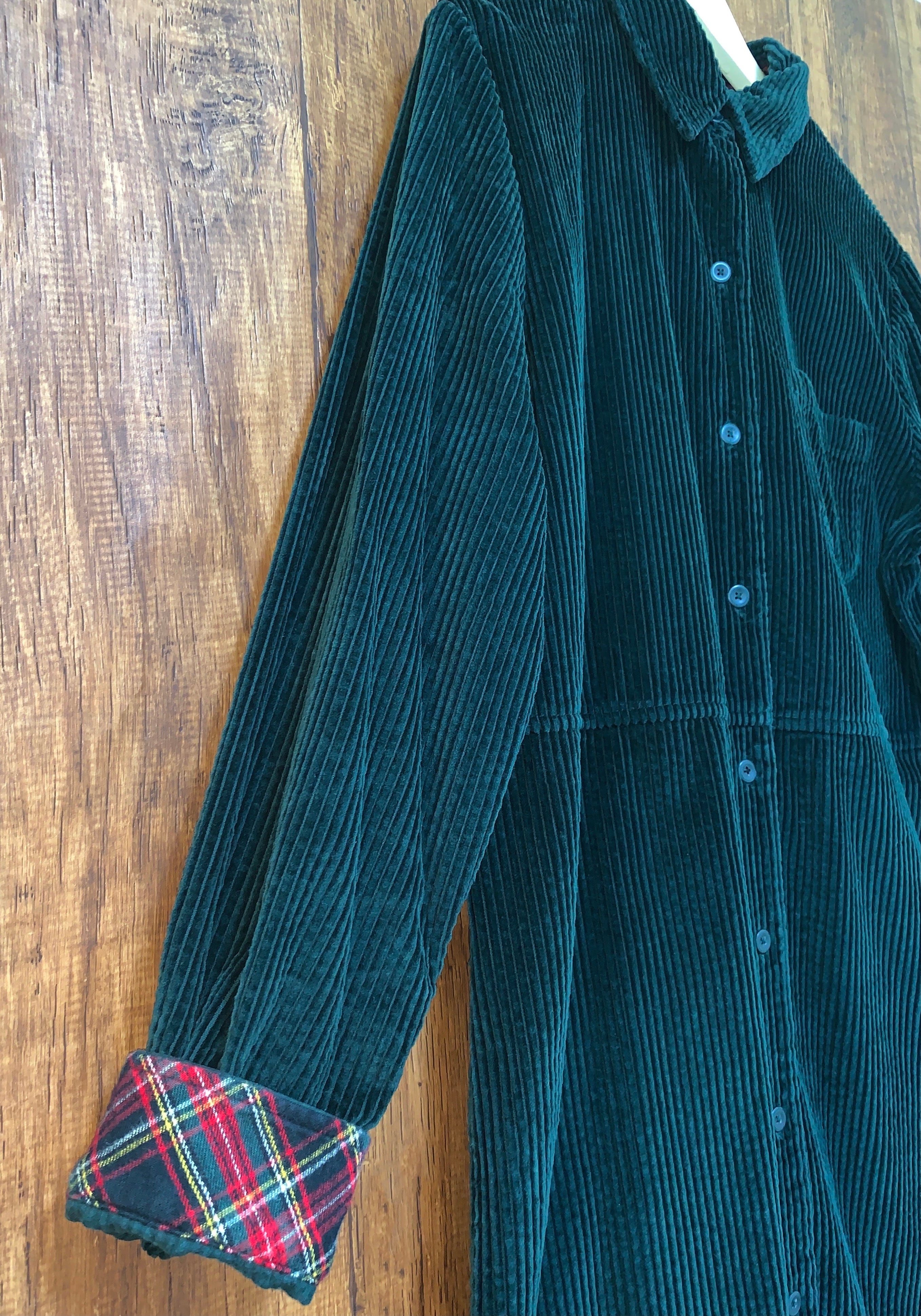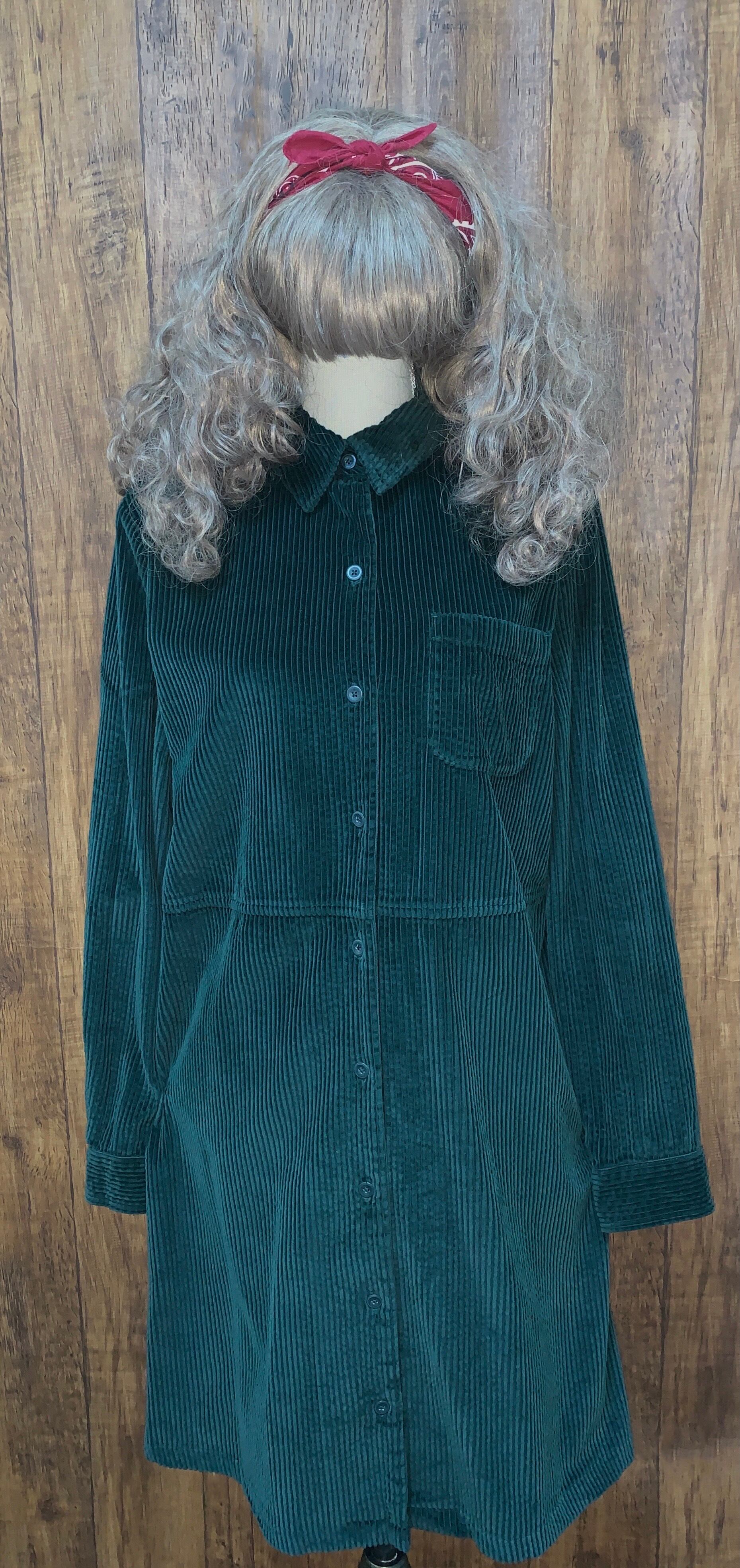 TALBOTS タルボット コーデュロイ ワンピース グリーン 緑 無地 チェック 長袖 ヴィンテージ ビンテージ アメリカ USA 古着 vintage used アメリカン カントリー フォークロア クラシカル レトロ/club723(N192)