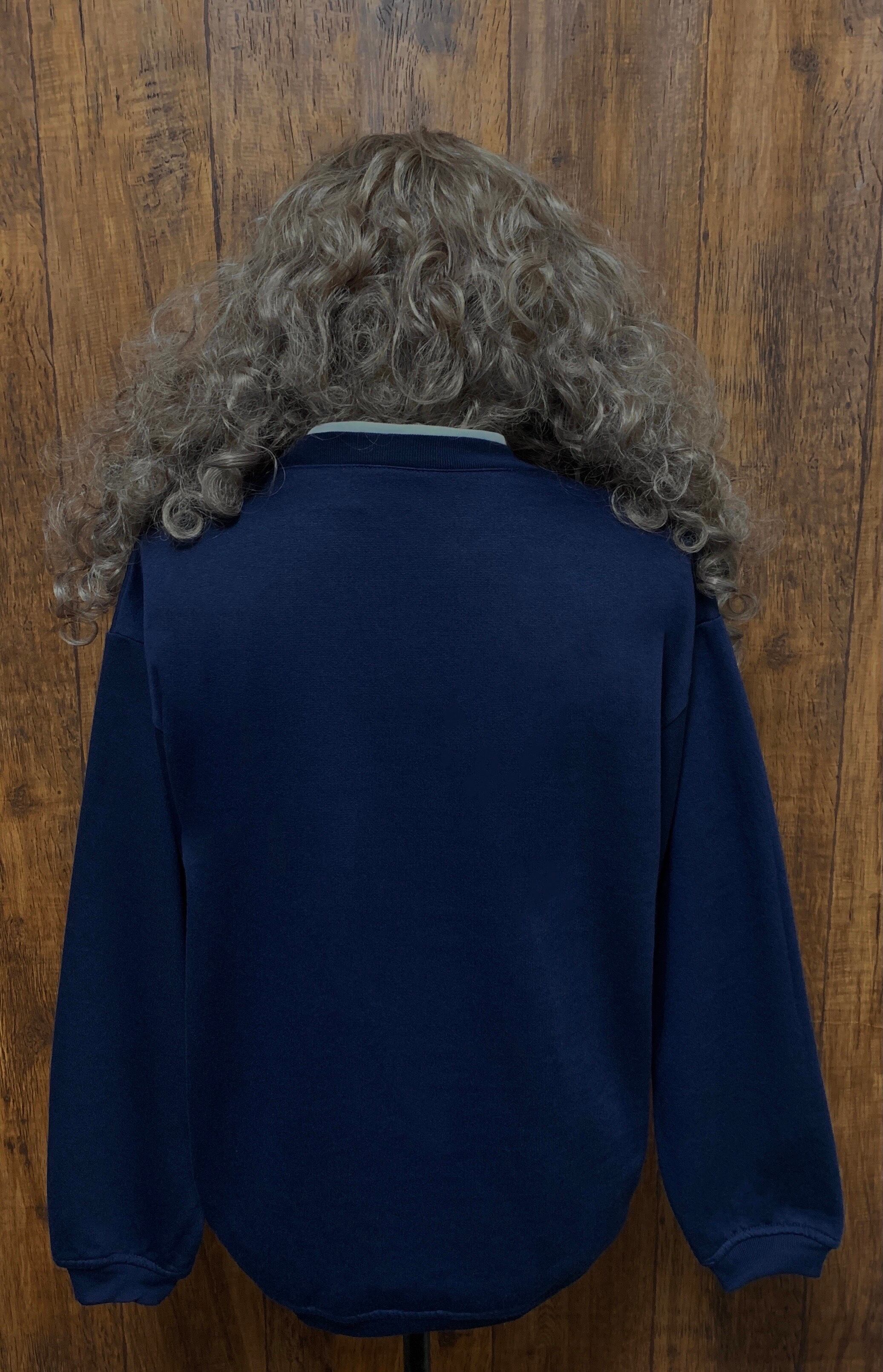 花 プリント スウェット スエット トレーナー 長袖 二重襟 紺 ネイビー フラワー レトロ アメリカン カントリー ガーリー USA ビンテージ ヴィンテージ ユーズド used vintage 古着/ club723(N224)