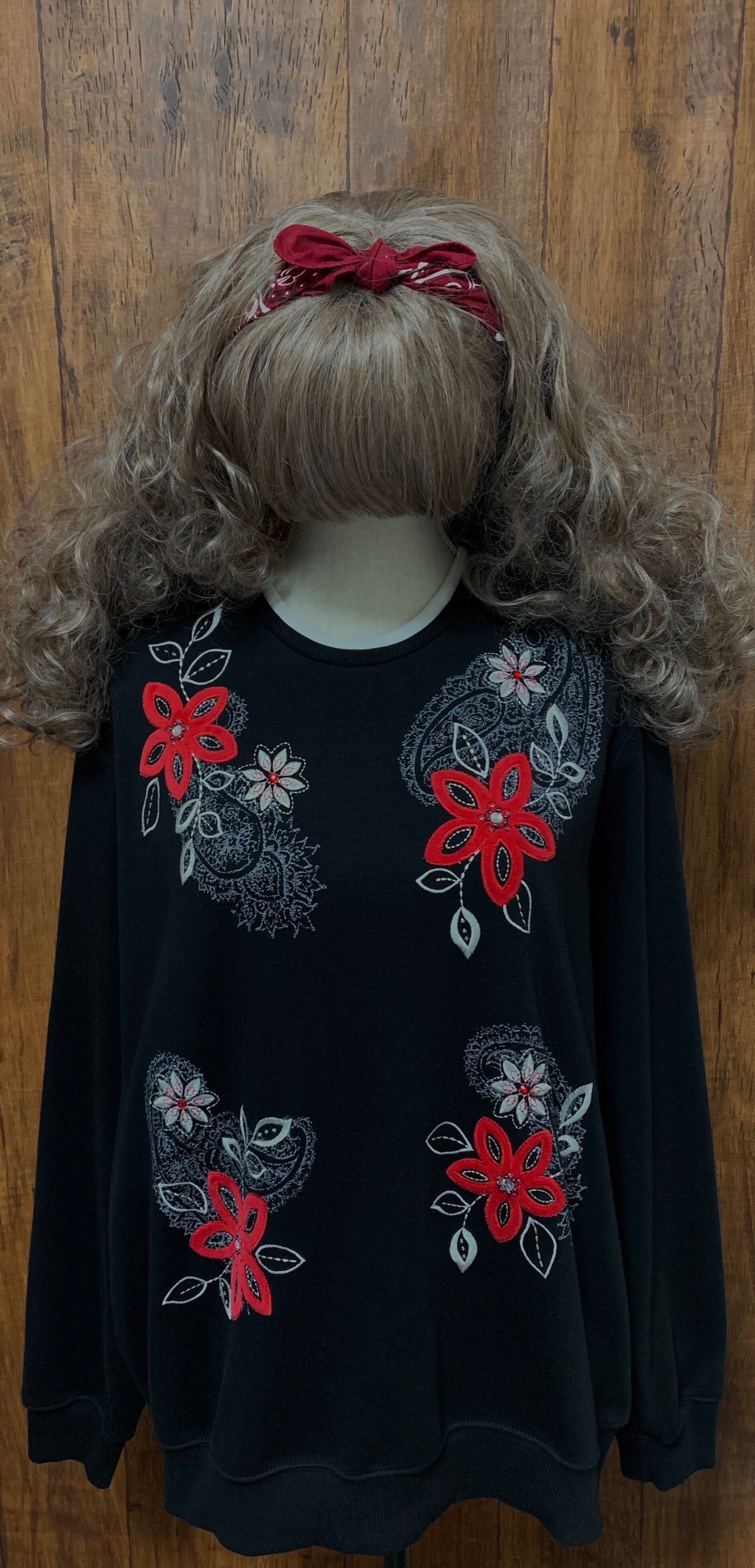 黒 ブラック スウェット スエット トレーナー 花 刺繍 装飾 ペイズリー 長袖 レトロ アメリカン カントリー 個性的 おしゃれ USA ヴィンテージ vintage used 古着/club723(N274)