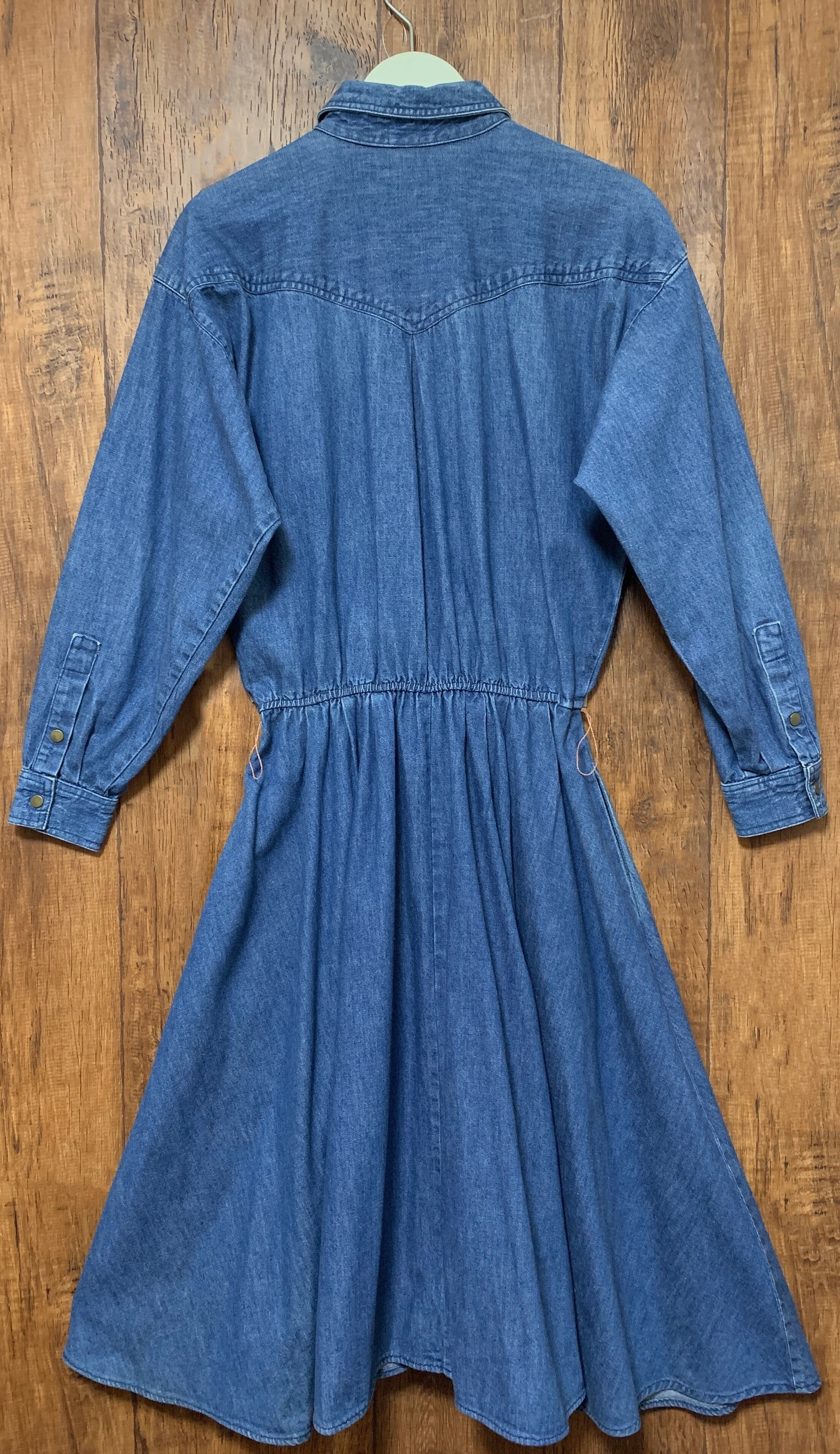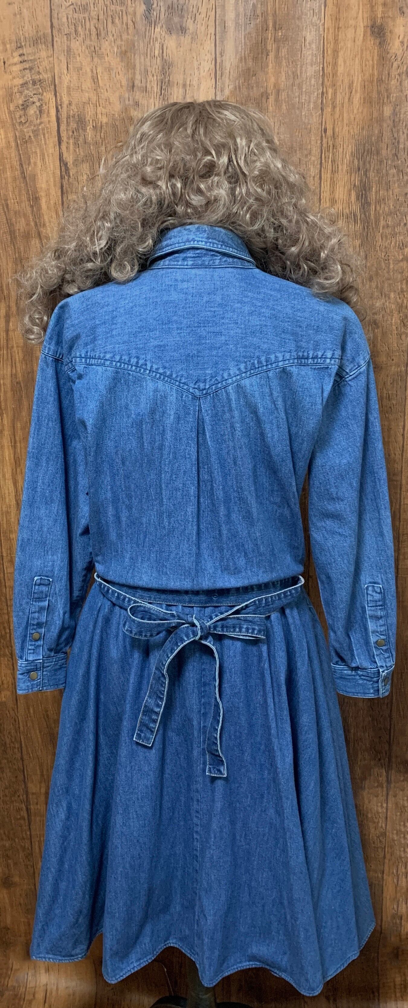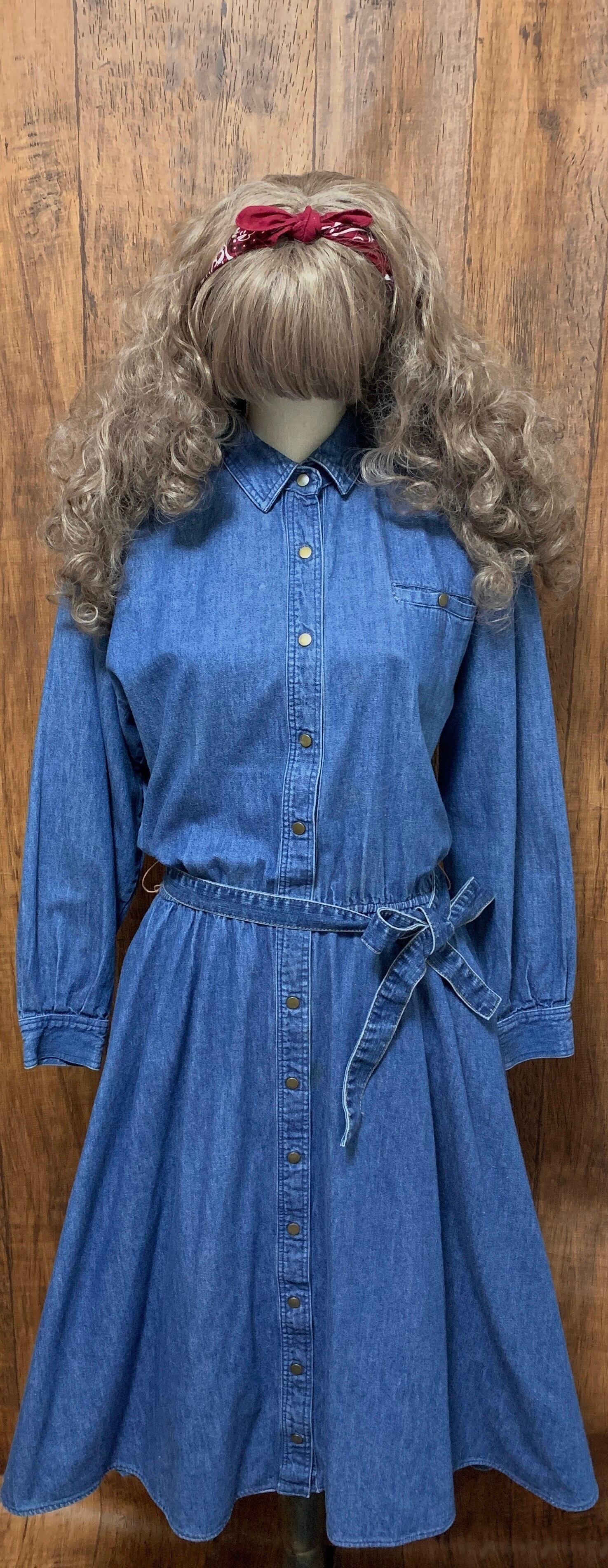 デニム ロング ワンピース ベルト付き ウエスタン アメリカン カジュアル レトロ カントリー フォークロア USA ヴィンテージ ビンテージ vintage used 古着/club723(N283)