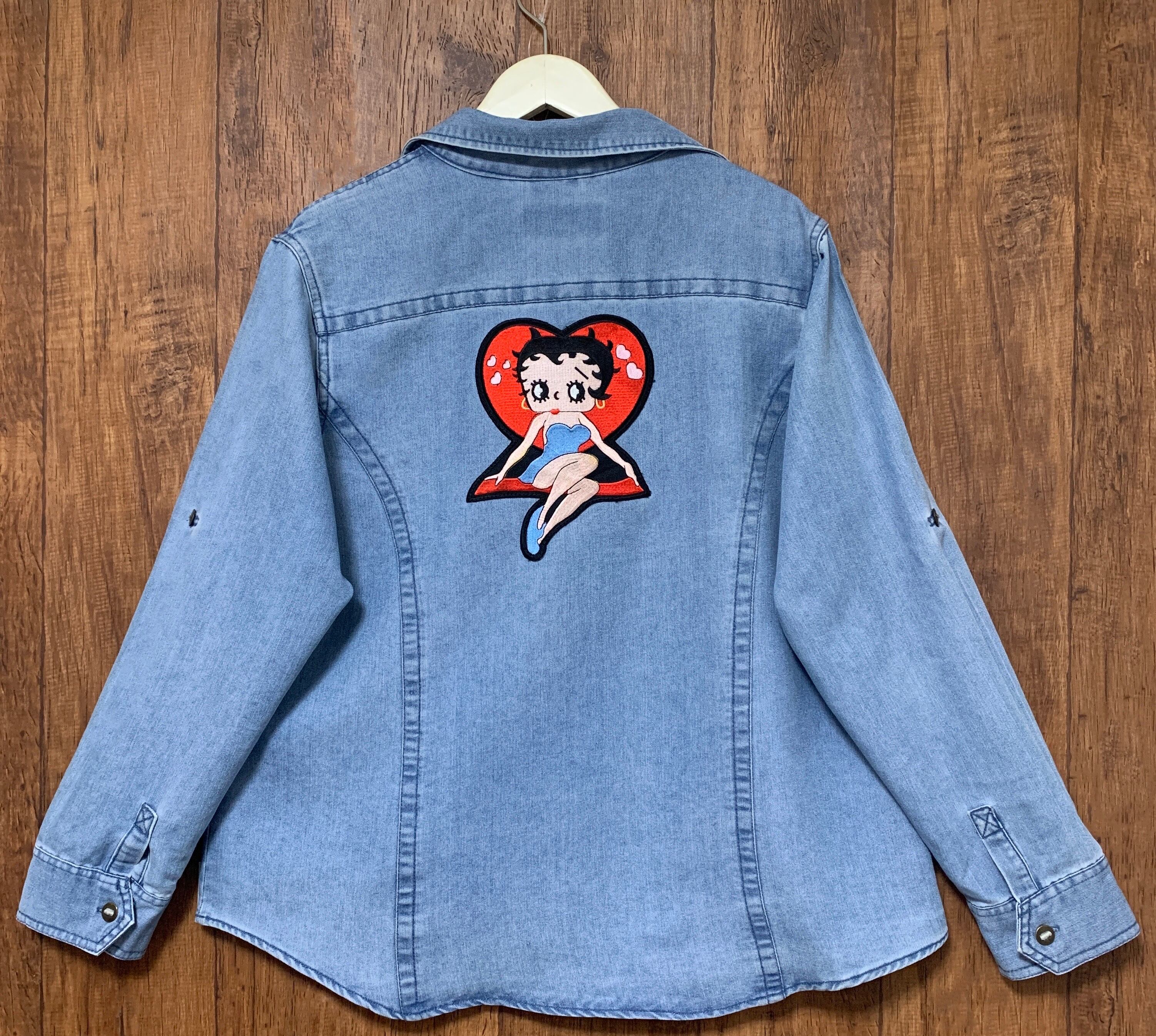 ベティ Bettyboop デニム シャツ 長袖 半袖 アメリカン カジュアル レトロ ロック ロカビリー USA ヴィンテージ vintage used 古着/club723(N288)
