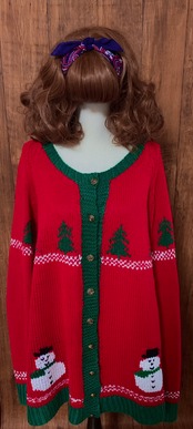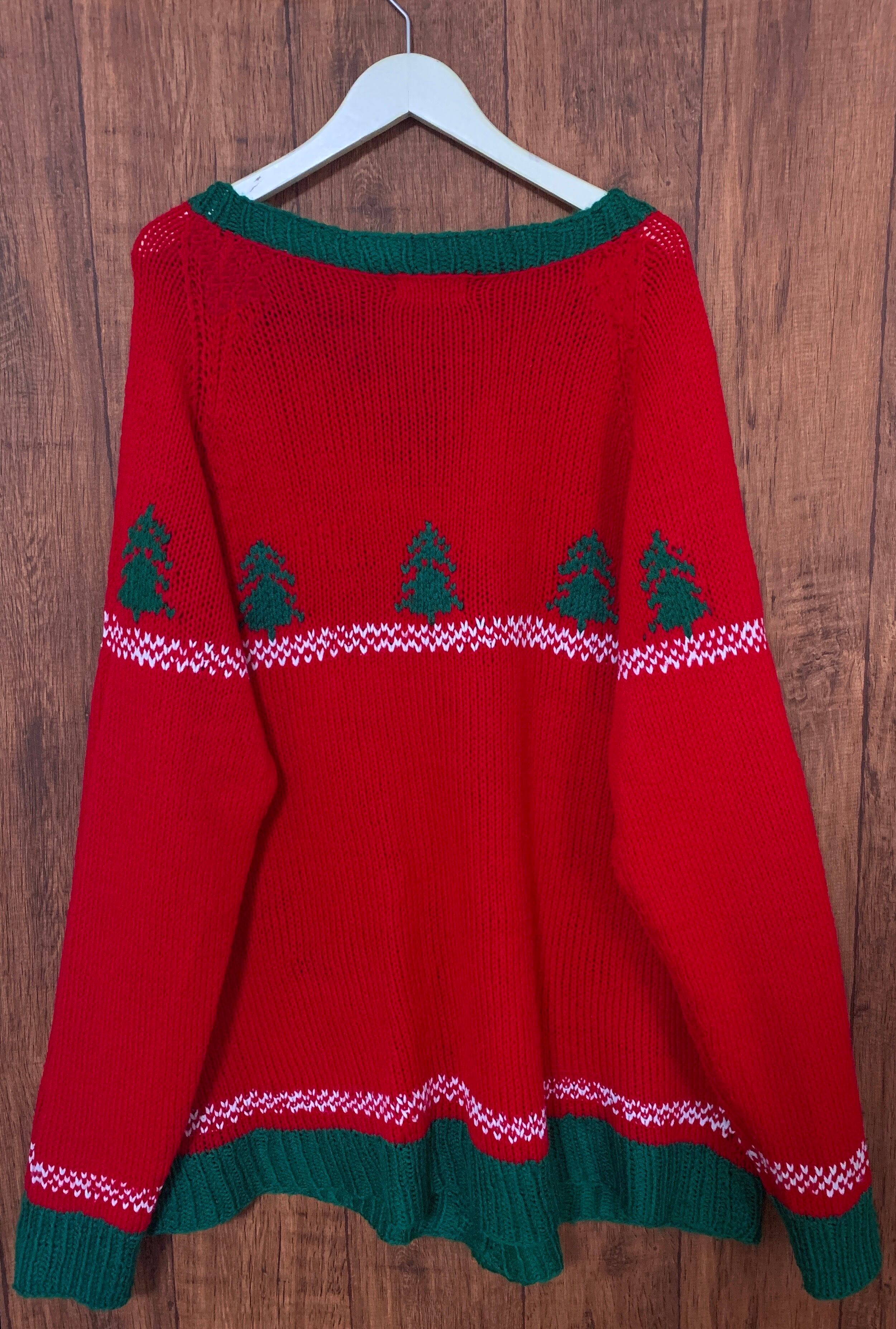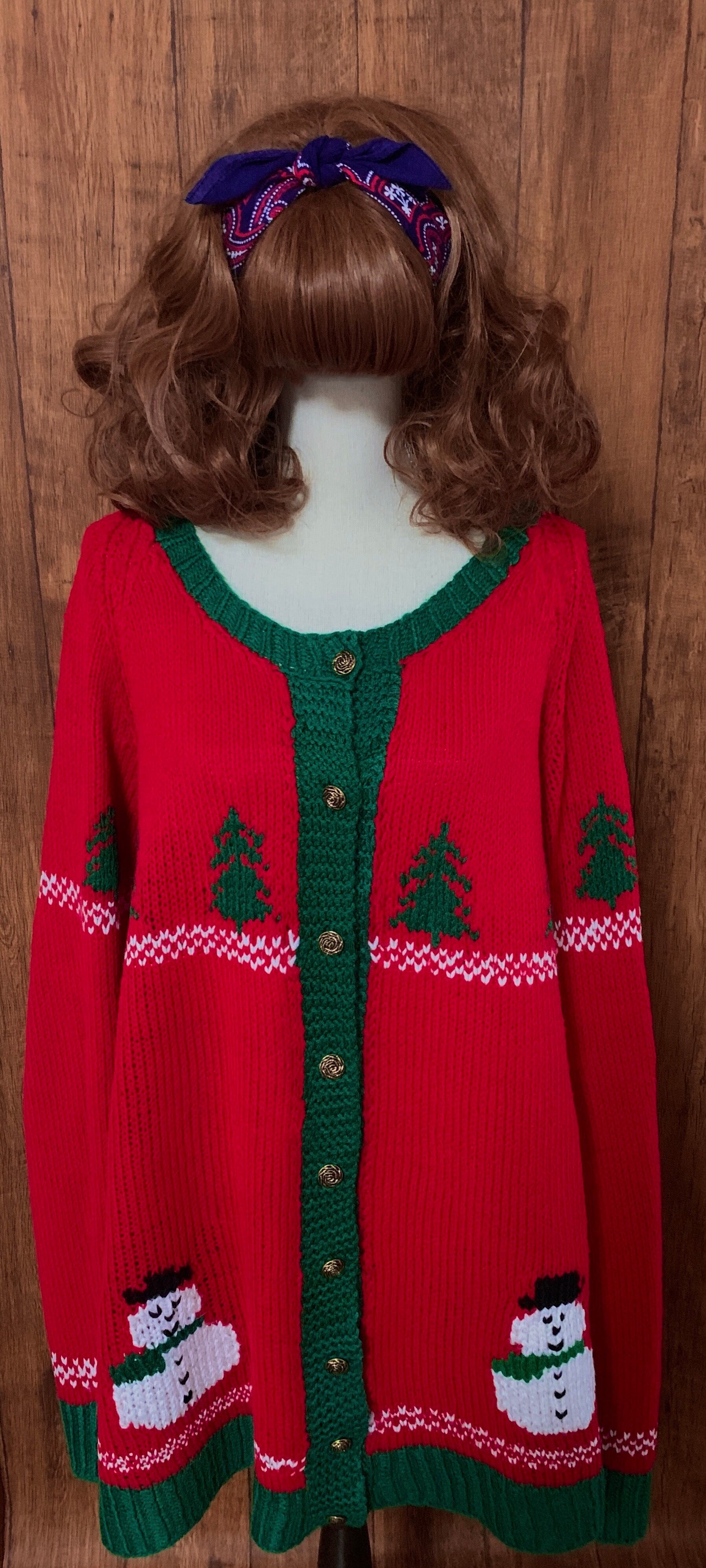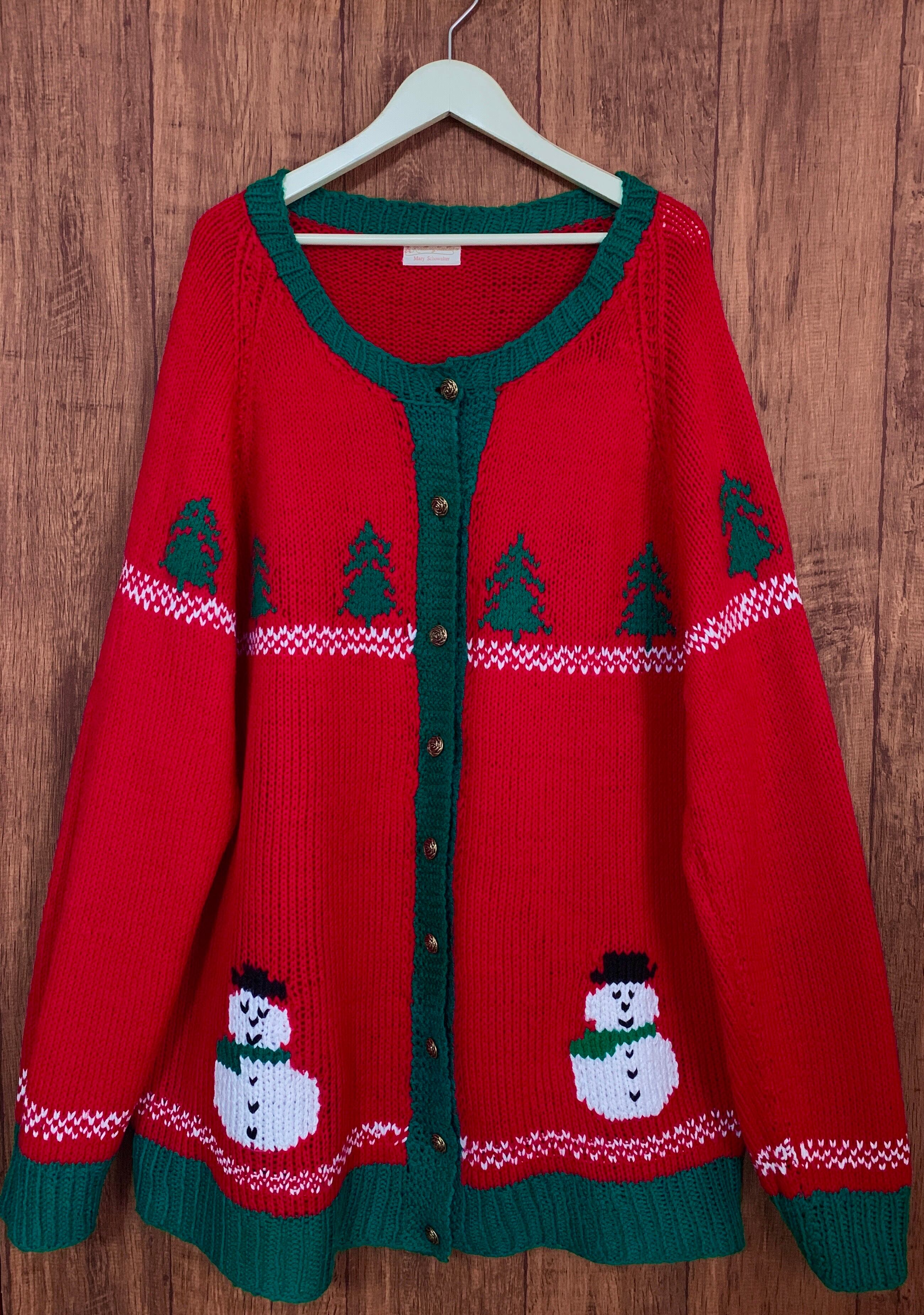 クリスマス アグリー セーター ニット カーディガン カーデ ポンチョ 大きめ 大きい 赤 緑 雪だるま スノーマン ツリー ヴィンテージ カントリー レトロ 個性的 かわいい vintage used 古着/club723(N377)