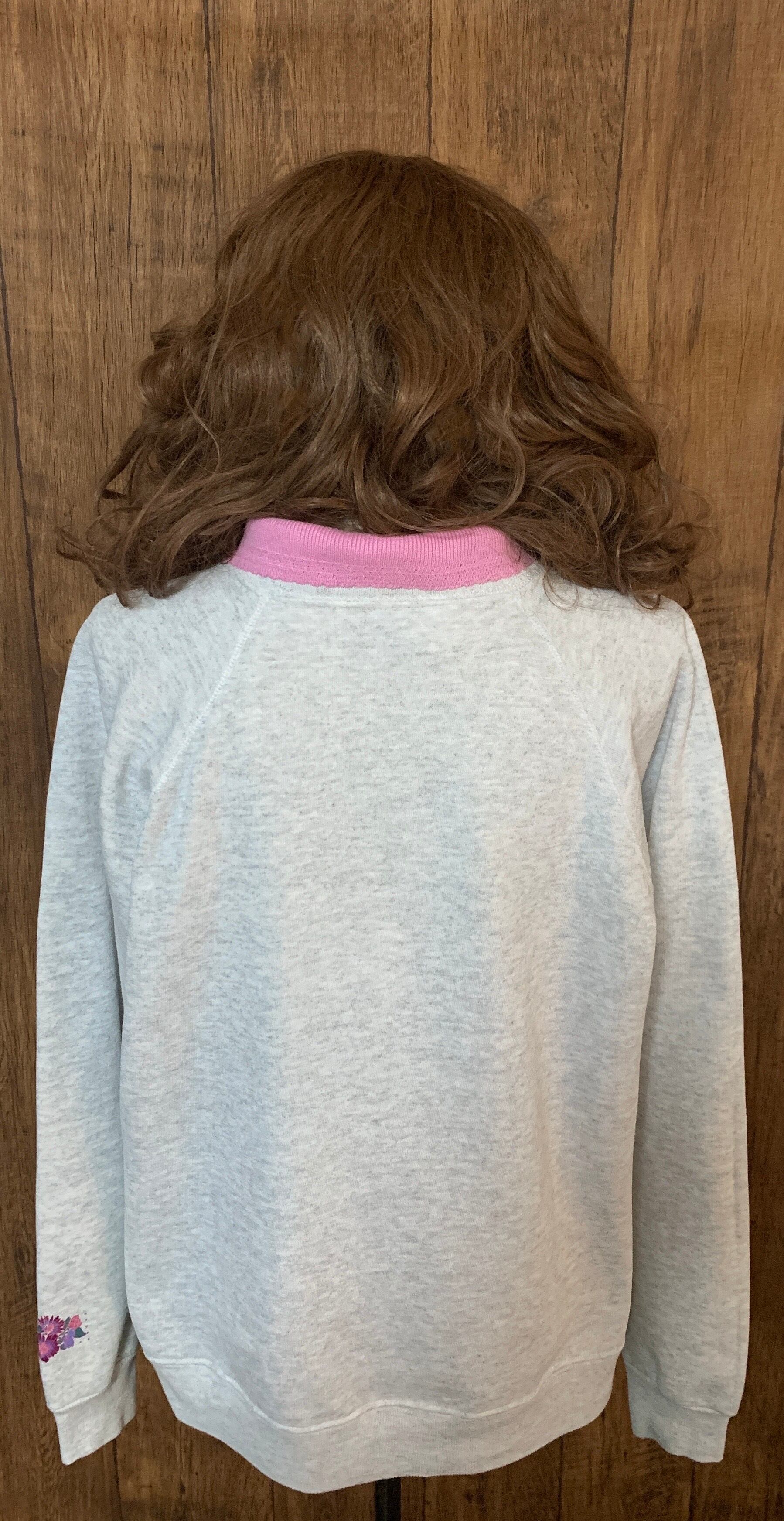 花 スウェット スエット トレーナー 薄グレー 霜降り ピンク 襟付き レトロ ガーリー カントリー チロリアン 個性的 おしゃれ USA ヴィンテージ vintage used 古着/club723(N394)