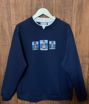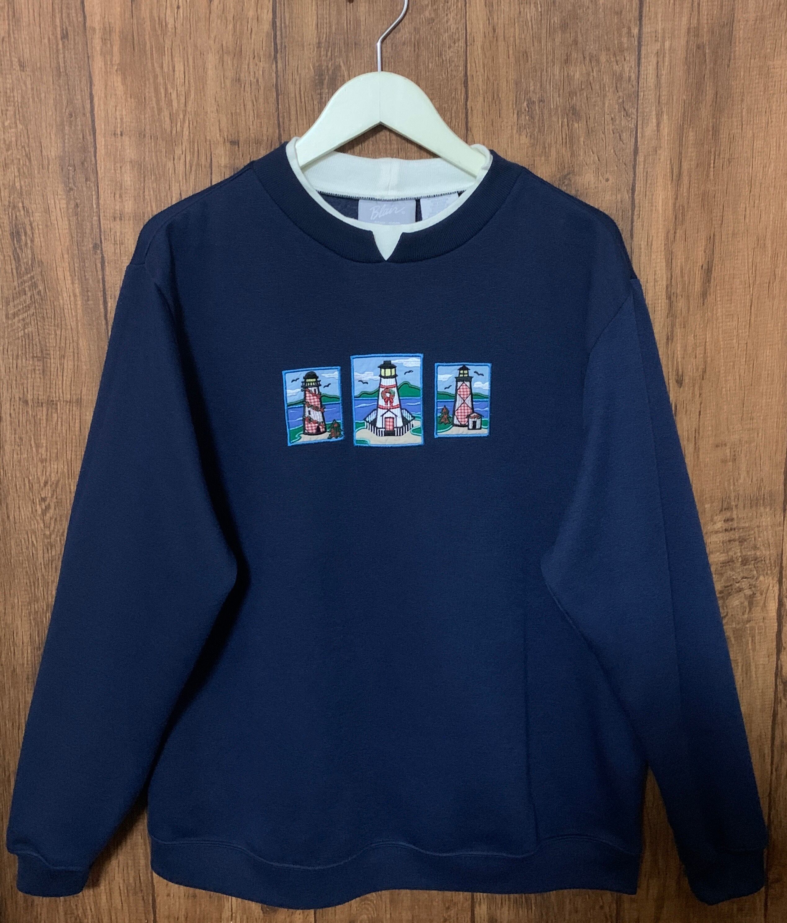刺繍 スウェット スエット トレーナー 紺 ネイビー 長袖 二重襟 灯台 アメリカン レトロ カントリー 個性的 おしゃれ USA ヴィンテージ vintage used 古着/club723(N401)