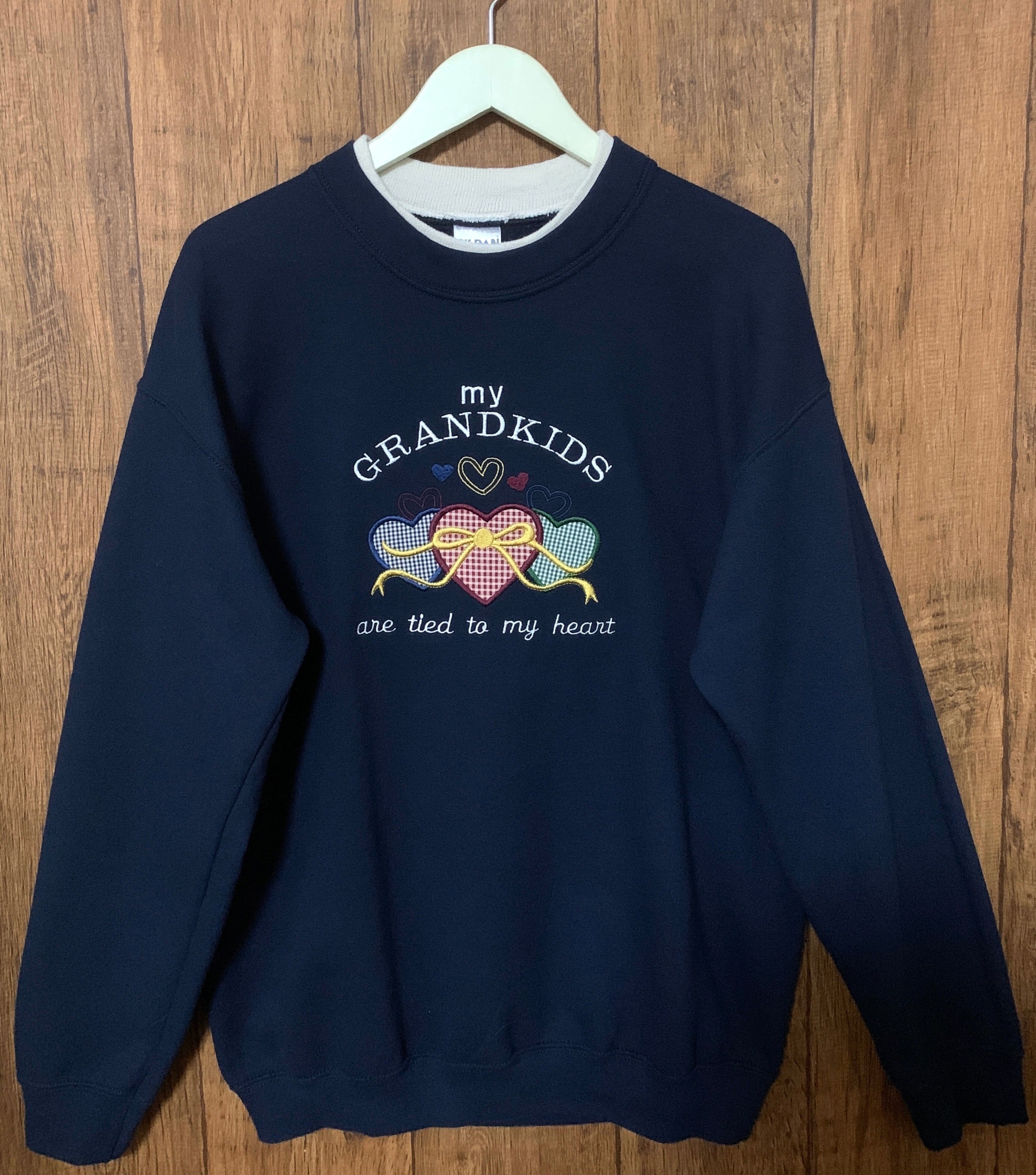 ネイビー 紺 スウェット スエット トレーナー ハート 刺繍 装飾 ハート 二重襟 おしゃれ 個性的 レトロ アメリカン カントリー USA vintage used 古着/club723(N403)
