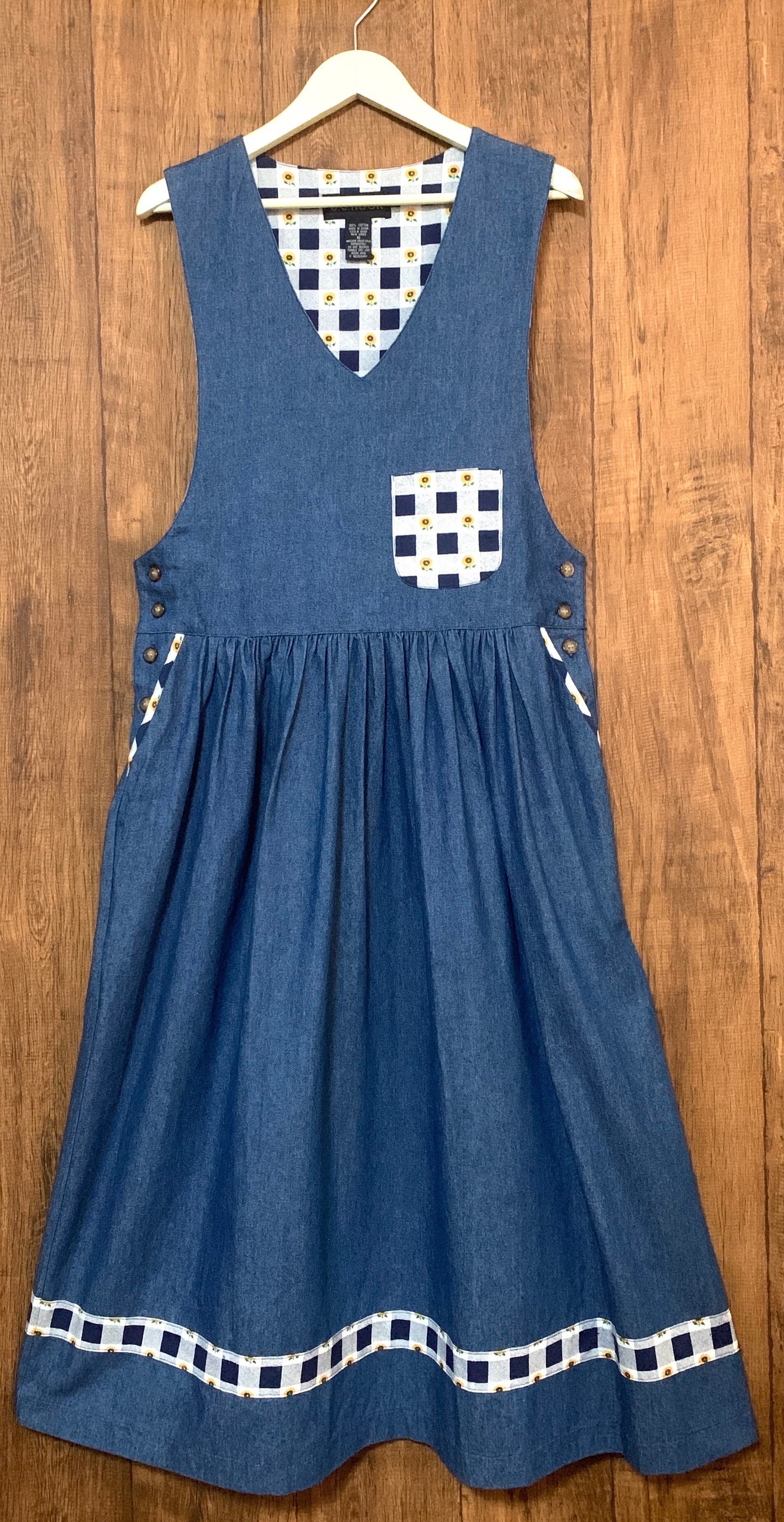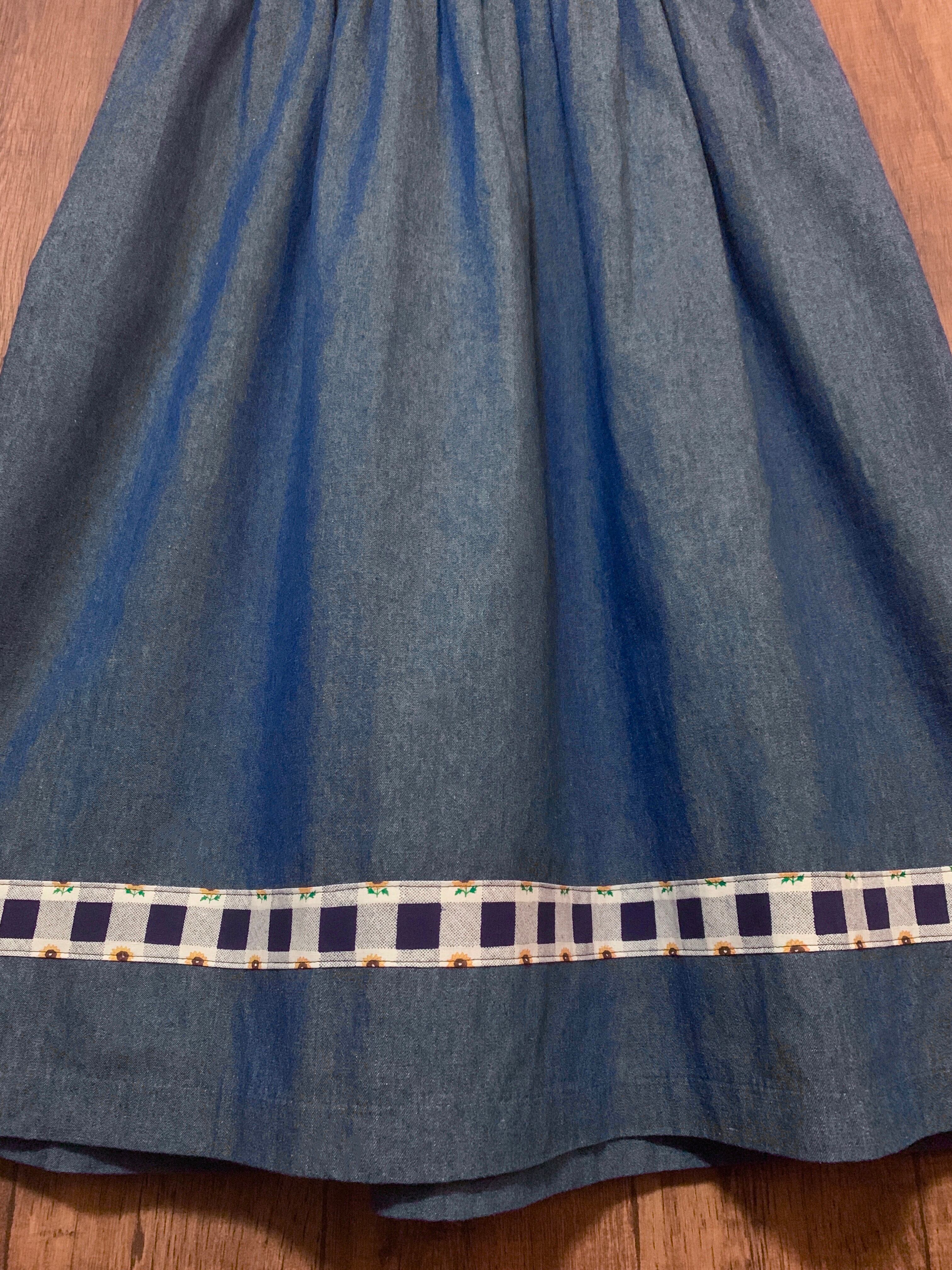 ひまわり デニム ロング ワンピース ジャンパースカート ジャンスカ 花 カントリー アメリカン レトロ フォークロア USA ヴィンテージ vintage used 古着/club723(N411)