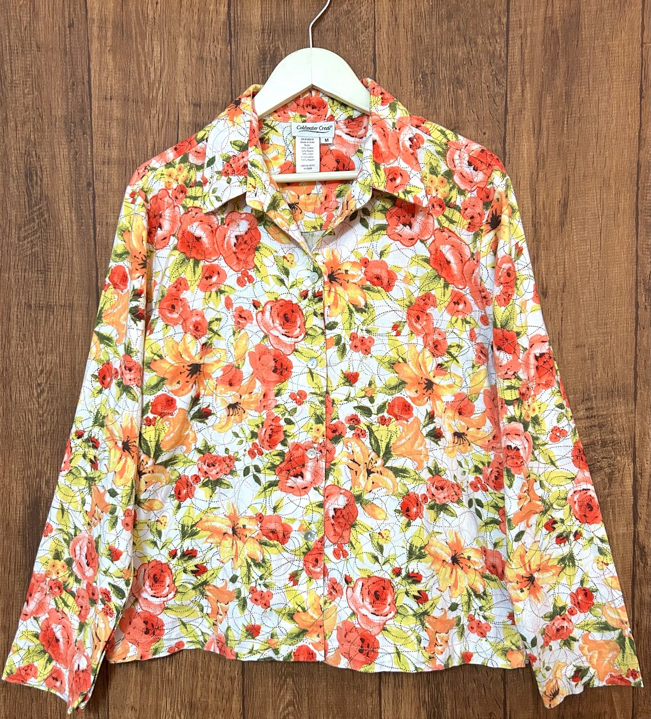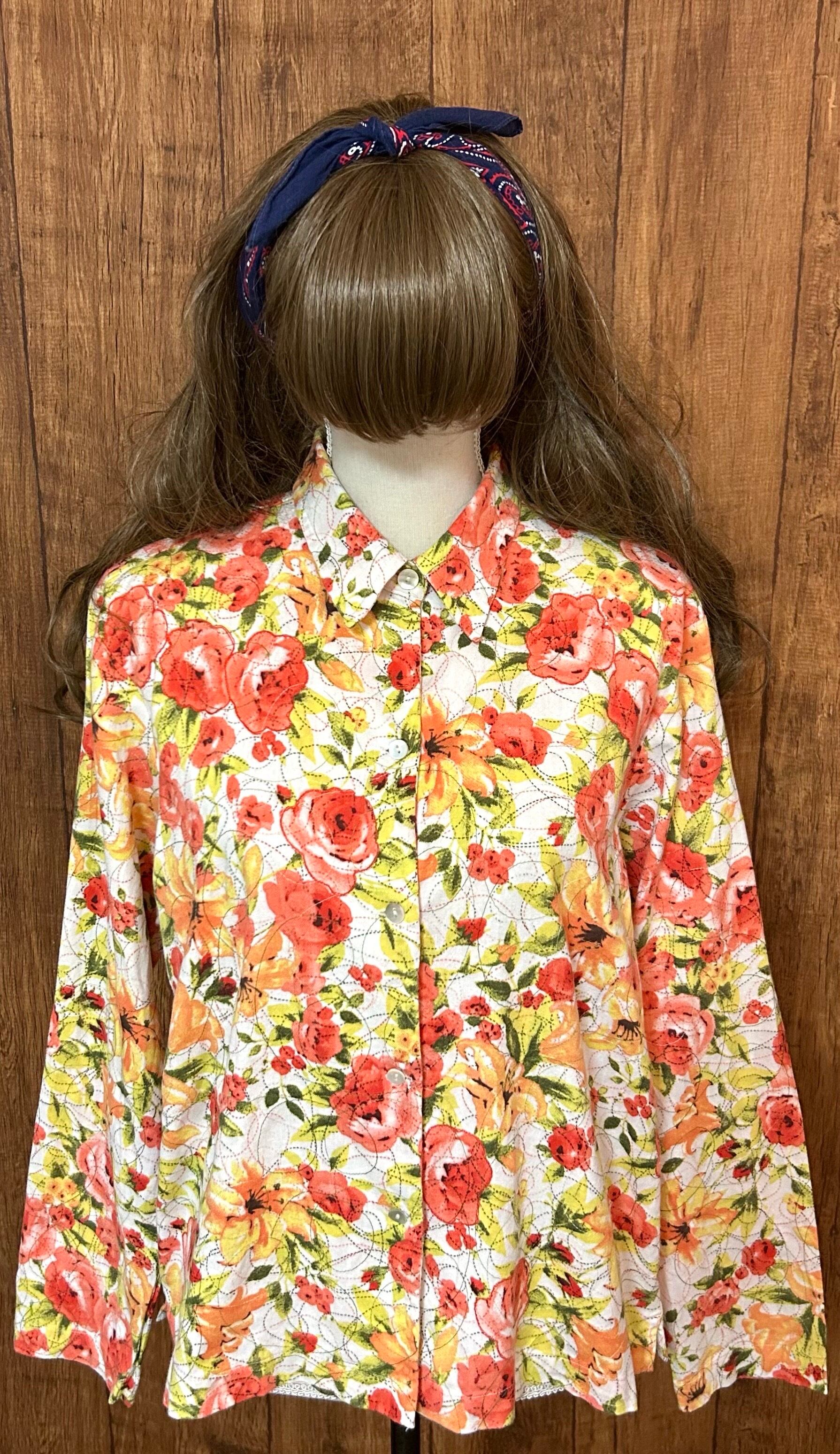 柄 シャツ 長袖 花 バラ フラワー 刺繍 カラフル レトロ カントリー 個性的 おしゃれ かわいい かっこいい ヴィンテージ used vintage 古着/club723(N490)