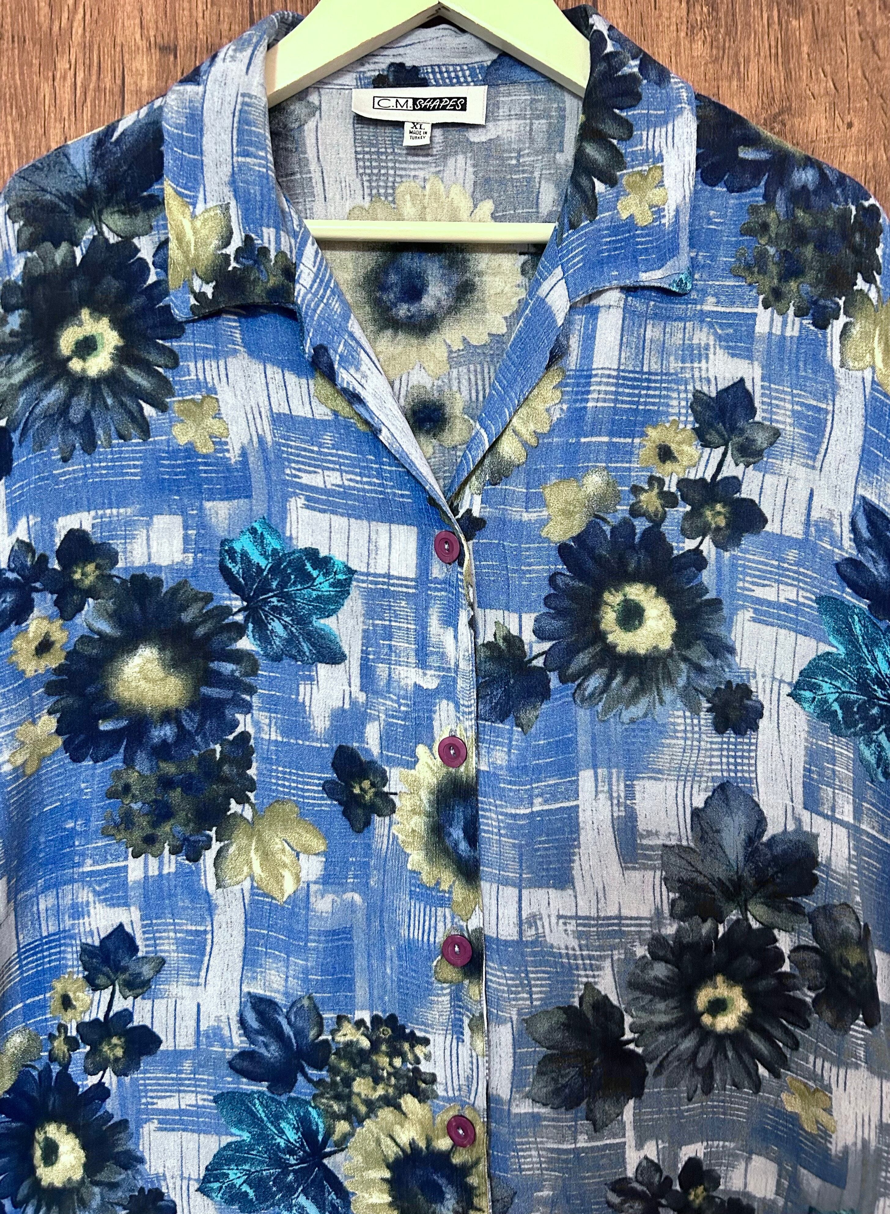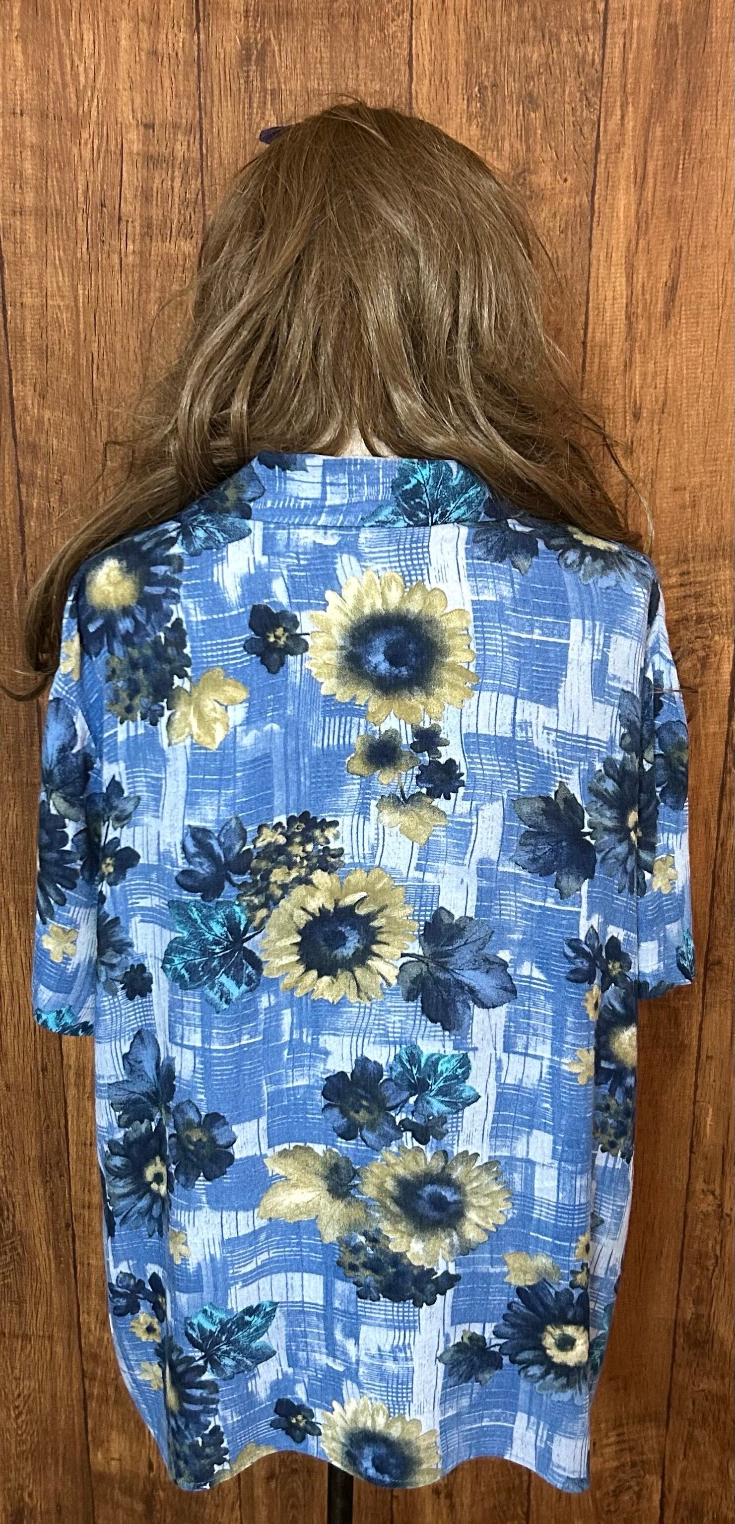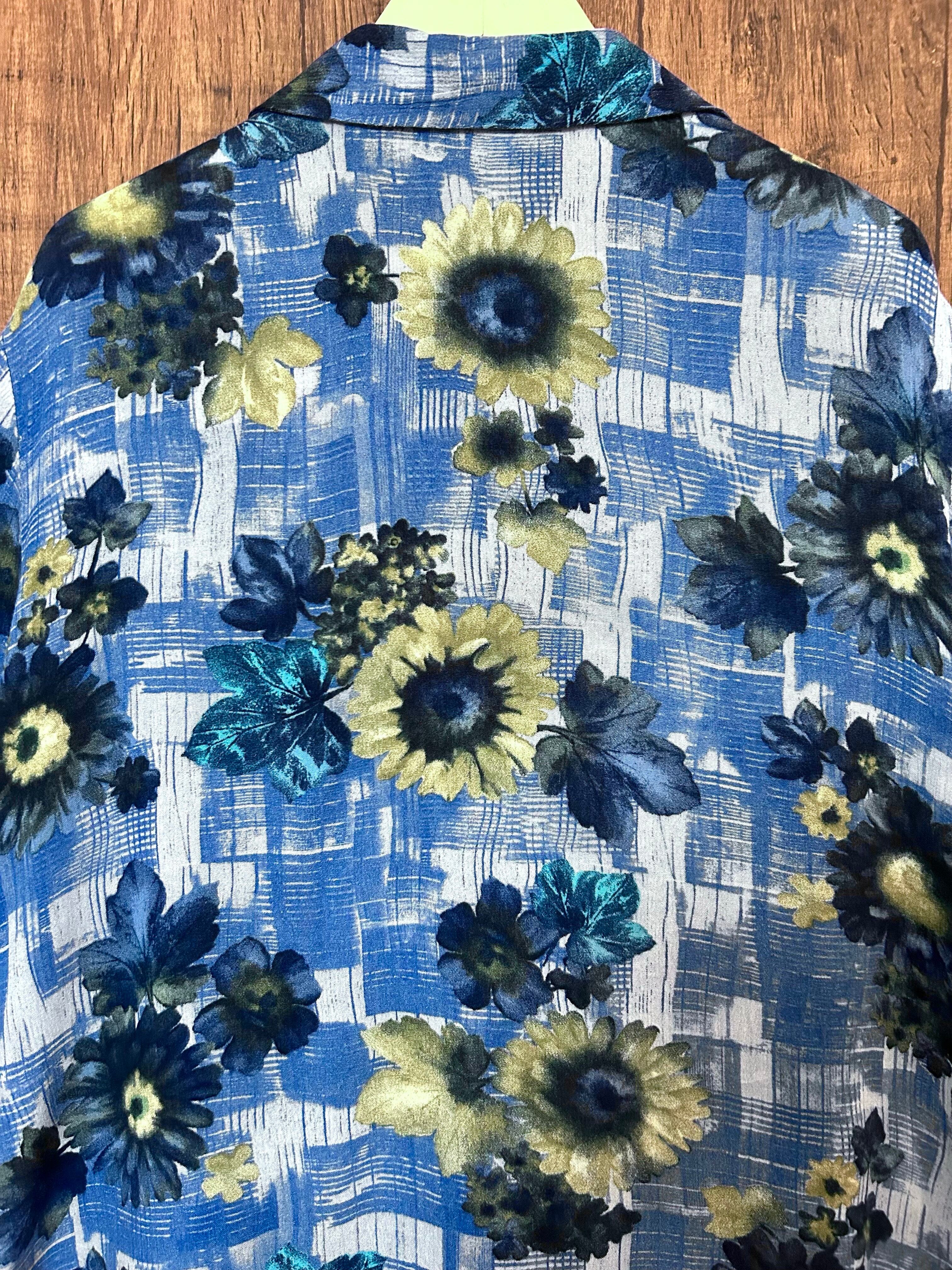 花 柄 シャツ 半袖 青 水色 ブルー ゆったり 大きめ 大きい 涼しい レトロ 個性的 おしゃれ かわいい かっこいい ヴィンテージ used vintage 古着/club723(N494)