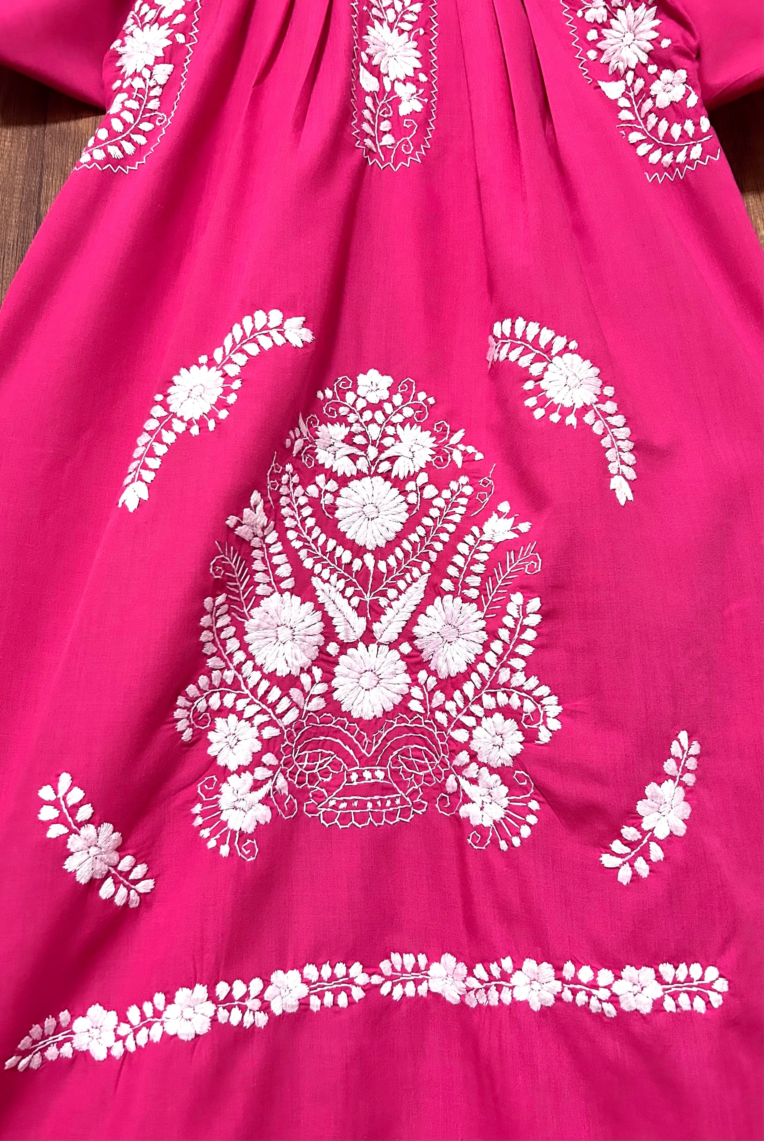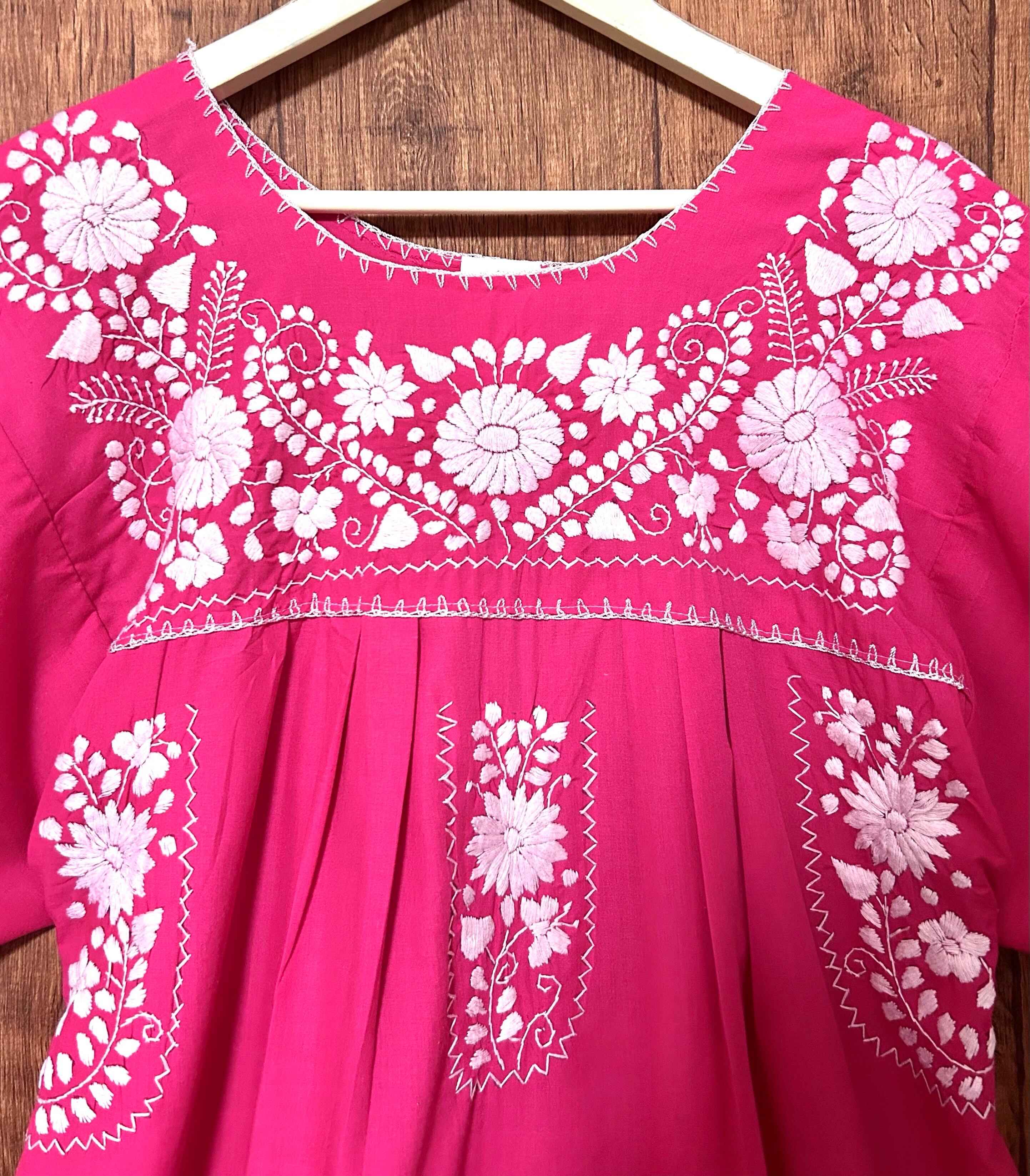 メキシカン ワンピース 花 刺繍 手刺繍 エスニック ヒッピー ハンドメイド カラフル ピンク 白 メキシコ USA ヴィンテージ vintage 古着/ club723(N503)