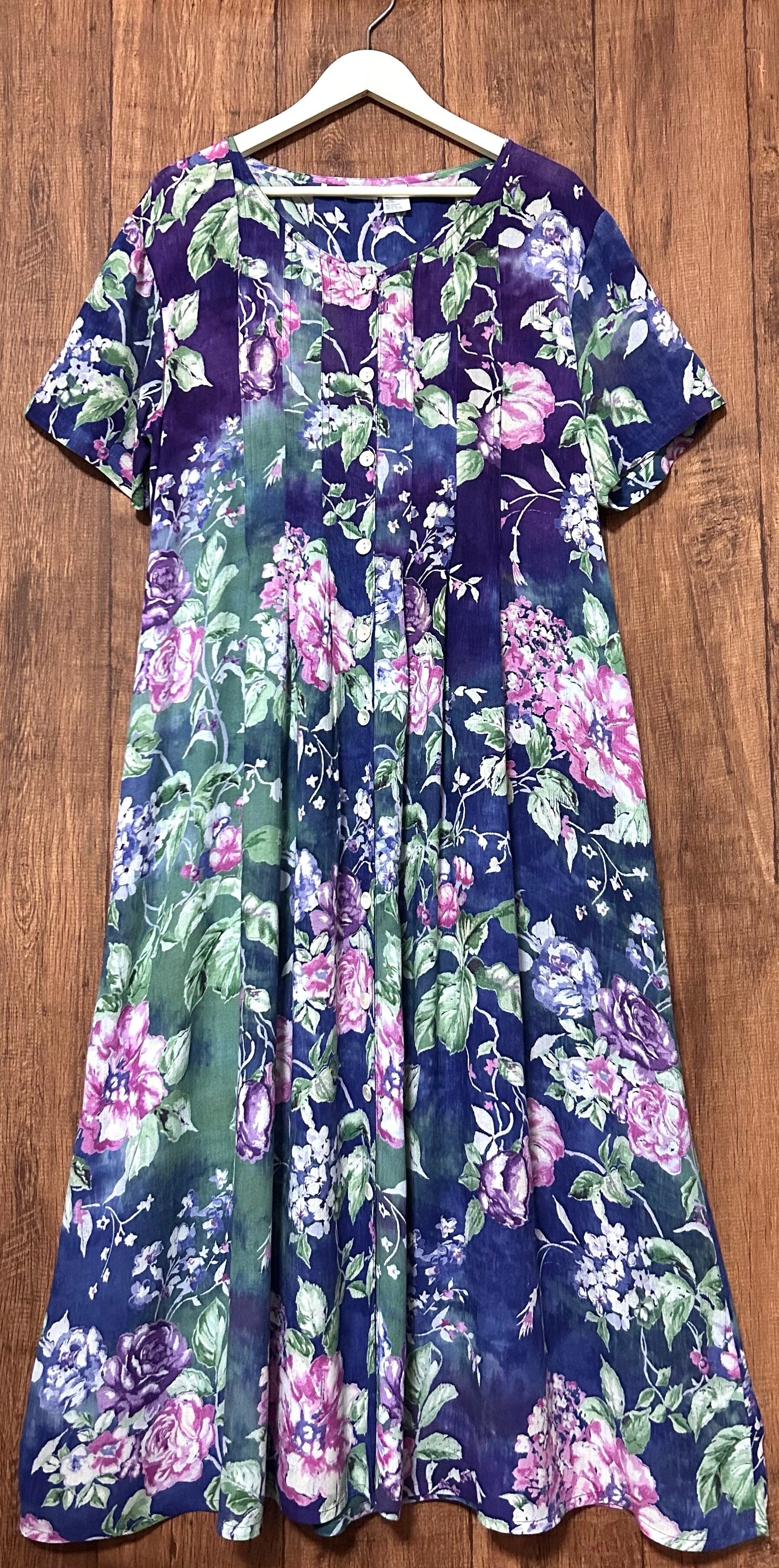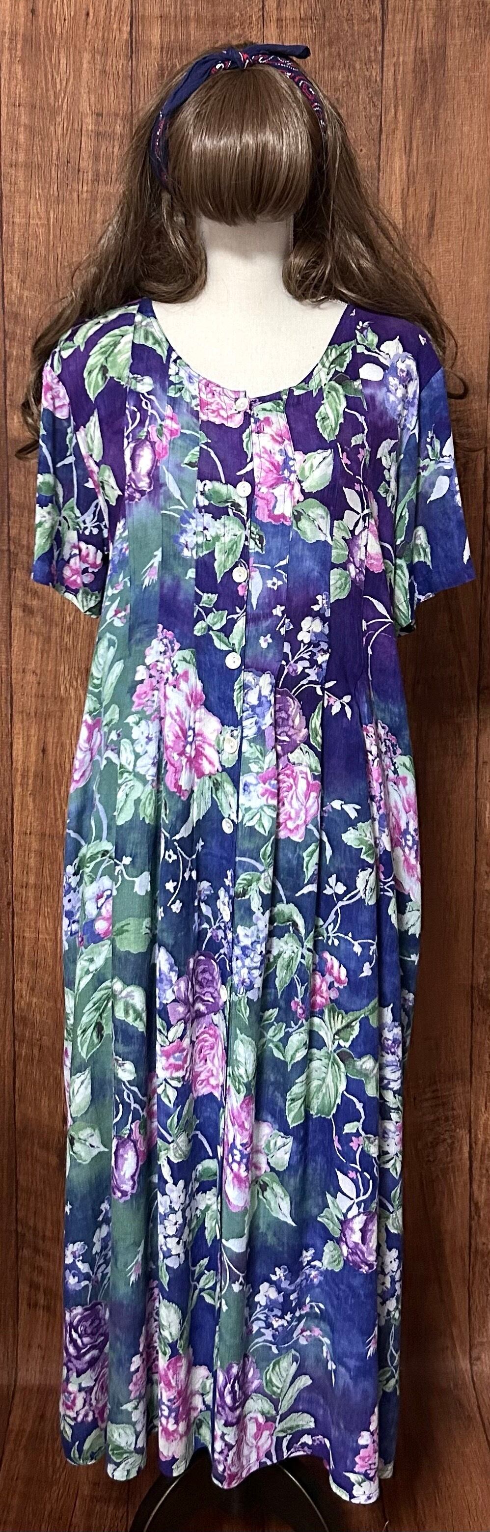 ロング マキシ ワンピース 花 フラワー 半袖 ボタン カラフル レトロ カントリー 個性的 おしゃれ かわいい ヴィンテージ vintage used 古着/club723(N508)